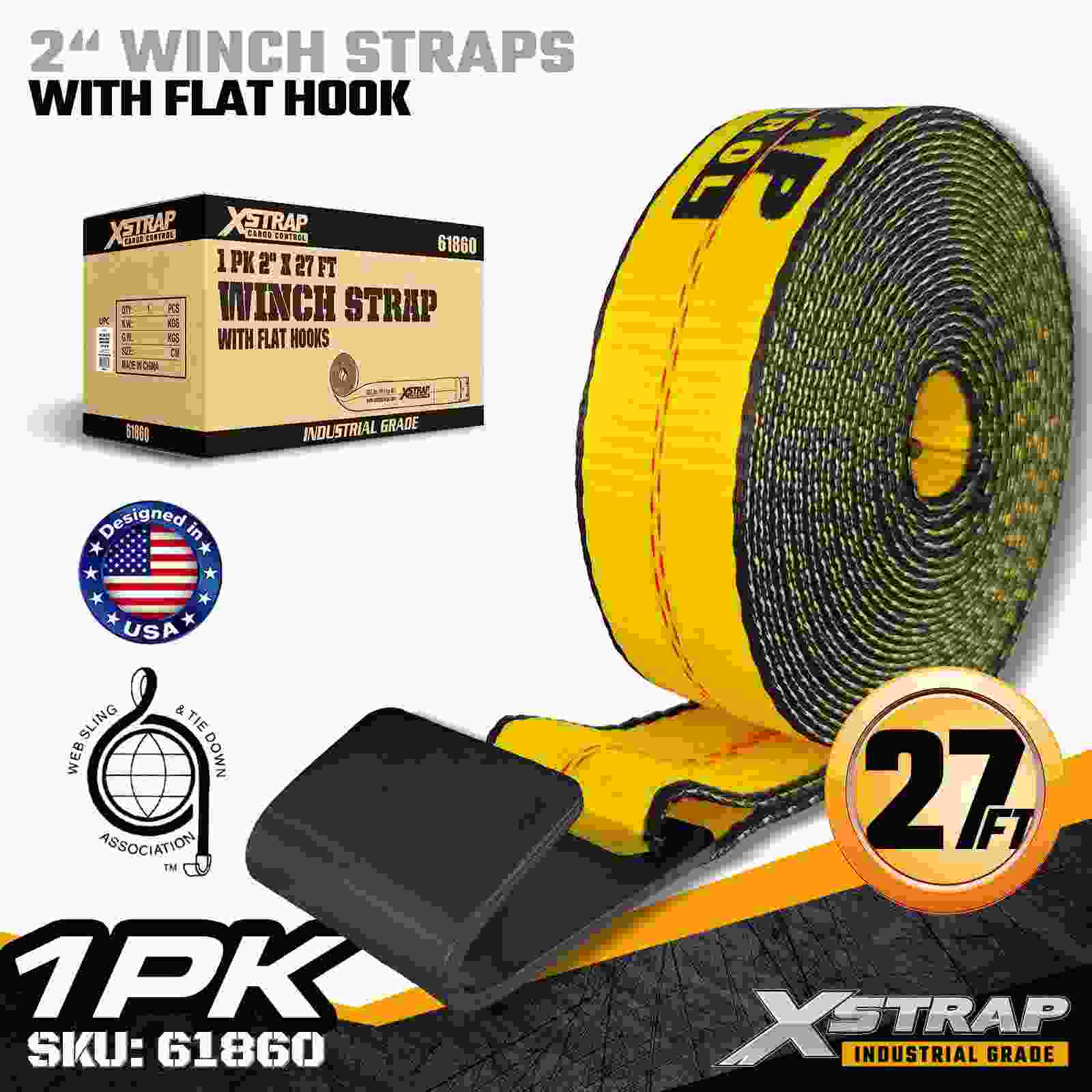 Xstrap 61860 2" × 27 ft standard vinschrem är byggd för pålitlig fast lastfäste i flatbädd, med en förstärkt platt krok och höghållfast polyesterväv. Med en arbetsbelastningsgräns på 3 333 lbs och 10 000 lbs brytstyrka, levererar den pålitlig prestanda för godstransport, daglig last, lastning av pallar och laster på pall, applikationer