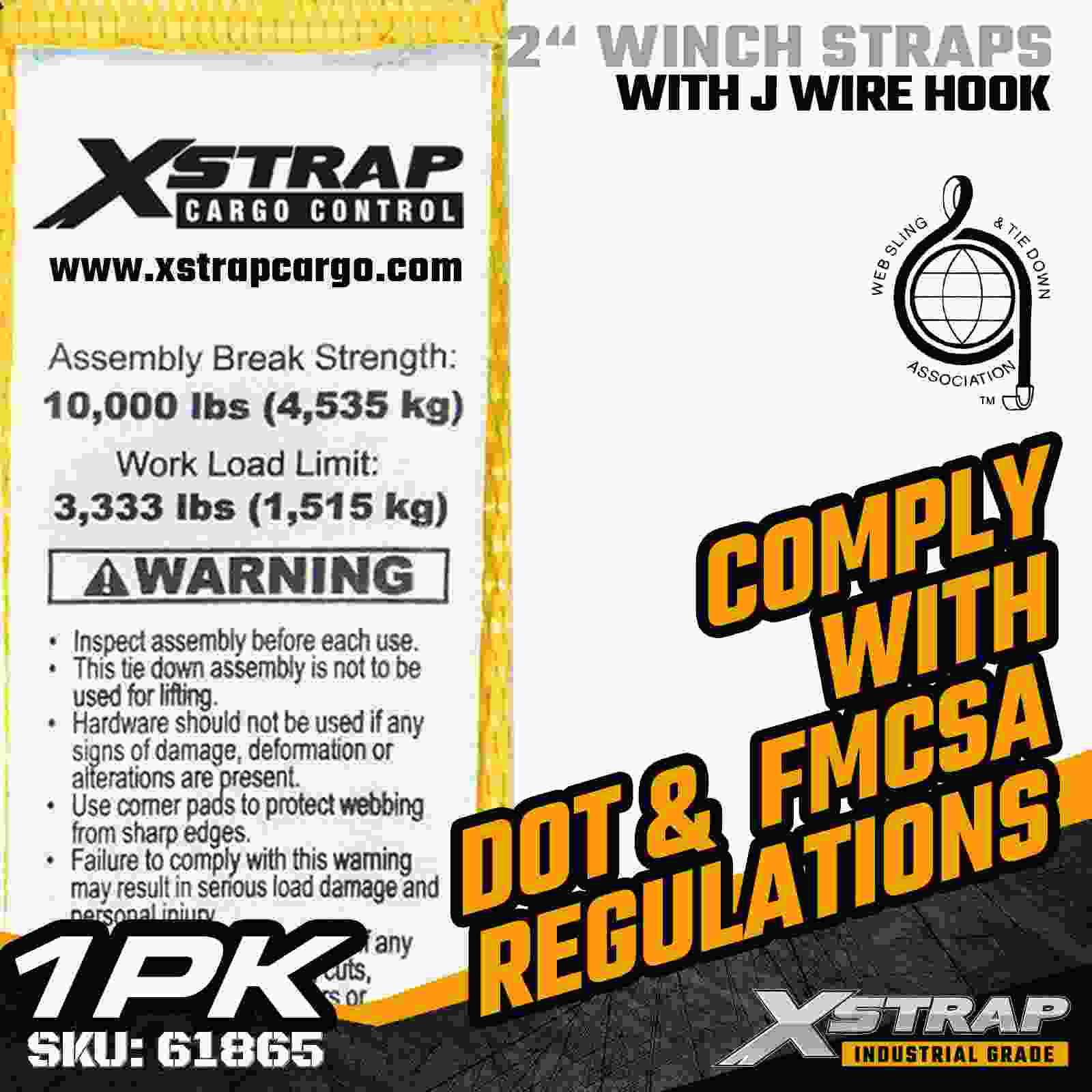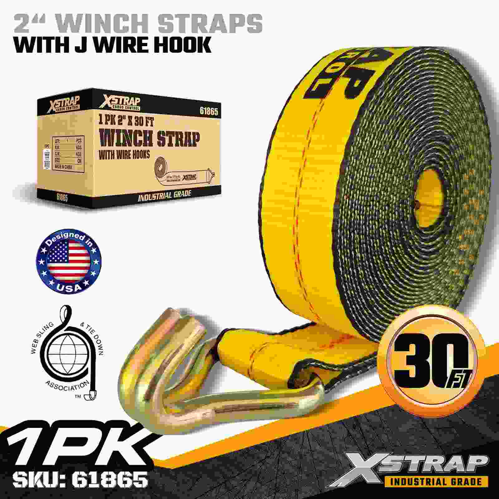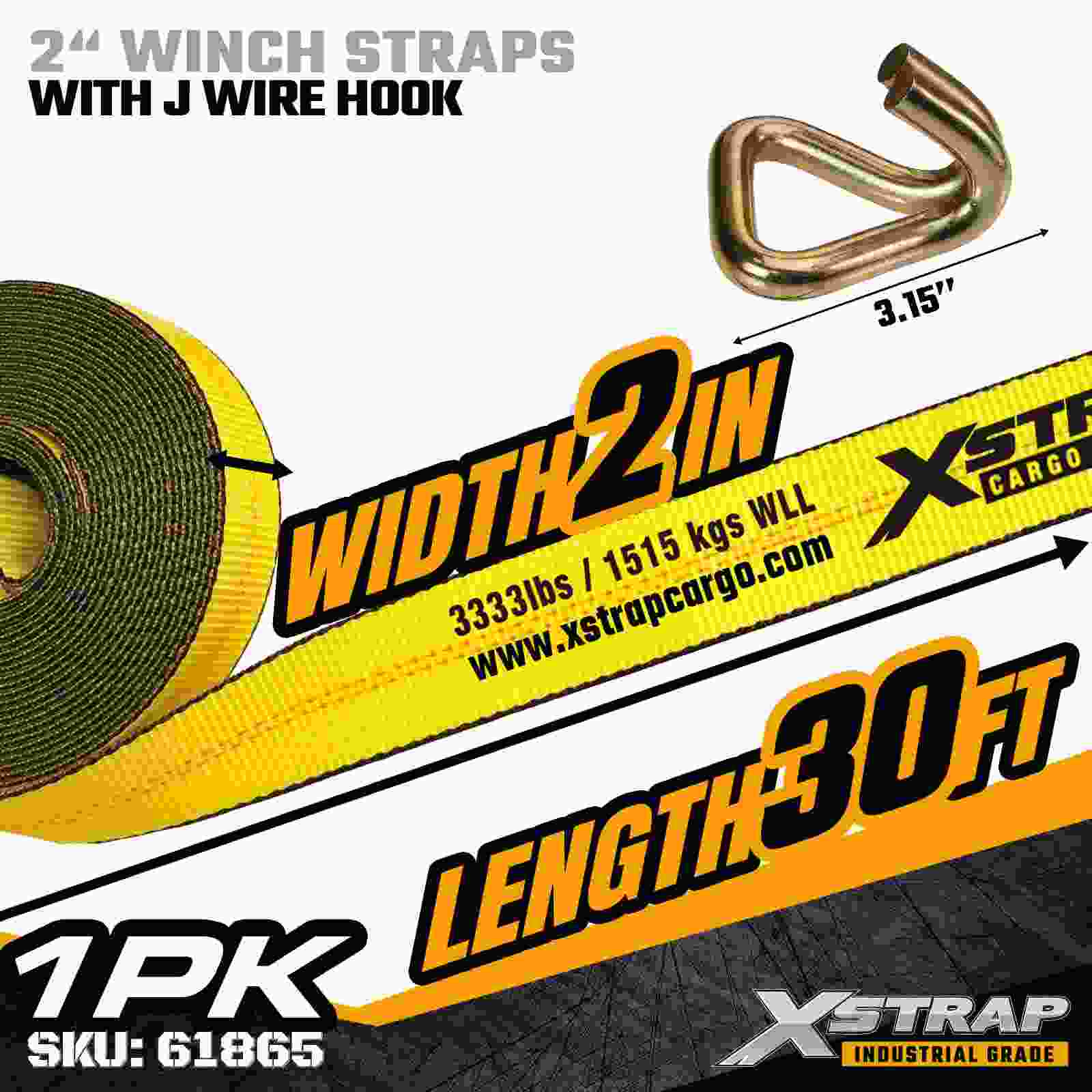 Xstrap 61865 2" × 30 fot Standard Winch Strap är en kraftig lastsäkringsrem designad för flakvagnar och professionella transporter. Byggd med en förstärkt Trådkrok och höghållfast polyesterväv, ger denna 2-tums vinschrem en 3 333 lbs arbetsbelastningsgräns och 10 lbs-styrka, och ger pålitlig prestanda för 00 lbs. timmer, pallar, rör, maskiner och allmän frakt under dagliga transporter.