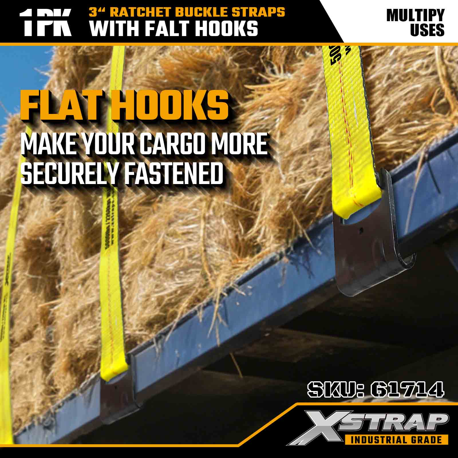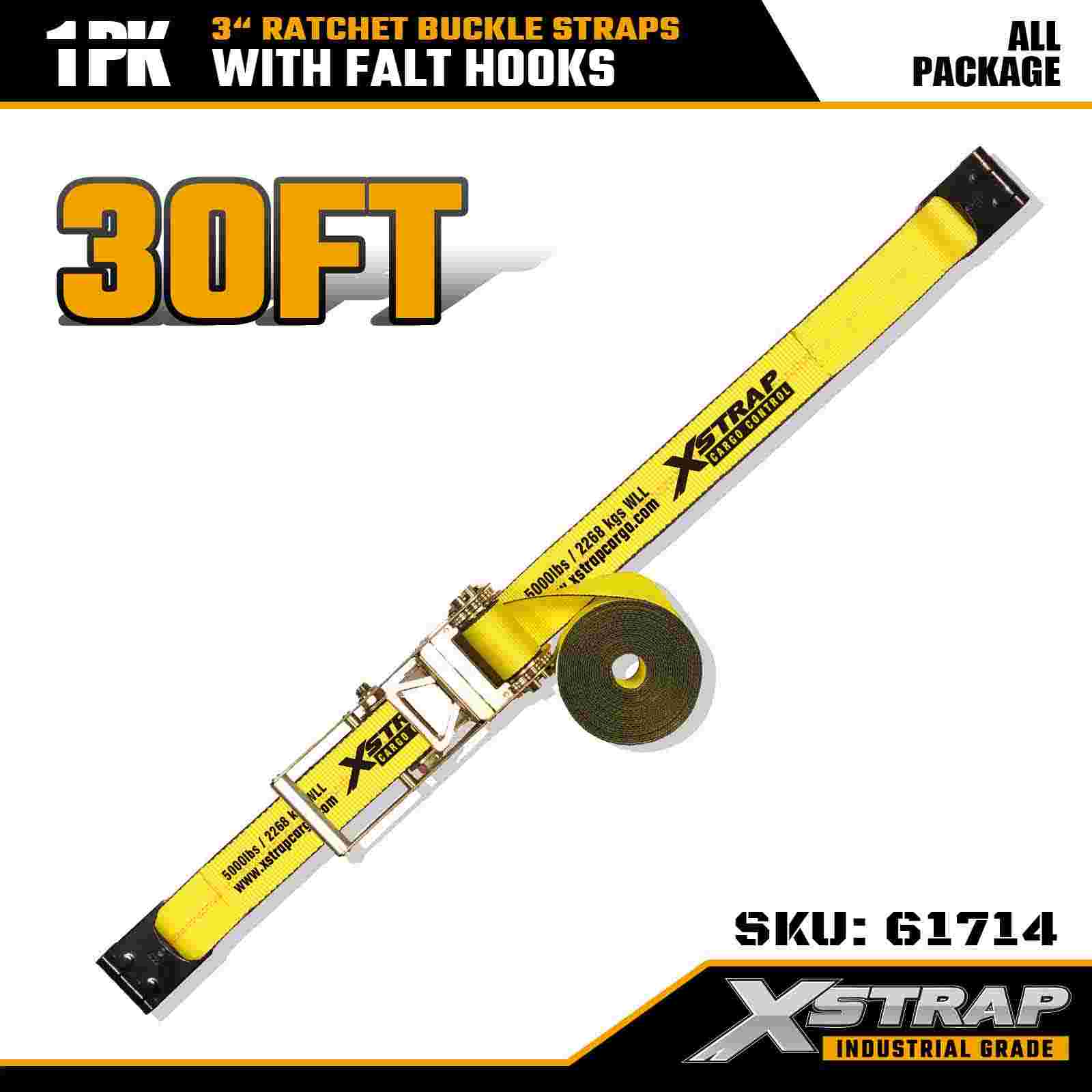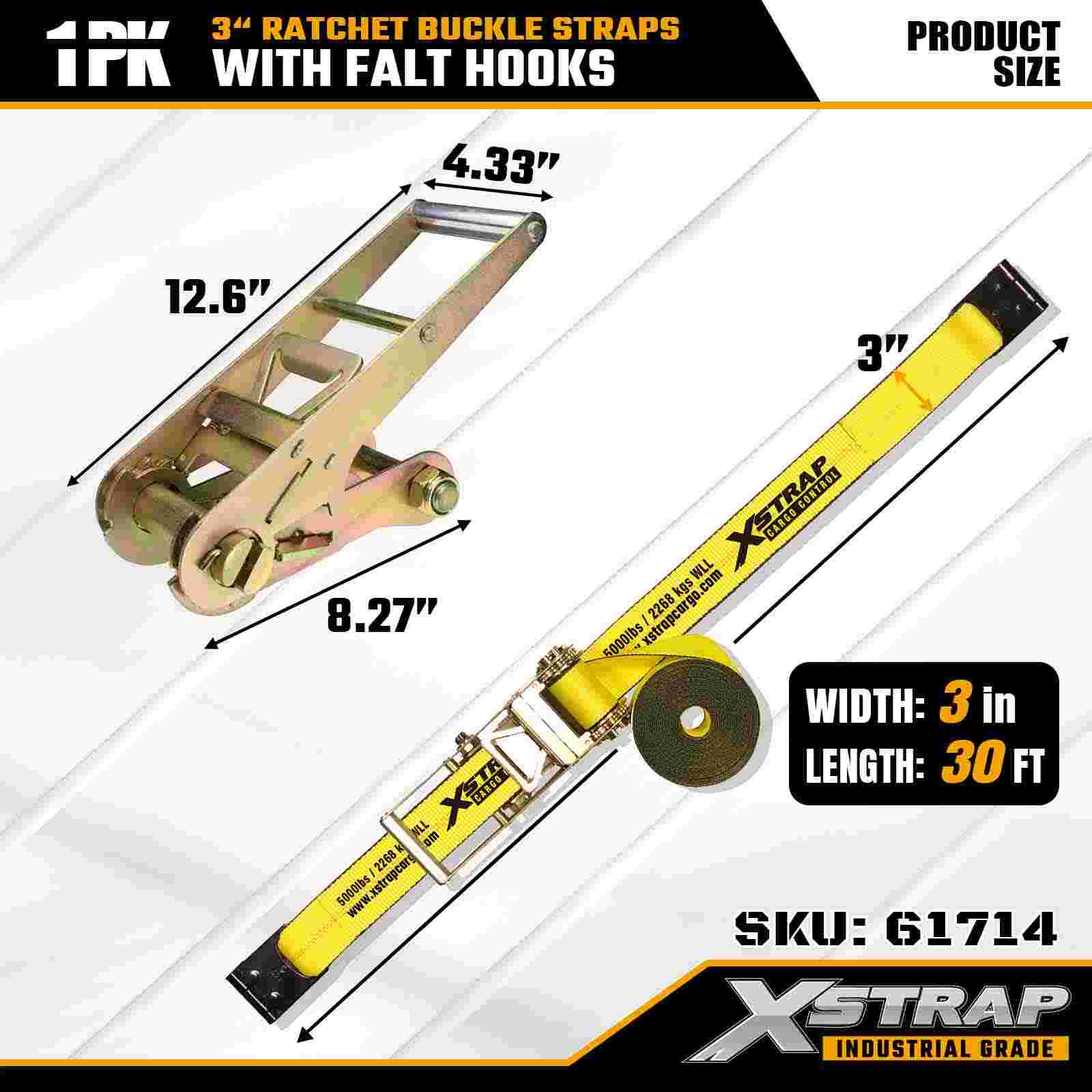 Xstrap 61714 3" x 30 ft spärrspänne (1-pack) – platta krokar, 5 000 lbs lastkapacitet, 15 000 lbs brotthållfasthet, tunga fäste för lastbilar, släpvagnar och industriell lasttransport.
