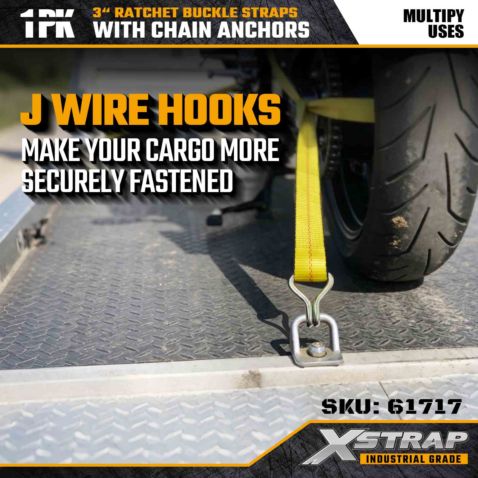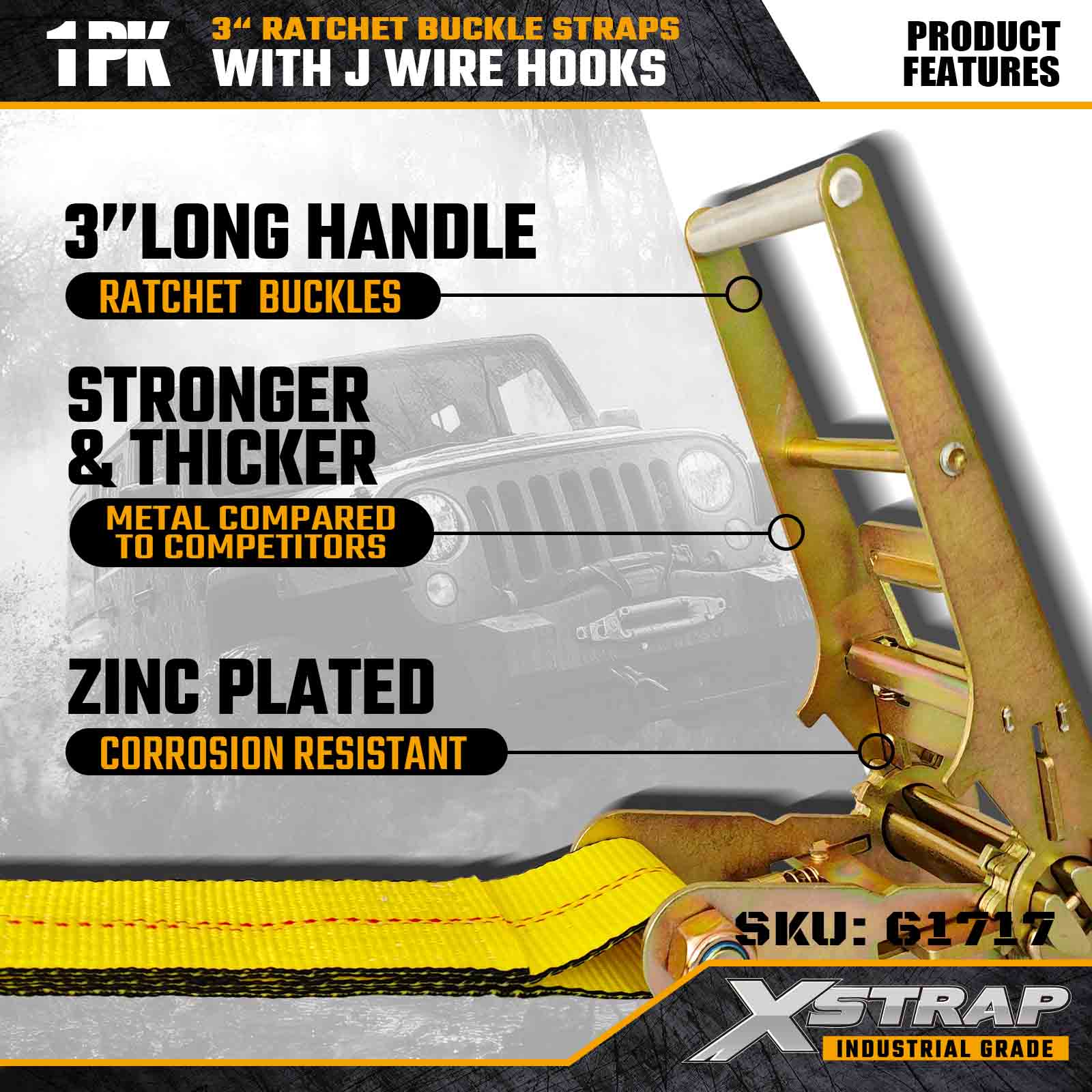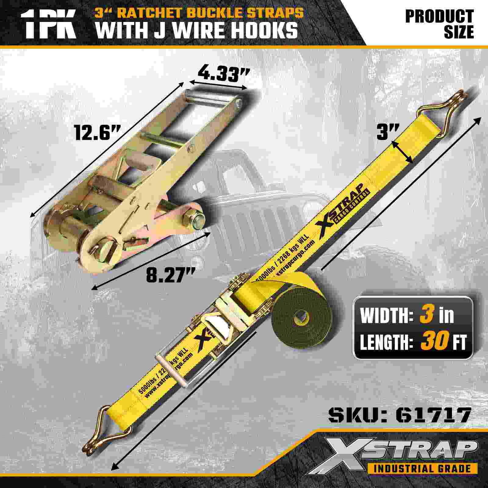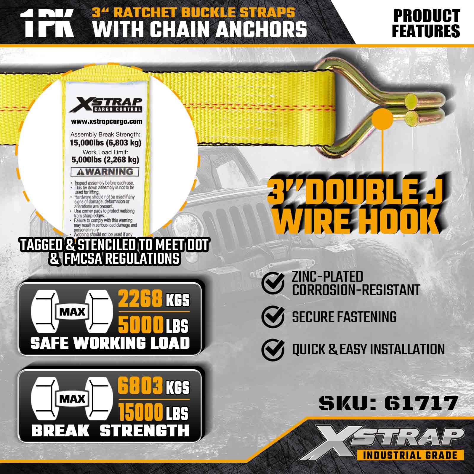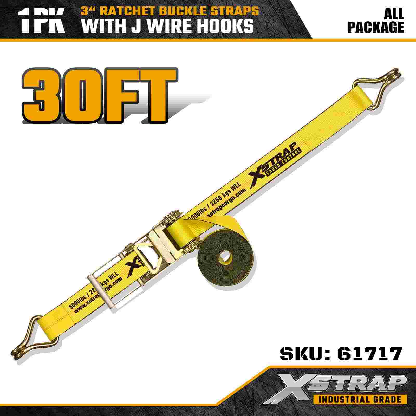 Xstrap 61717 3" × 30 ft spärrspänne (1-pack) är konstruerad för krävande lastapplikationer, med förstärkta trådkrokar och ett högspänningsspärrsystem. Med en arbetsbelastningsgräns på 5 000 pund och 15 000 pund ger denna tillförlitliga utrustning för platta transporter en brytstyrka för transport. och industriell logistik.
