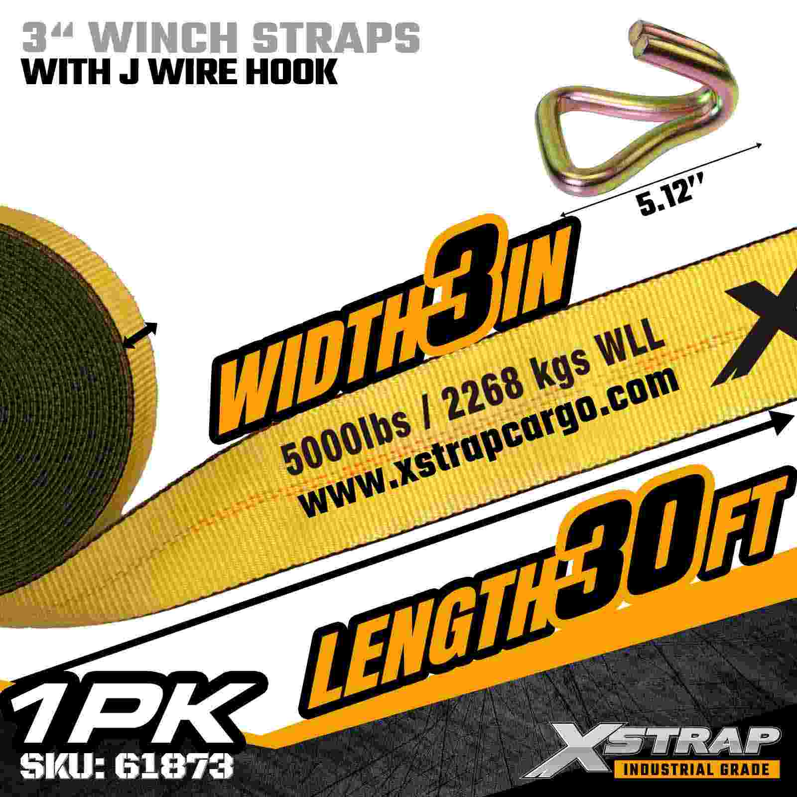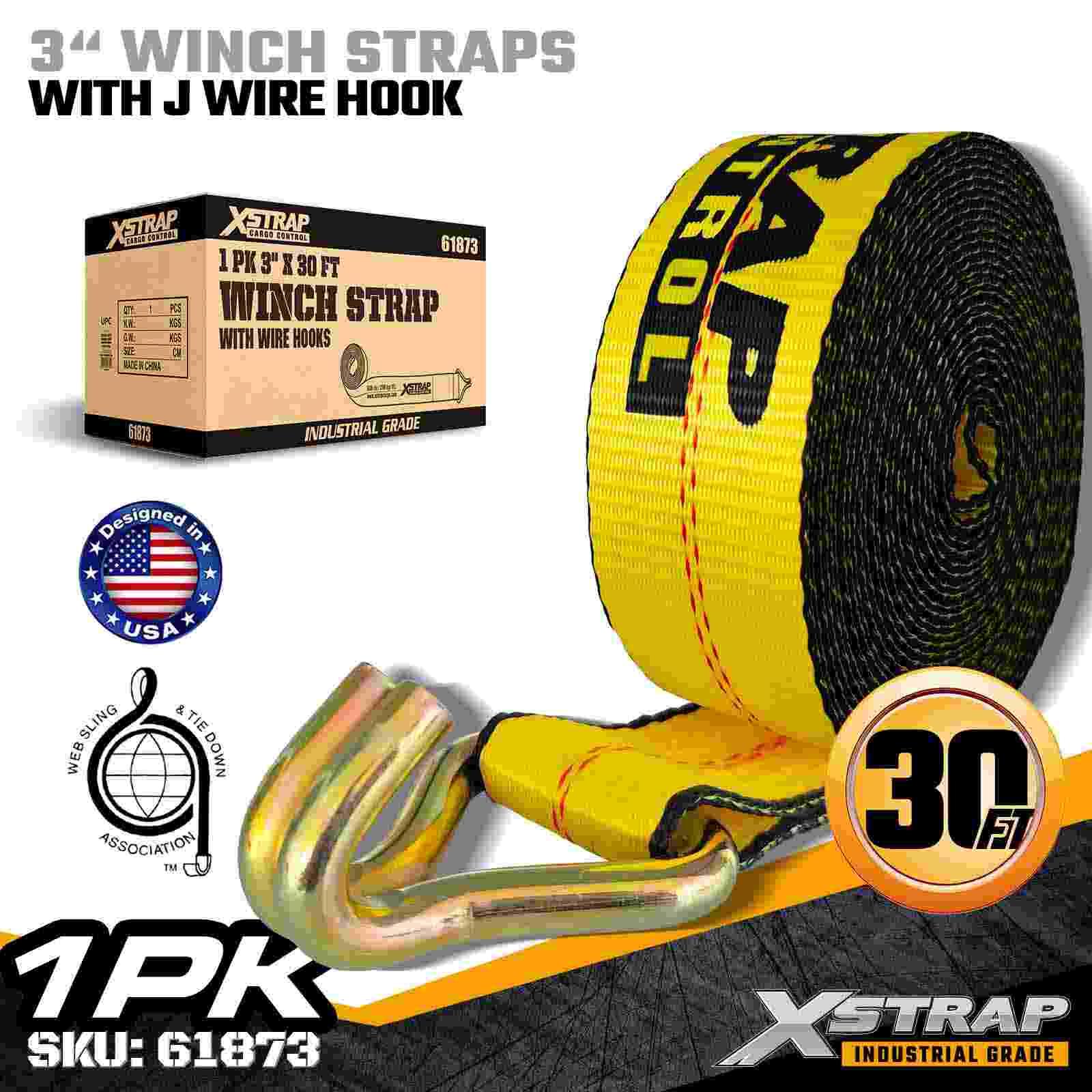 Xstrap 61873 3" × 30 fot Standard Winch Strap är en kraftig lastsäkringsrem designad för flakvagnar och överdimensionerade gods. Med en förstärkt Trådkrok och extra bred 3-tums polyesterväv, ger denna 3-tums vinschrem 5 000 lbs, 500 lbs och 1 Bred. Styrka Den utökade längden på 30 fot ger extra räckvidd, vilket gör den idealisk för att säkra bredare, högre eller oregelbundet formade laster som kräver flexibla monteringsalternativ.