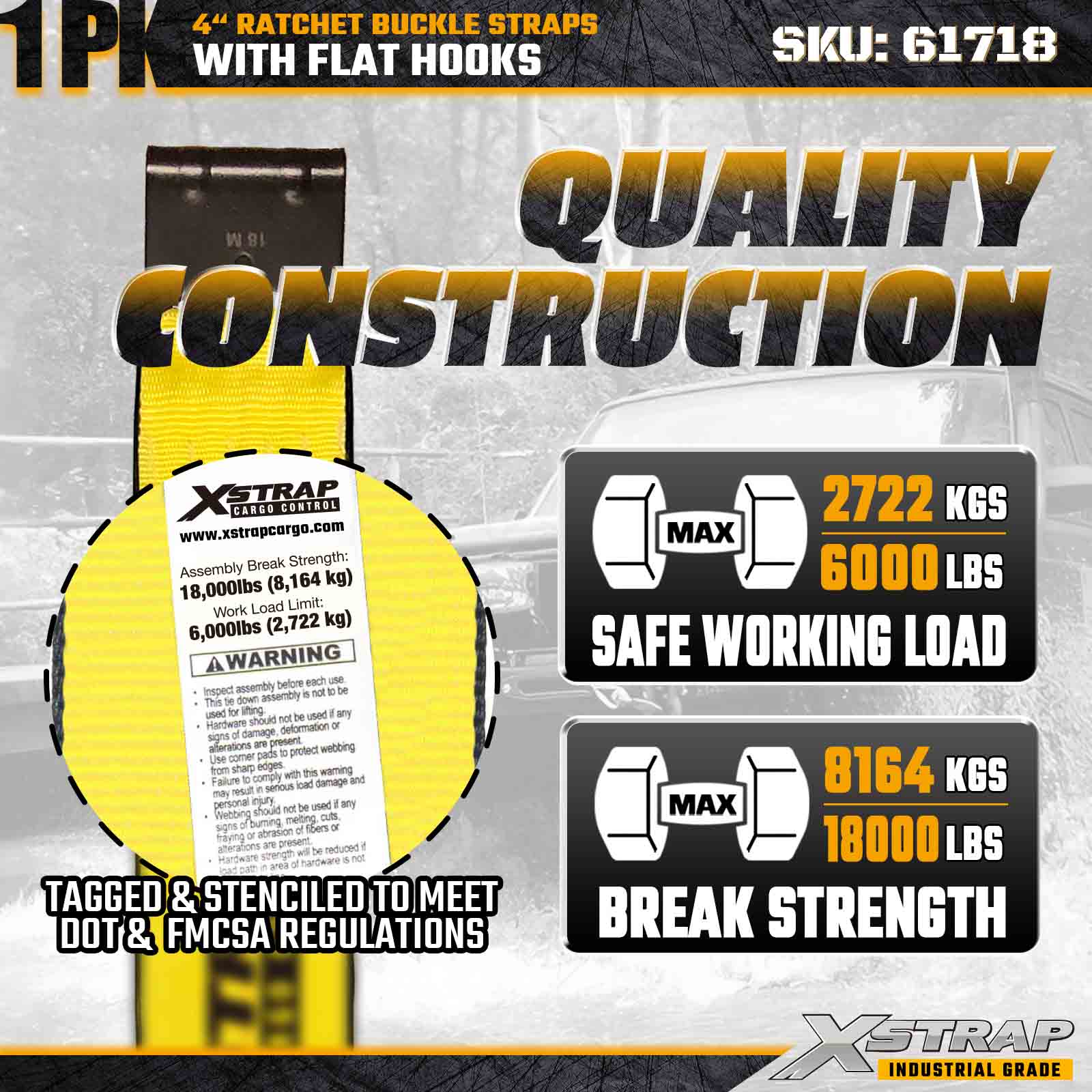 - Konstruerad för professionella transportstandarder: Bedömd till 18 000 lbs brottstyrka och 6 000 lbs WLL, denna rem uppfyller kraven från lastbilsflottor, entreprenörer och industriell logistik som kräver maximal hållbarhet och prestanda.