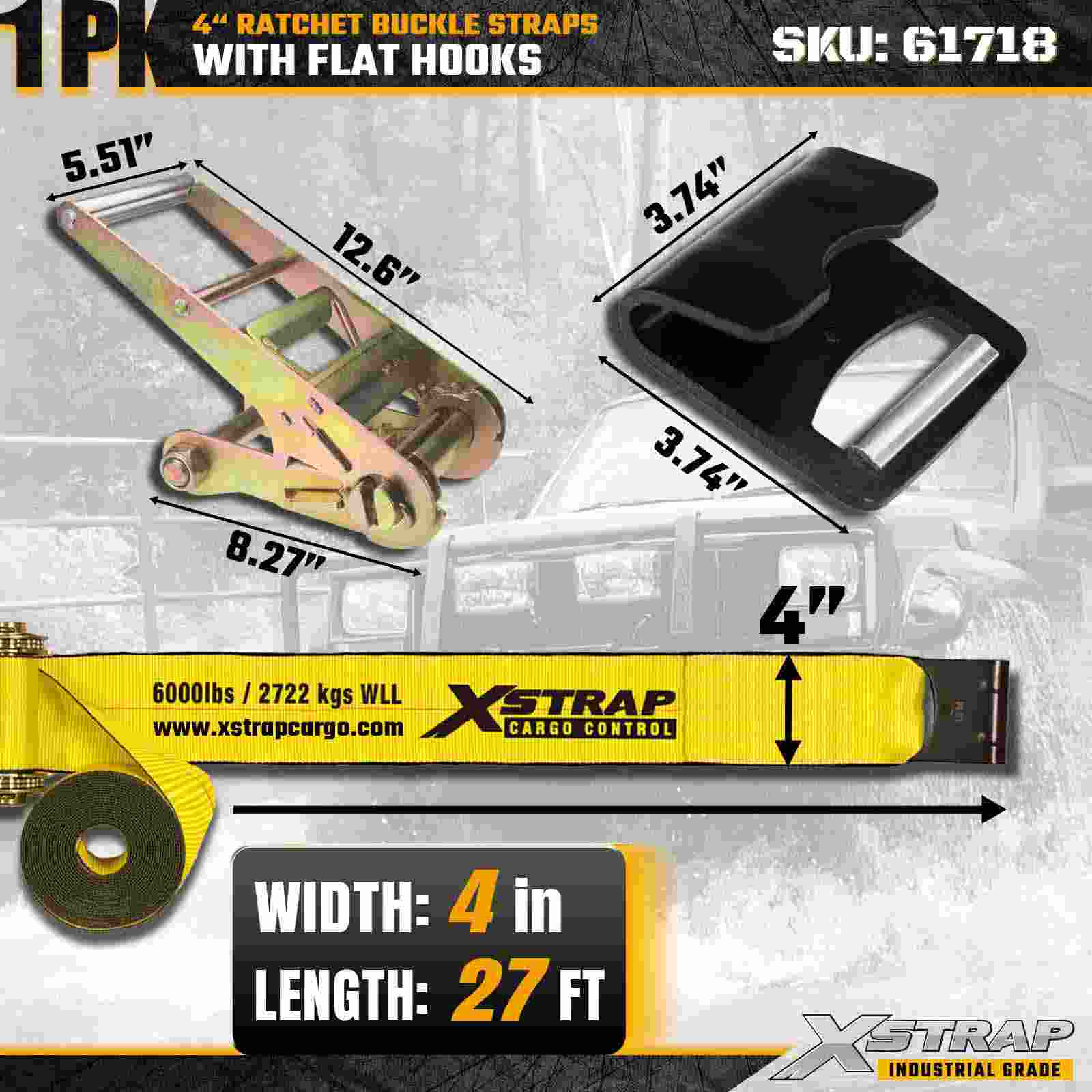 Xstrap 61718 4" × 27 fot spärrspänne (1-pack) är byggd för extrem lastsäkerhet, med förstärkta platta krokar och en kraftig spärrmekanism. Med en 6 000 lbs arbetsbelastningsgräns och 18 000 000 lbs är denna plana konstruktion för proffsiga konstruktioner med sönderstarka slingor och 18 000 lbs. material, maskintransport och industriell logistik där maximal styrka och tillförlitlighet är avgörande.