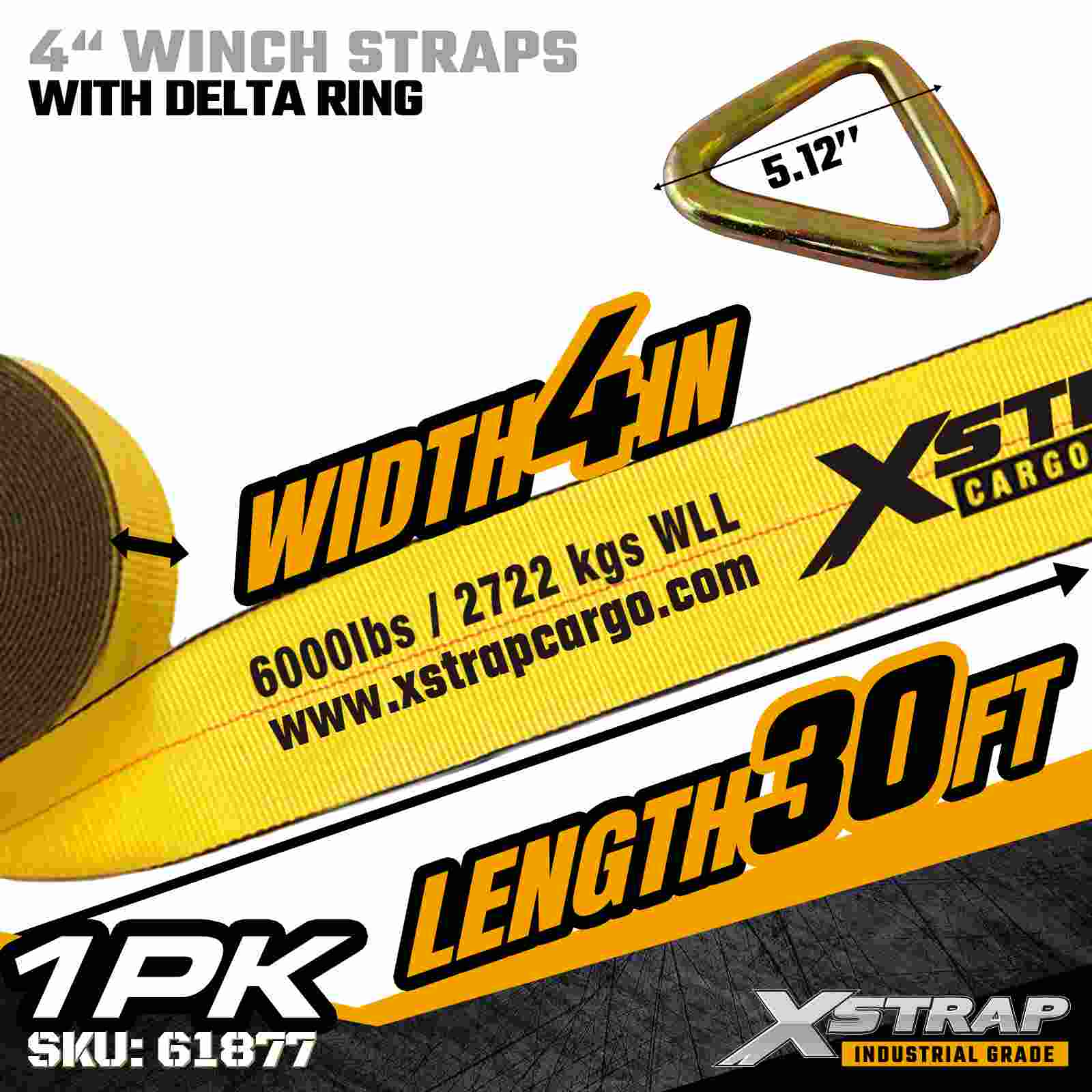 Xstrap 61877 4" × 30 fot Standard Winch Strap är en lastsäkringsrem med hög kapacitet och förlängd räckvidd konstruerad för flakvagnar och överdimensionerad industrifrakt. Med en förstärkt Delta-ring och ultrabred 4-tums polyesterväv, ger denna 4-tums vinschrem 00 Limbit, Work 06, Work 006, Work lbs Break Strength Den utökade längden på 30 fot ger extra räckvidd, vilket gör den idealisk för att säkra breda, höga eller oregelbundet formade laster som kräver förankring i flera riktningar och förbättrad stabilitet.