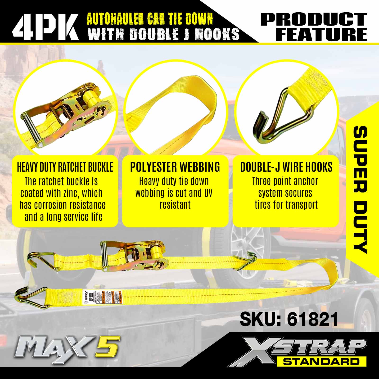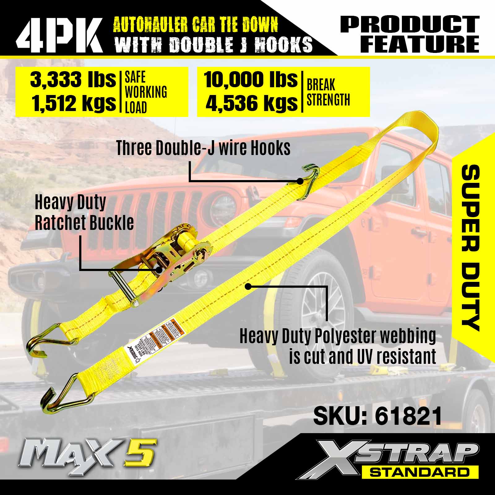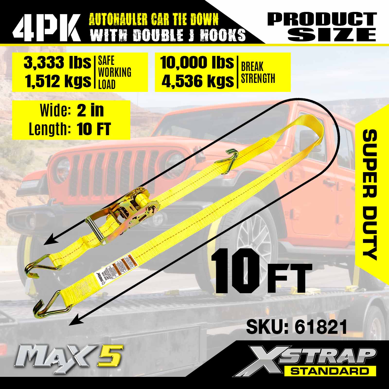 - Super Duty Performance: Klassad för en 3 333 LBS säker arbetsbelastning och 10 000 LBS brottstyrka, den är byggd för att hantera tunga fordon och krävande transportscenarier.