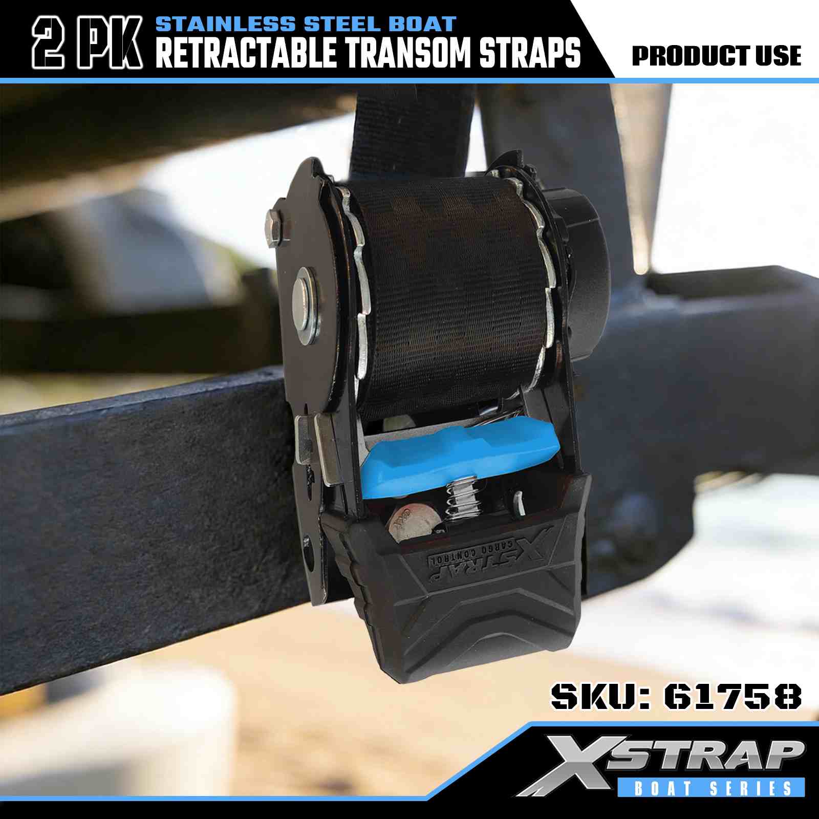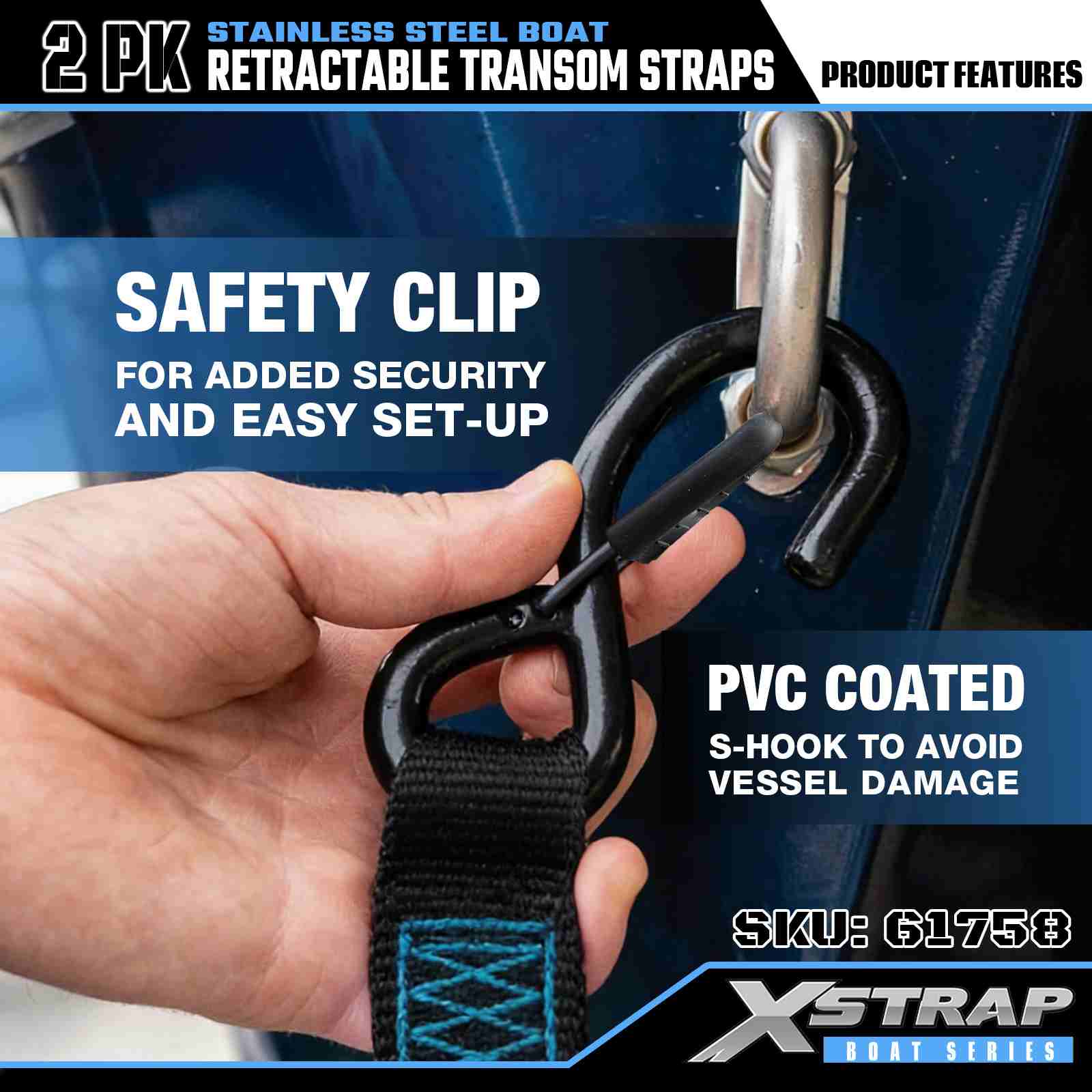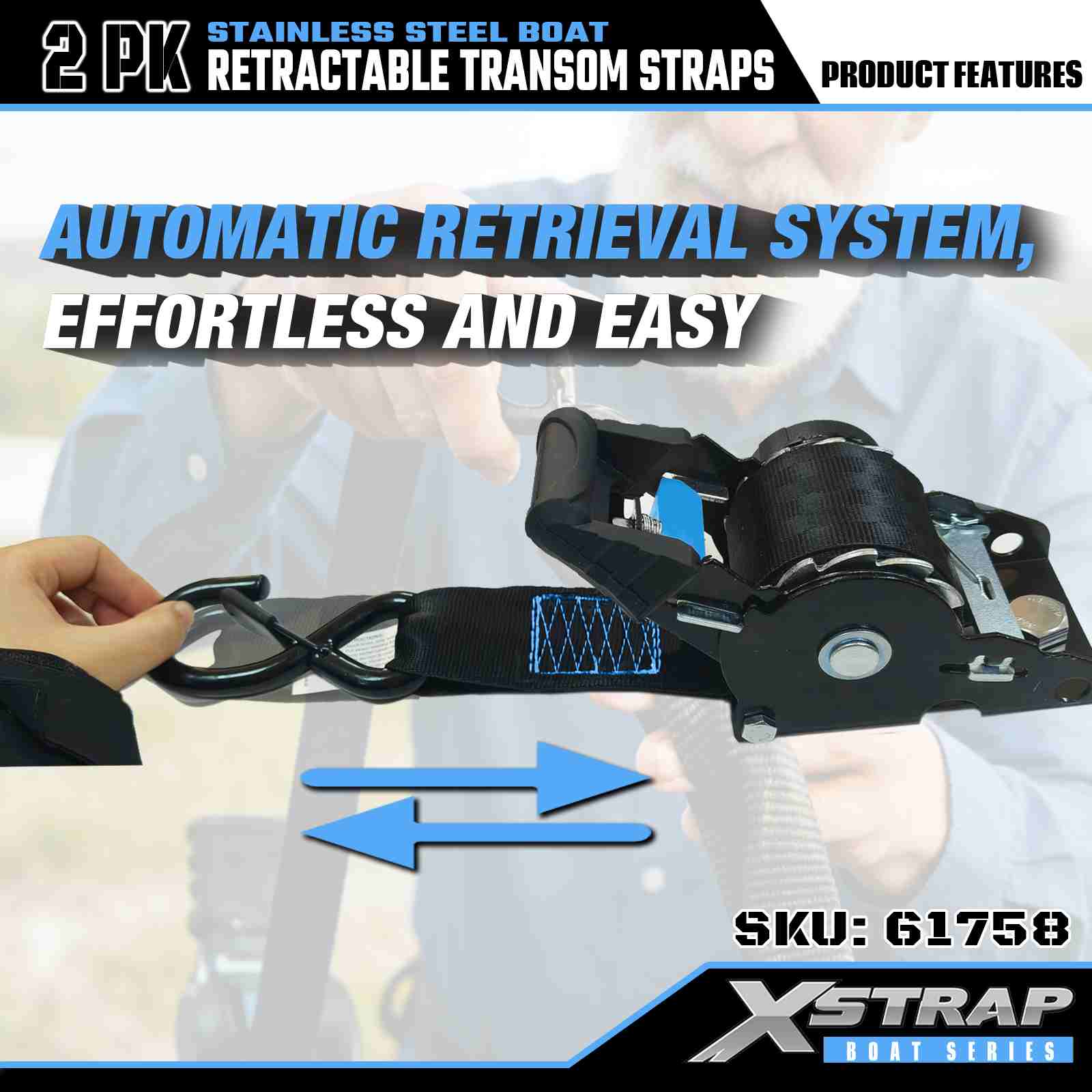 Xstrap 2PK infällbar akterspegelsrem för båt med Safety S-krokar, 2" x 3,6" polyesterbindningsrem Infällbar rem, 1000lbs Kapacitet Lastsurrning Säkringsremmar med Safety S-krok för den seriösa proffsen för att säkra lastsläp, plattsläp, skidbåt, liten bil.