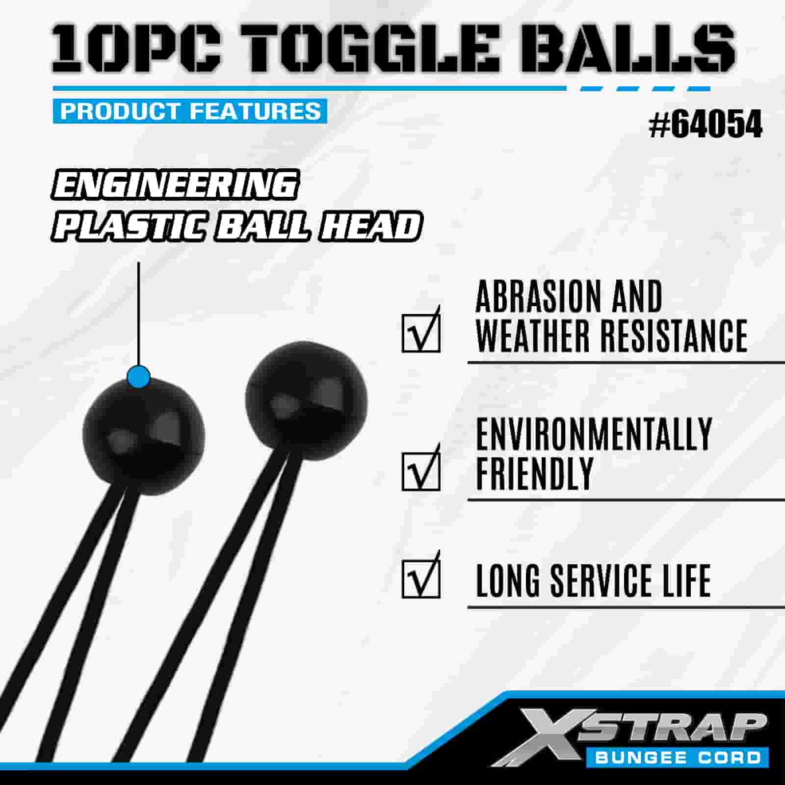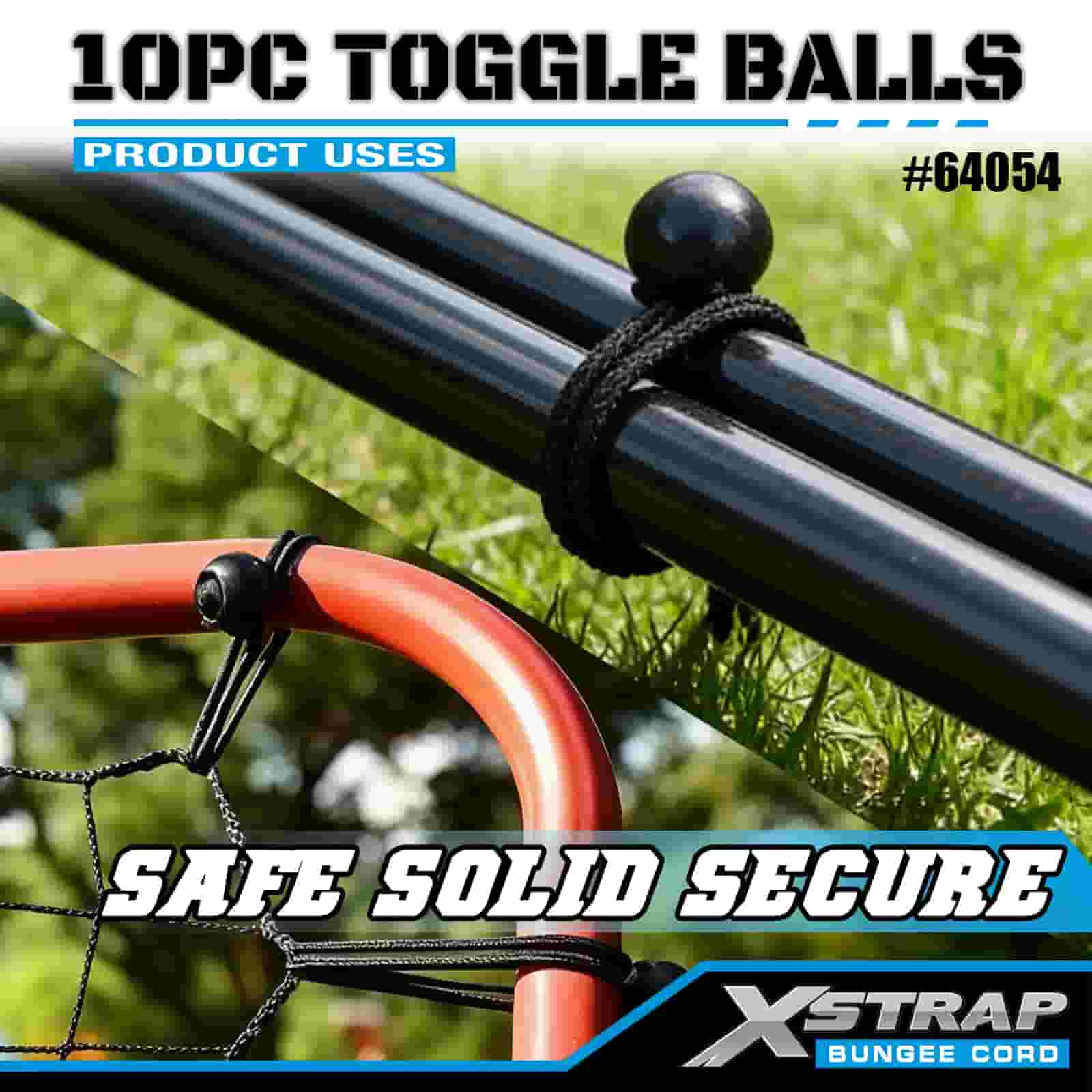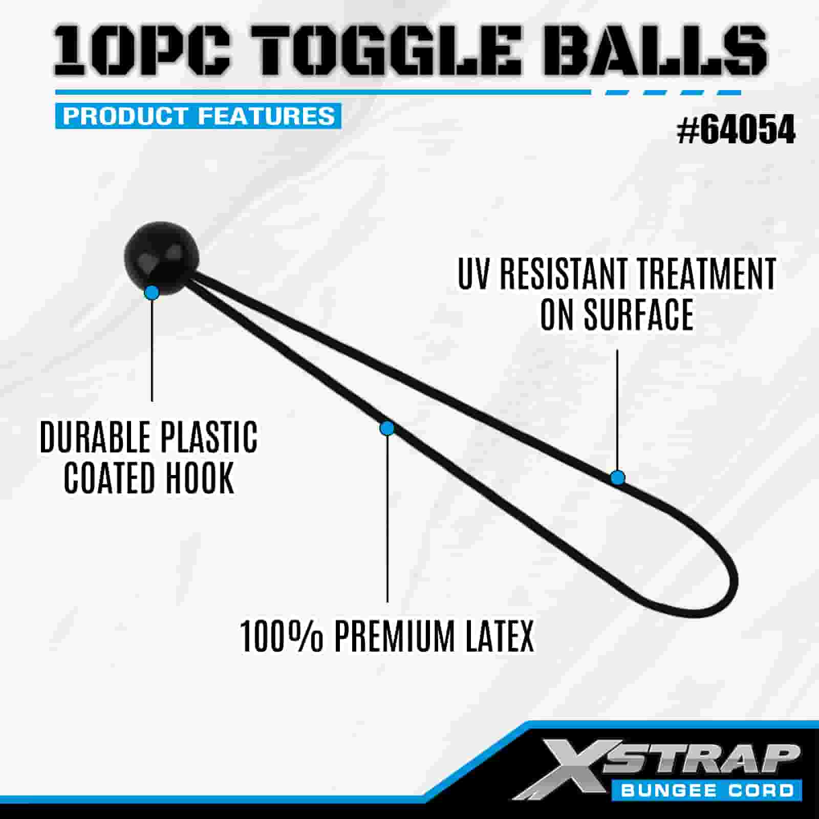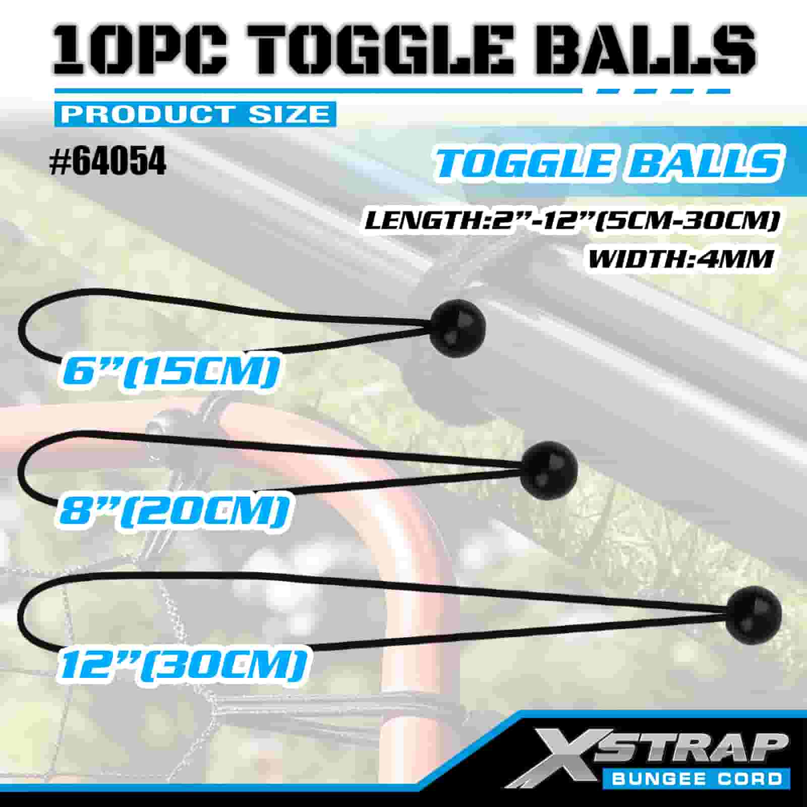 Xstrap 10PK Toggle Balls 4 mm x 2”-12”, bungeebollar i olika storlekar för Lastkontroll.