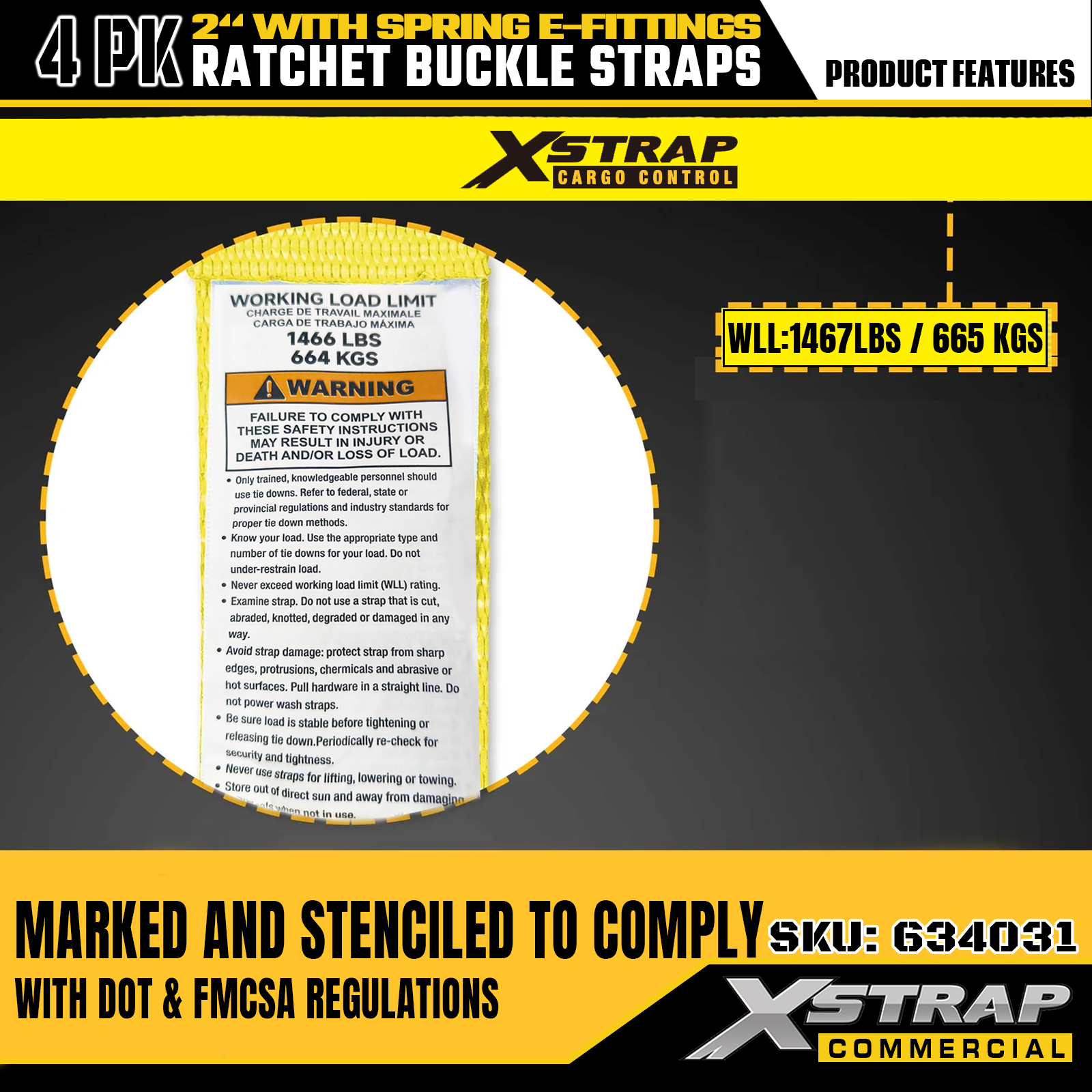 - Tydlig säkerhetsmärkning och bekvämt 4-pack: Varje rem är tydligt märkt med säker arbetsbelastning (SWL) på 1467 lbs och den maximala brotthållfastheten på 4401 lbs, vilket ger viktig säkerhetsinformation för korrekt användning. Levereras i en 4-packskonfiguration, som perfekt uppfyller behoven för batchanvändning i olika lastkontroll- och förflyttningsscenarier.
