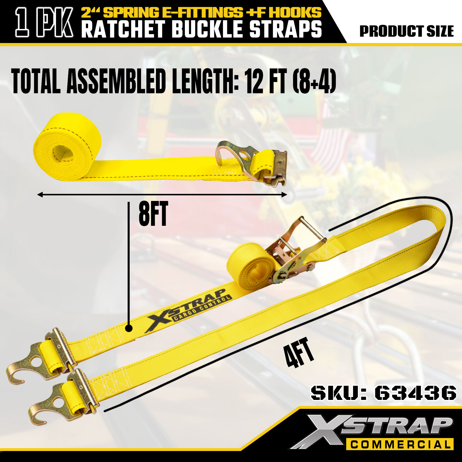 2" x 12" 1PK-spärrremmar med fjäderbeslag och F-krokar