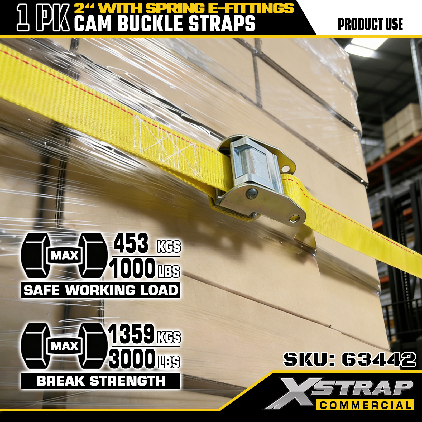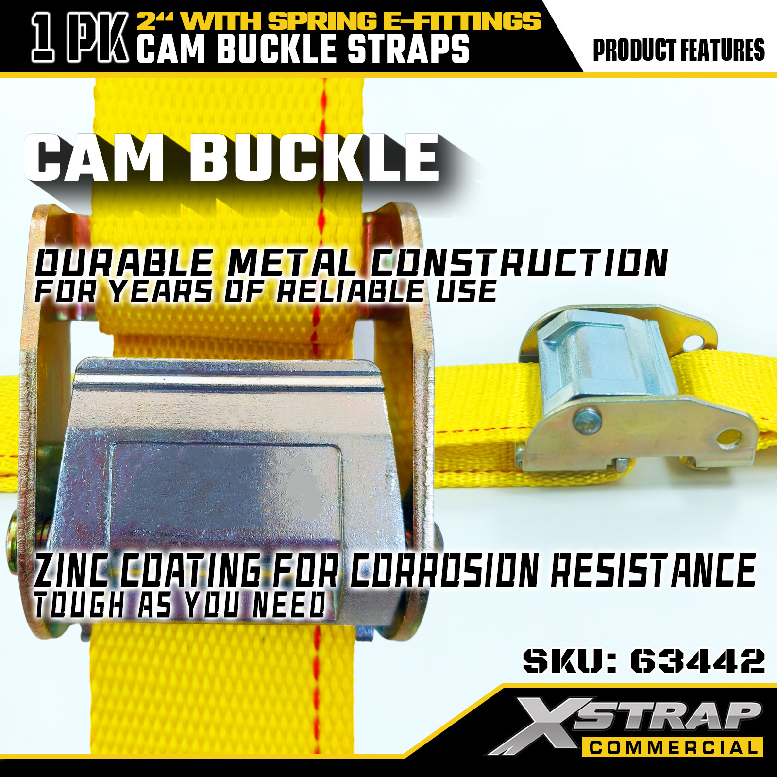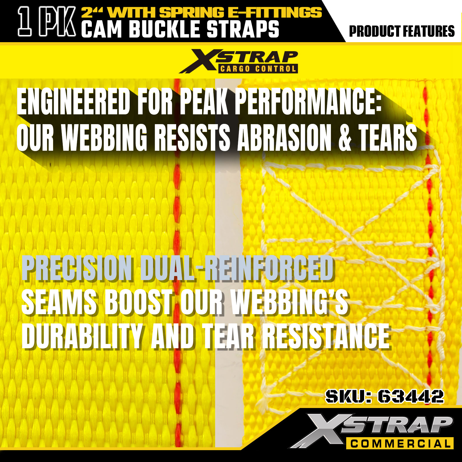 Xstrap 63442 Heavy-Duty Cam Spänne Strap 2" x 12' (1PK) - Gul polyester med fjäder E-kopplingar, 1000 lbs SWL & 453 lbs brottstyrka för förflyttning, lastkontroll och transport