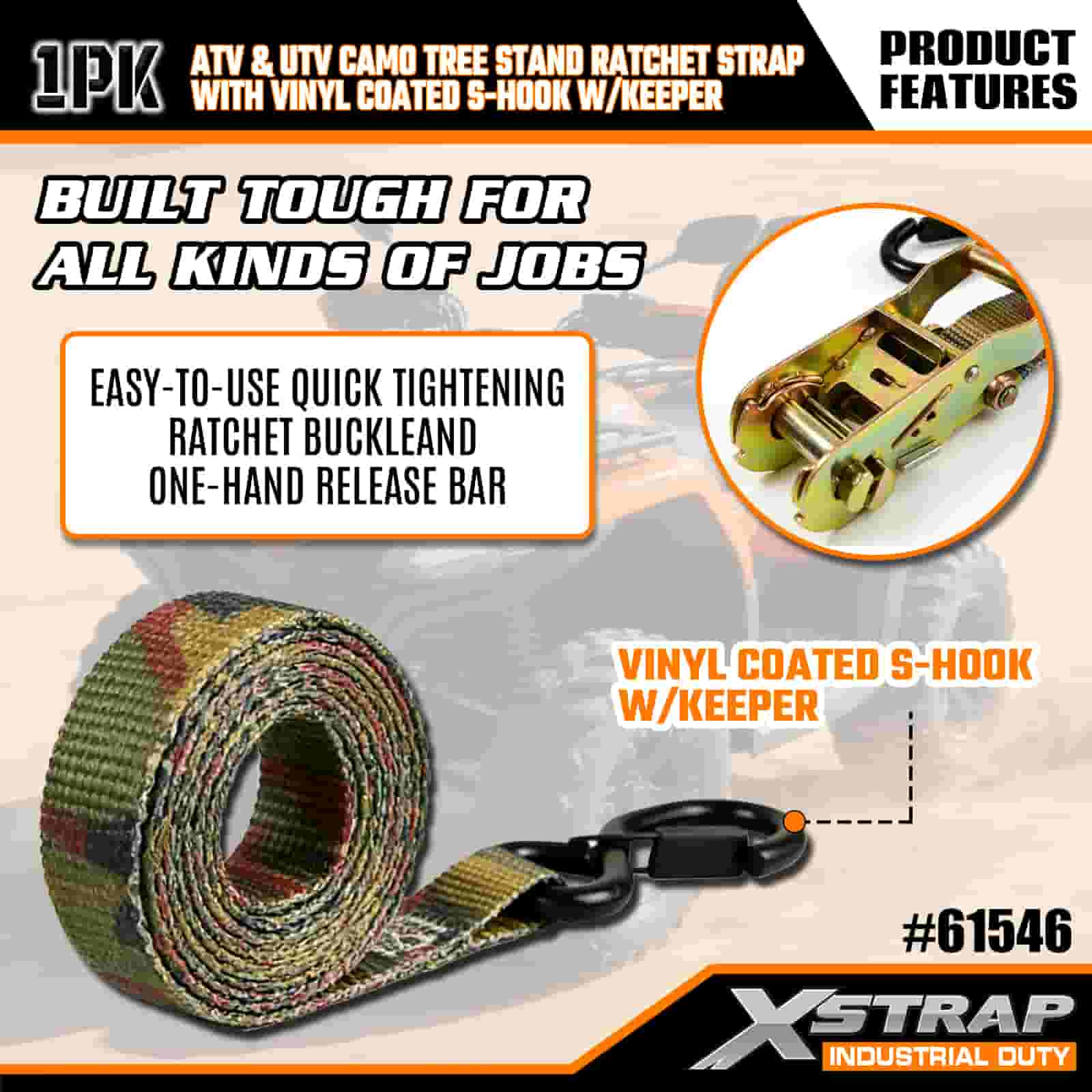 - Byggd för det stora utomhus: Oavsett om du drar ett trädställ till din jaktplats eller säkrar en motorcykel för en helgtur, förvandlar denna rem stressig lastning till ett snabbt, pålitligt steg. Camodesignen håller din utrustning låg profil, så att du förblir fokuserad på ditt äventyr.