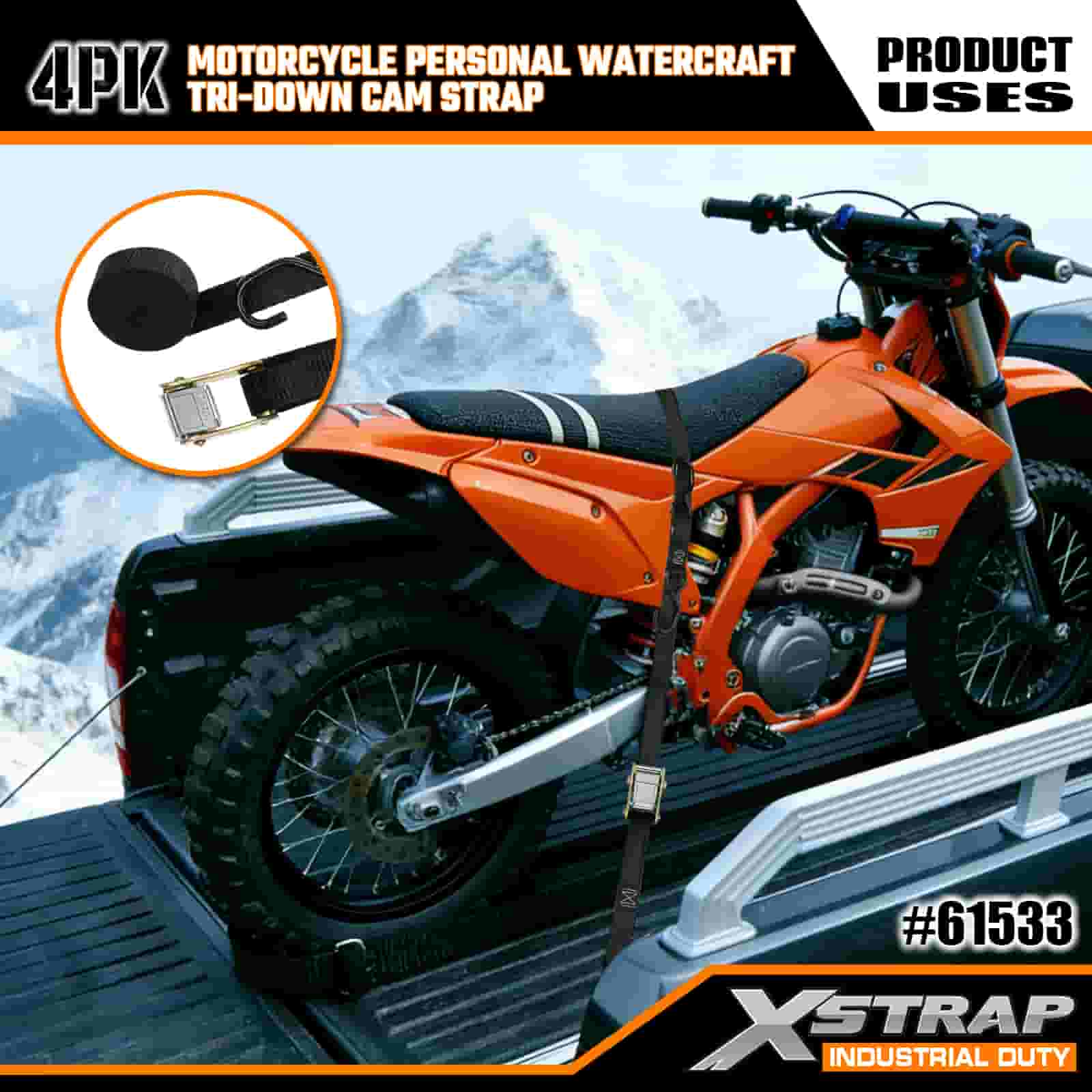 - 4-pack 6FT-remmar för specialanvändning: Säljs som ett 4-bandsset (1 tum bred × 6 fot lång), perfekt för att säkra motorcyklar, vattenskotrar och små redskap under transport eller förvaring.