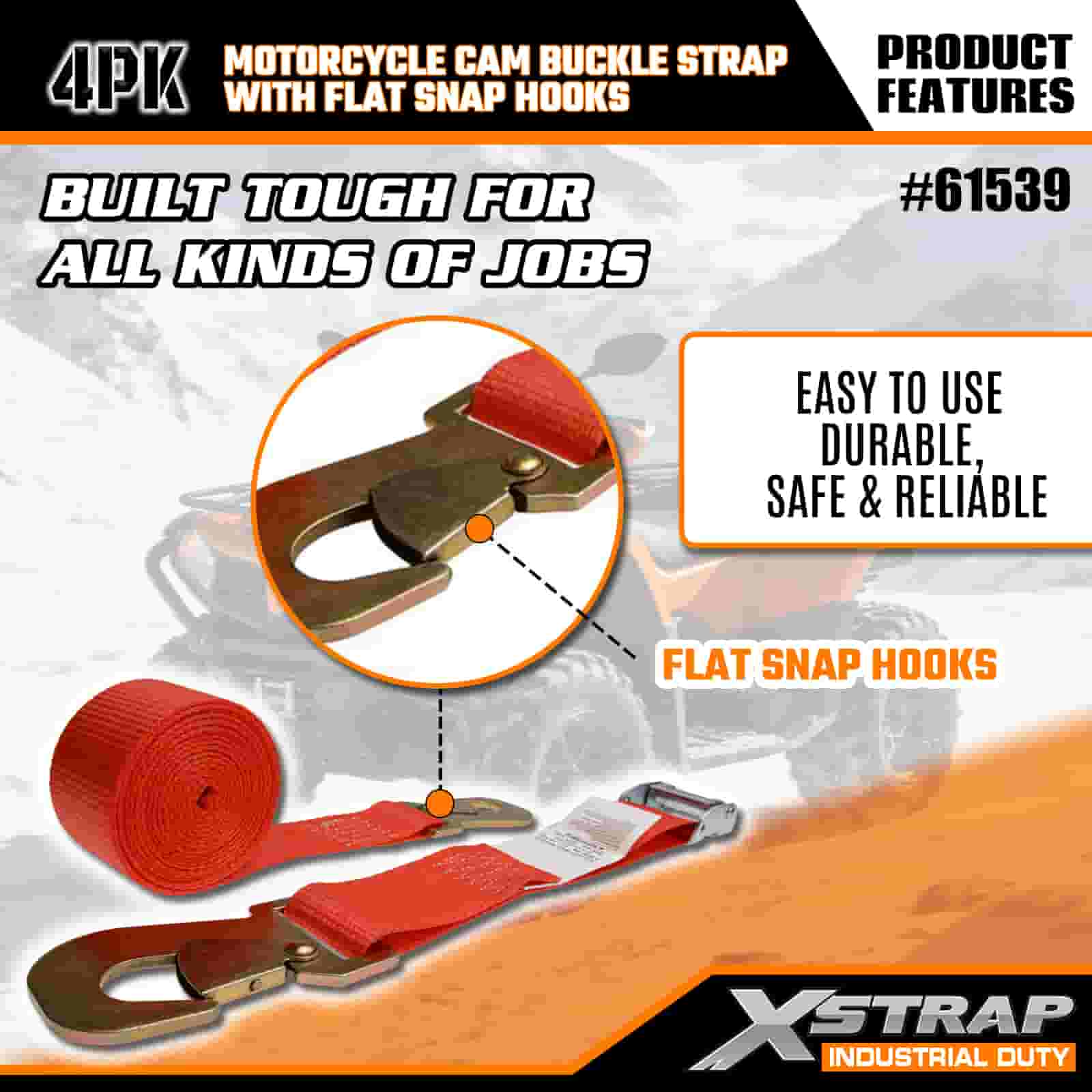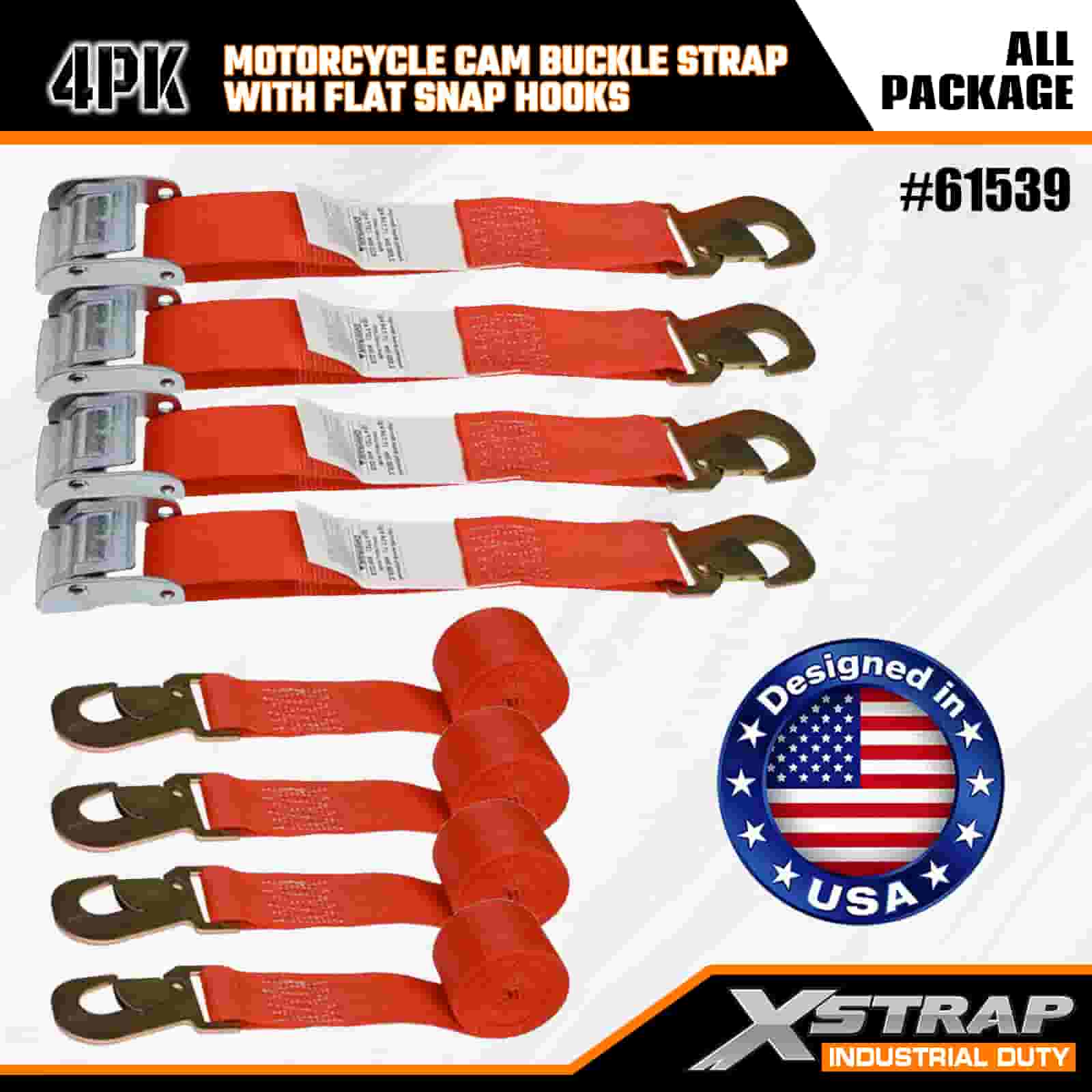 Xstrap 4PK Motorcykel Cam Spänne Spänne med Flat Snap Hake, 2" x 8" Polyester Tie Down Strap Drag Ratchet Spänne Spänne, 400lbs Kapacitet Cargo Surrning Säkringsremmar med platt Snap Hak för den seriösa proffsen att säkra lastsläp, Småbilsvagn, Skidbåt.