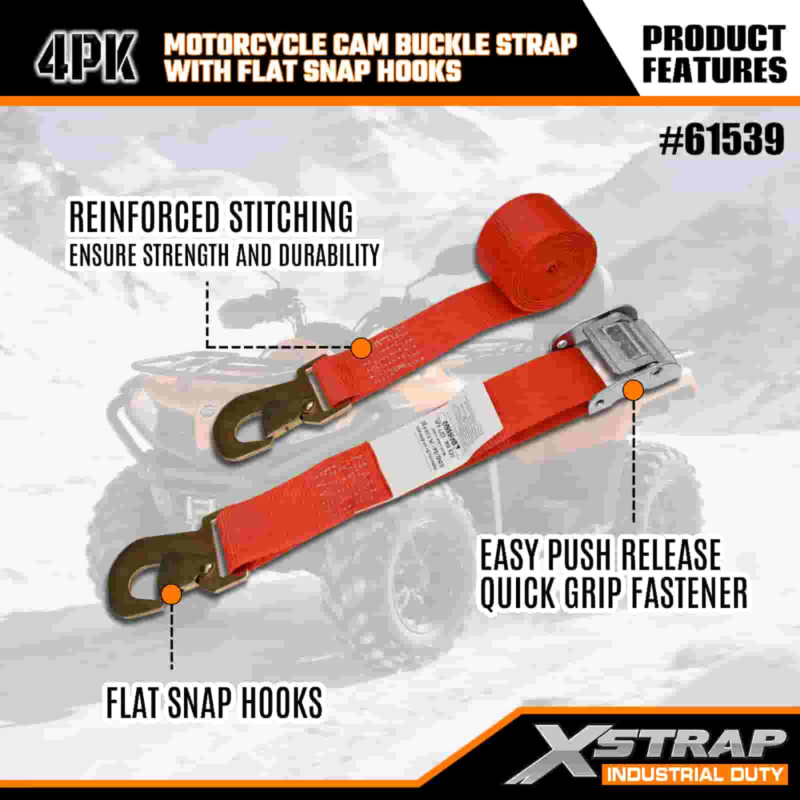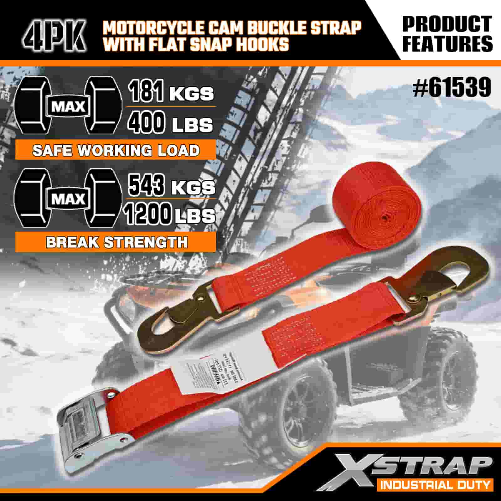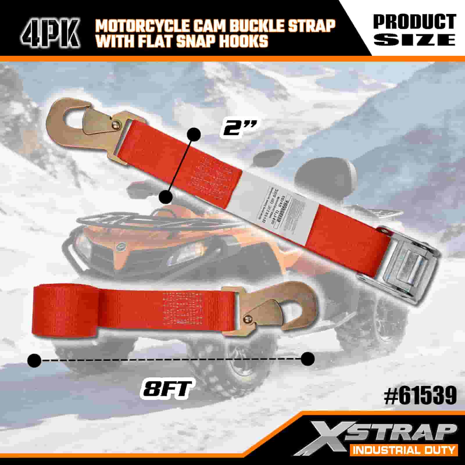 - 4-pack 8FT-storlek (perfekt för motorcyklar): 2-tums bredd fördelar spänningen jämnt (inga ramskador), och 8-fots längd passar lastbilsflakar, släpvagnar eller takräcken. 4-packet ger dig tillräckligt med remmar för att säkra fram-/bakhjulen och styret för total stabilitet.