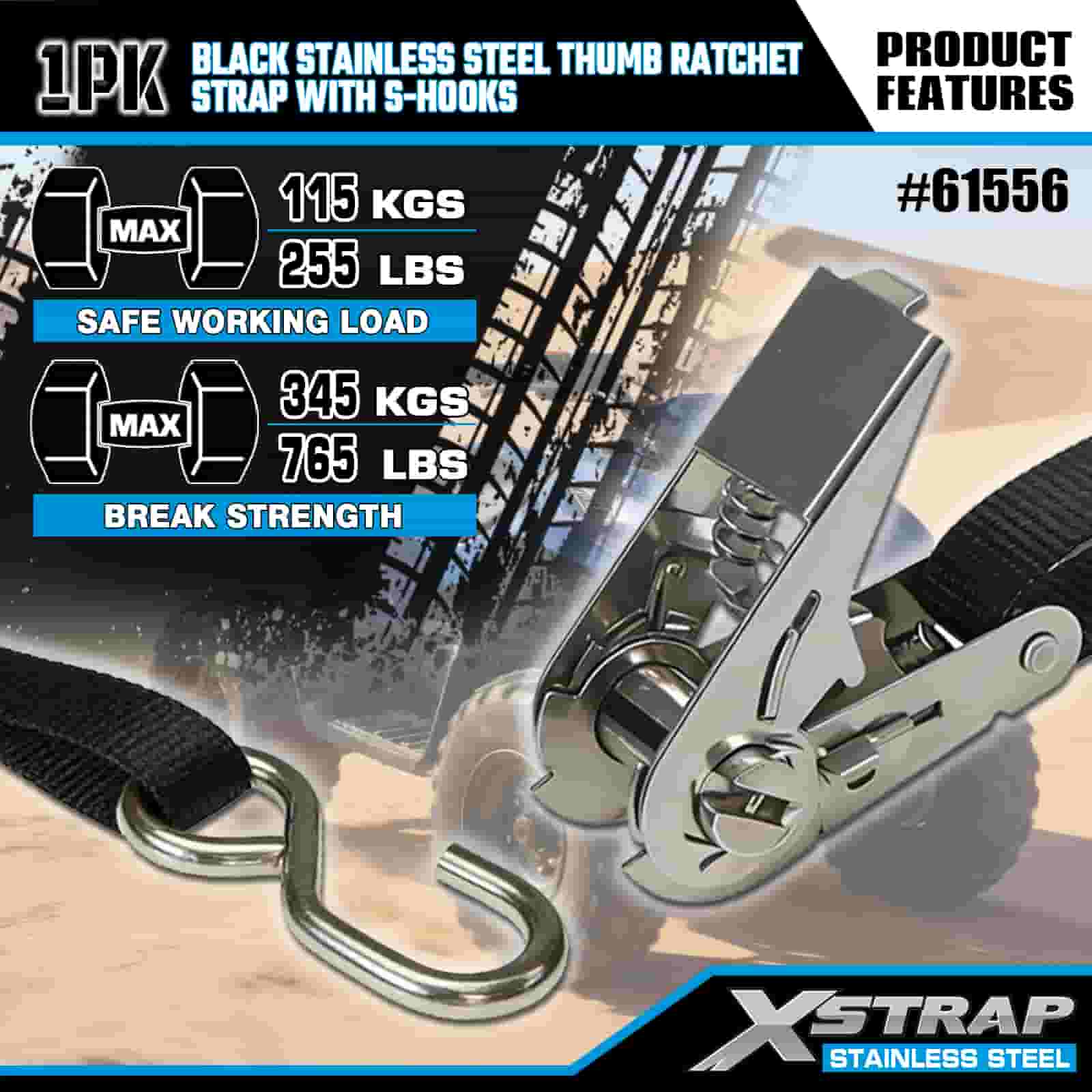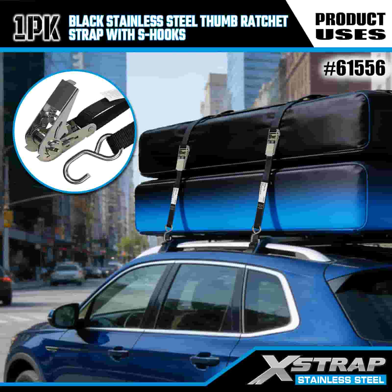 - Marin & Urban Ready, byggd för att tåla Utformad för både kustnära marin användning och stadsresor, denna spärrrem i rostfritt stål är konstruerad för att stå emot saltstänk, regn och dagligt slitage. Lita på XStraps 20 år av lastkontrollexpertis för tillförlitlig säkrare vart än din resa tar dig.