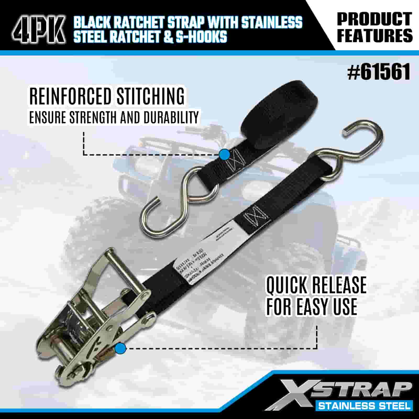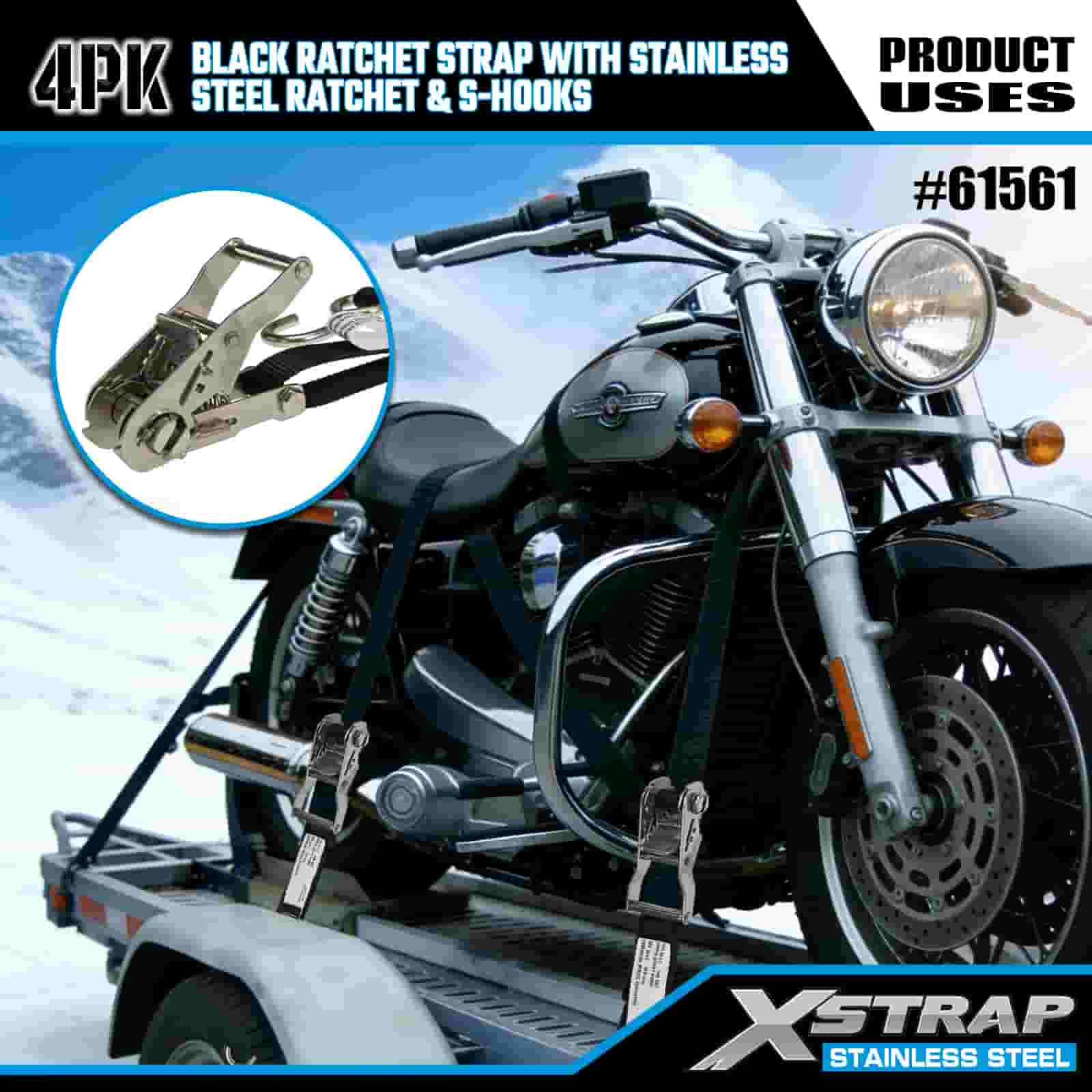 - Kompakt kraftpaket, byggt för motorcykel- och ATV-transporter: Designat speciellt för att säkra motorcyklar och ATV:er på släp, ger detta 4-pack med spärrremmar ett tillförlitligt grepp utan bulk. XStraps 20 år av lastkontrollexpertis säkerställer att din åktur förblir låst på plats, även på gropiga bergsvägar.