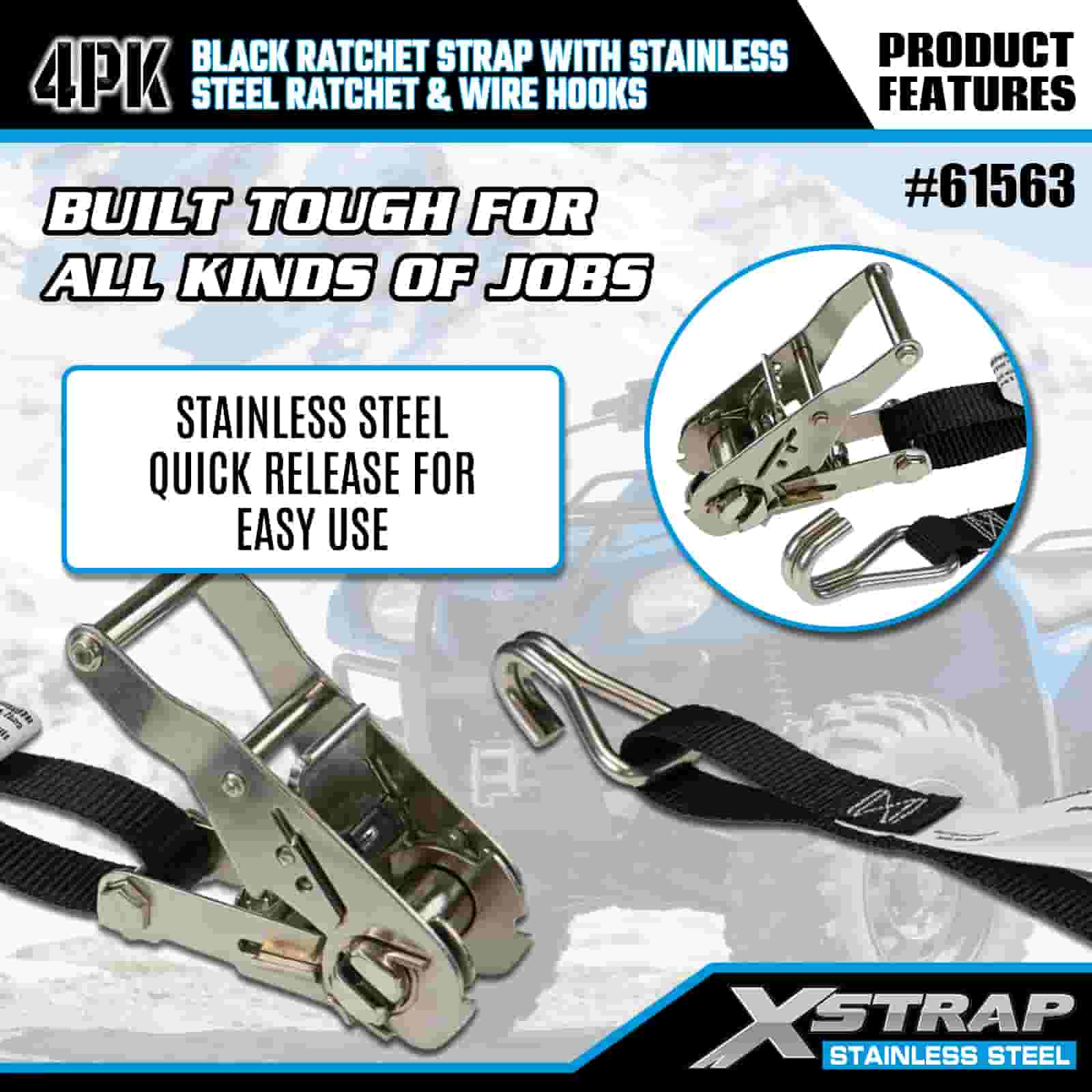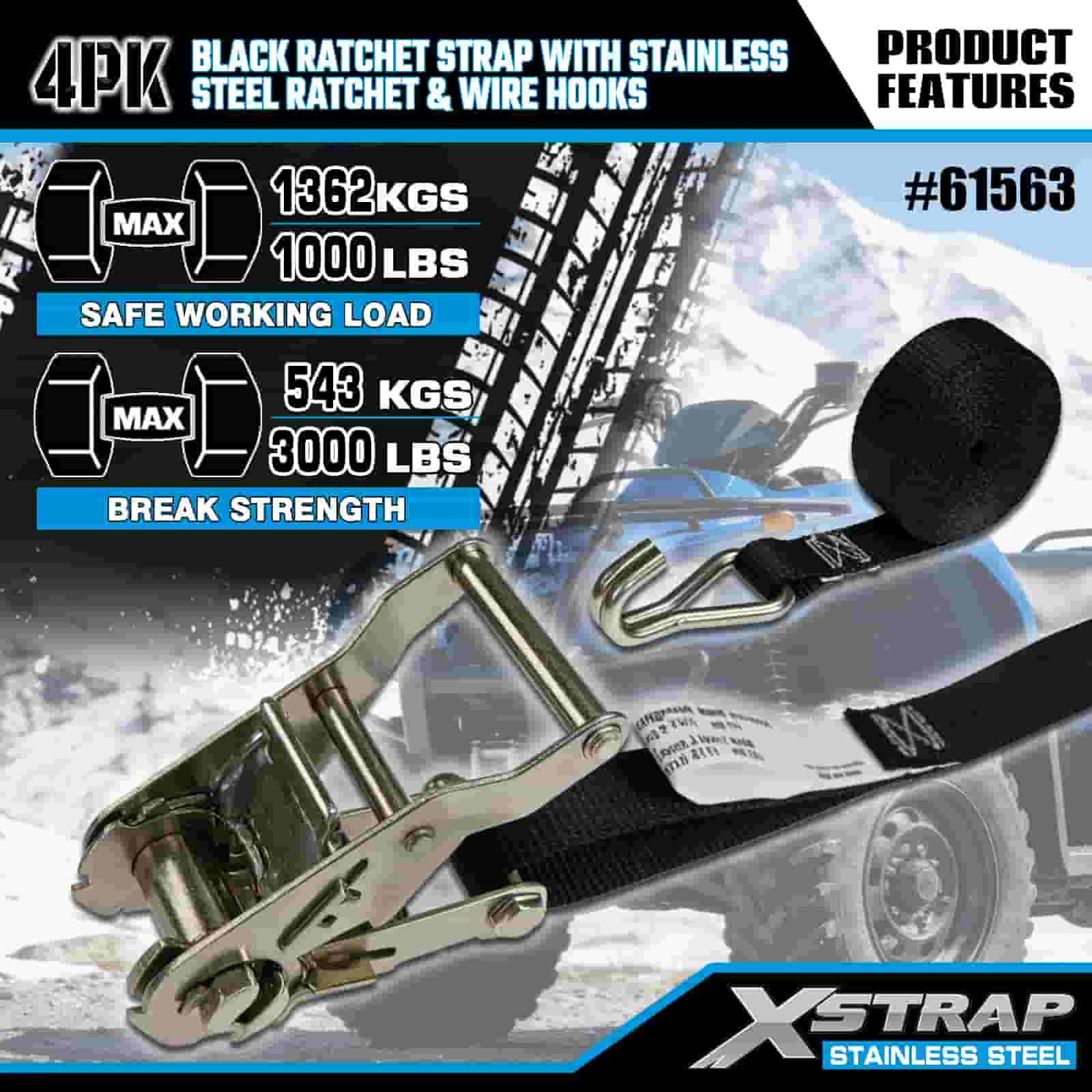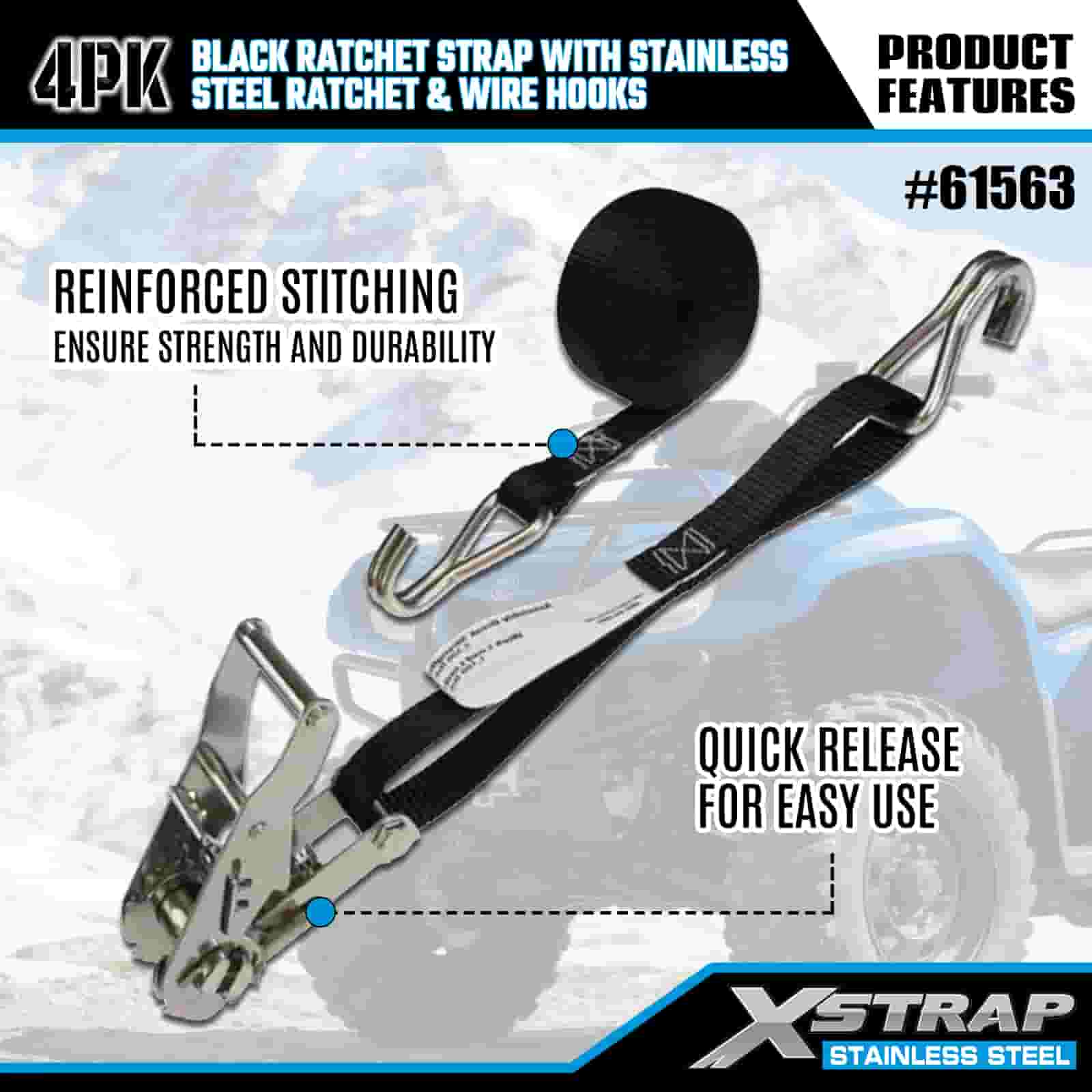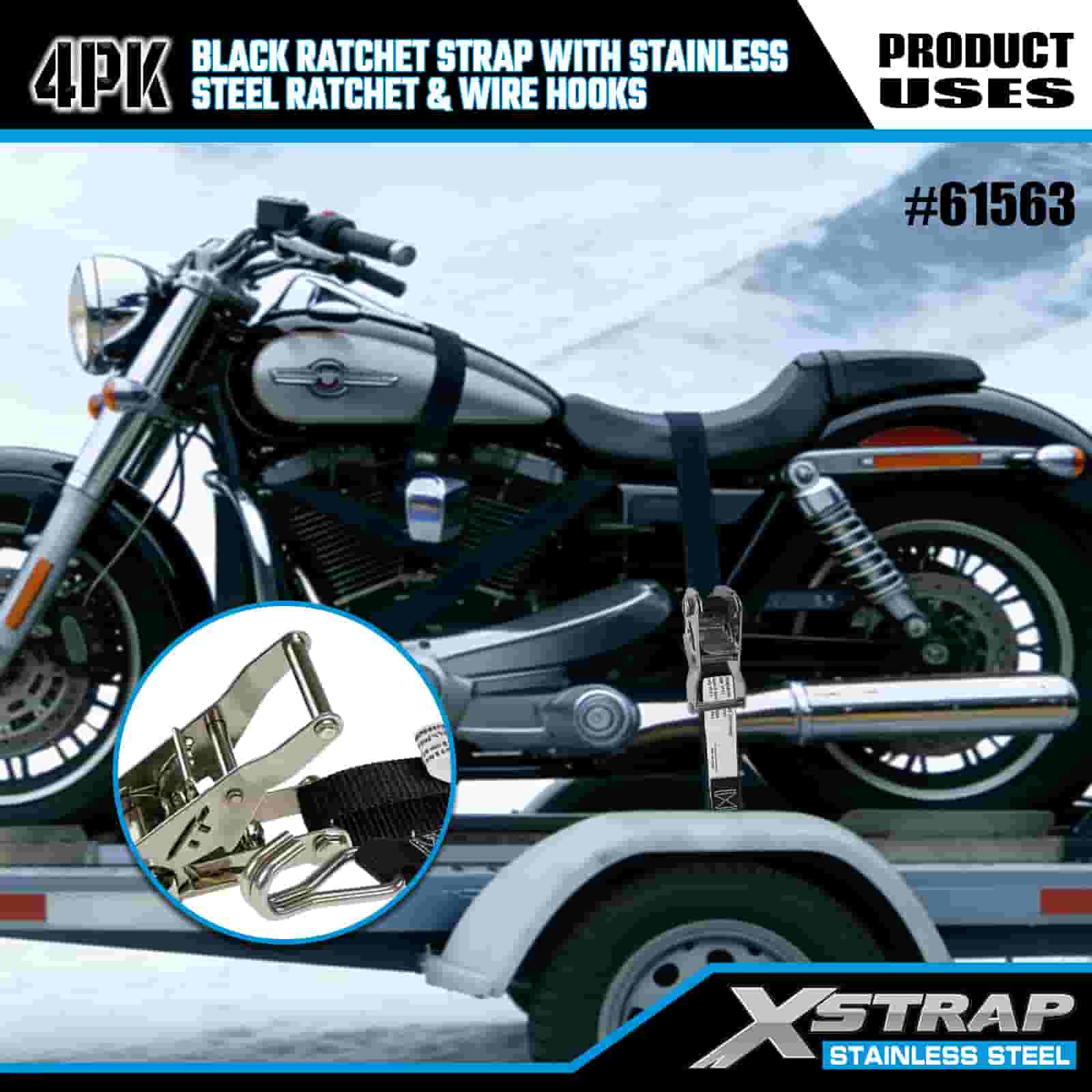 - Kraftig transport är nödvändig, byggd för terräng- och urban användning Designad för att säkra motorcyklar, terränghjulingar och last i både robust terräng och livliga stadsmiljöer, ger detta 4-pack med spärrremmar kompromisslös styrka. Med stöd av XStraps 20 år av lastkontrollexpertis kan du lita på att din last förblir låst, oavsett terräng.