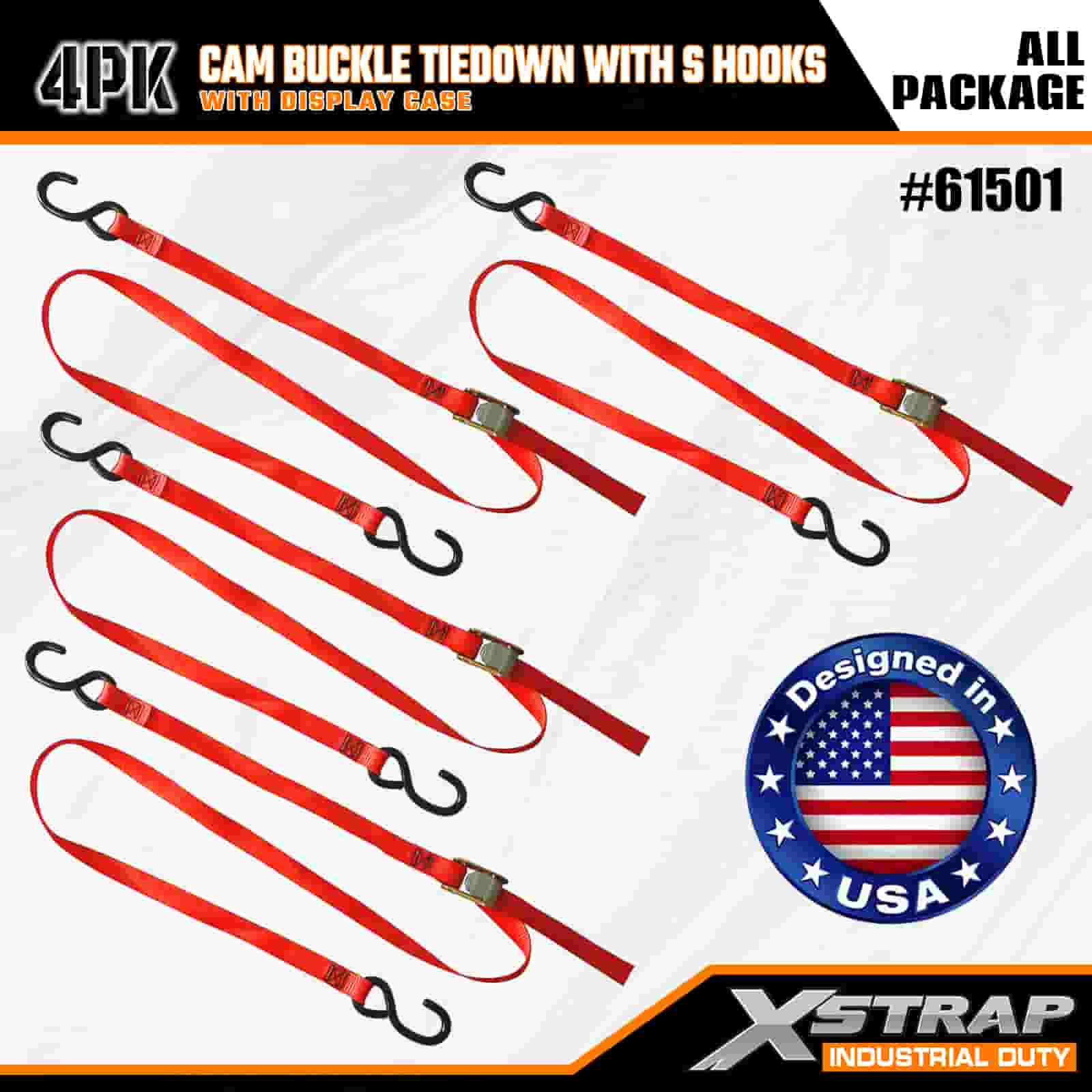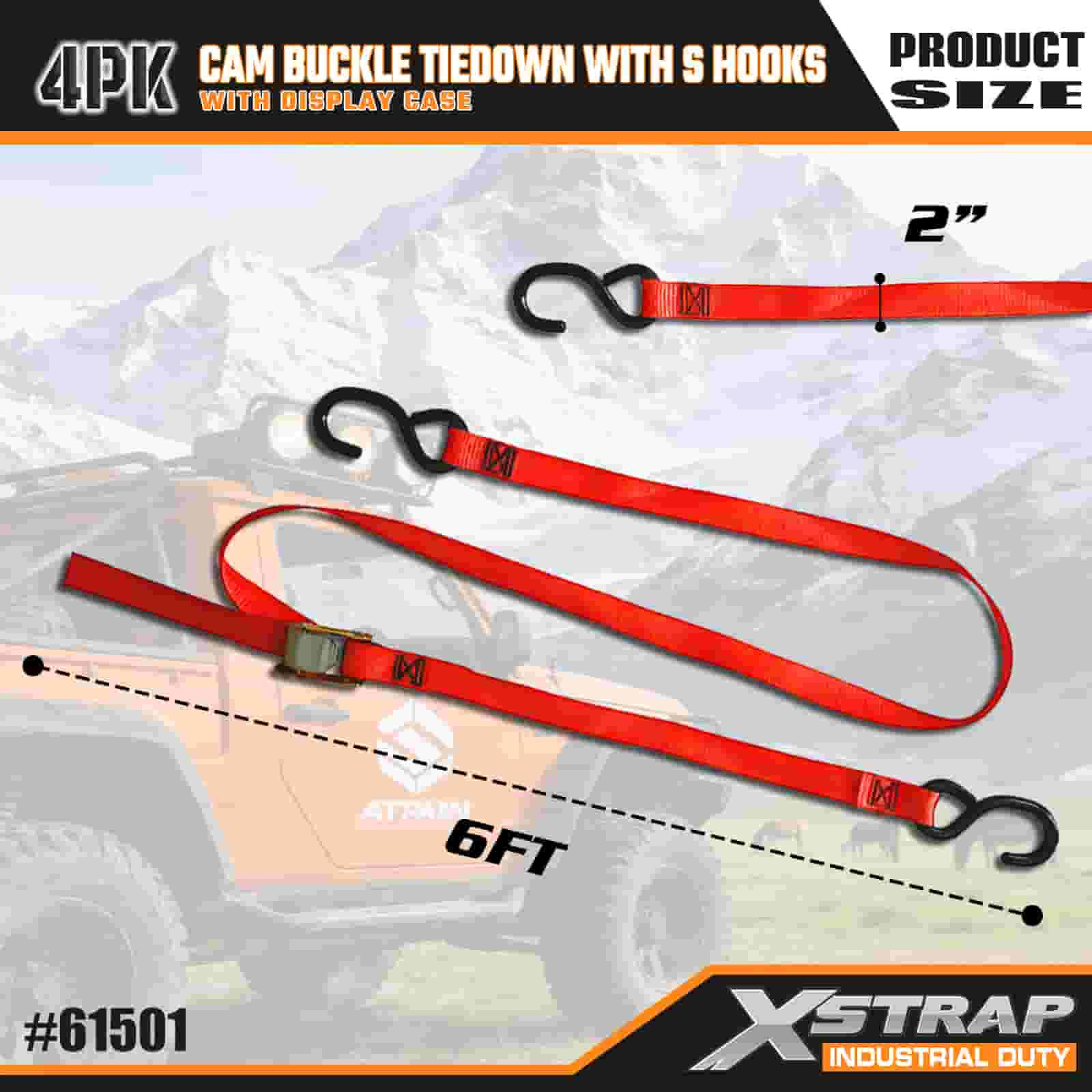 2" x 6' 4PK Cam Buckle Tie Down med S-krokar
