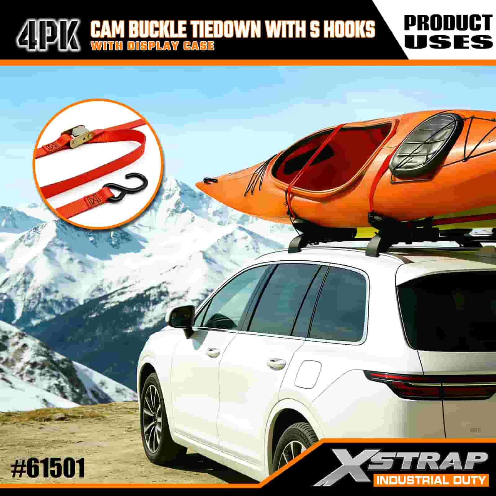 - Praktiskt 4-pack med utställningsfodral: Säljs i en uppsättning om 4 (med displayförpackning) för batchanvändning, och varje rem är 2 tum bred × 6 fot lång vilket är idealiskt för att säkra föremål som kajaker, utomhusutrustning eller last.