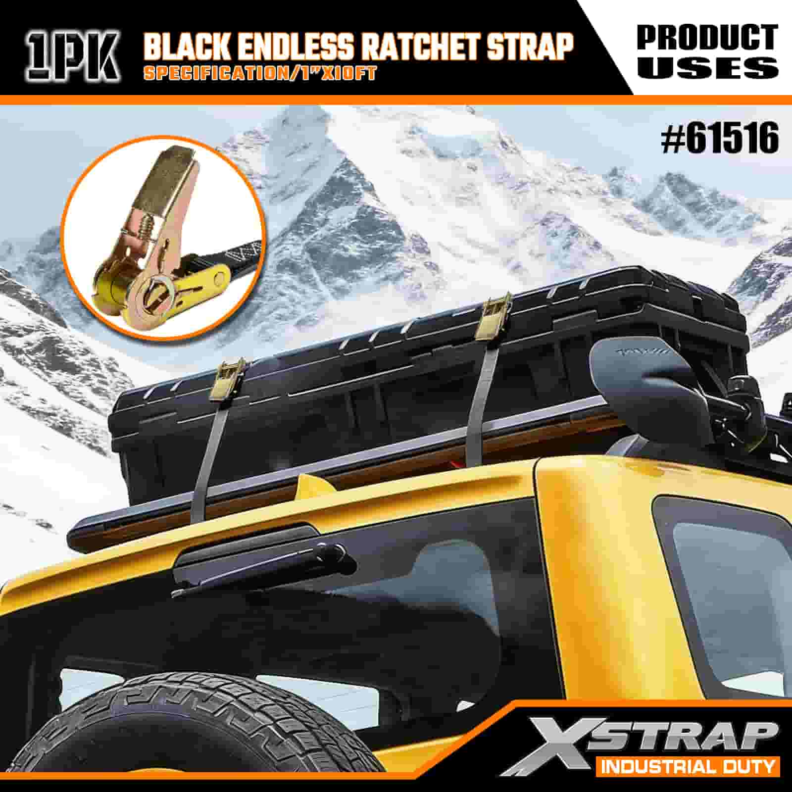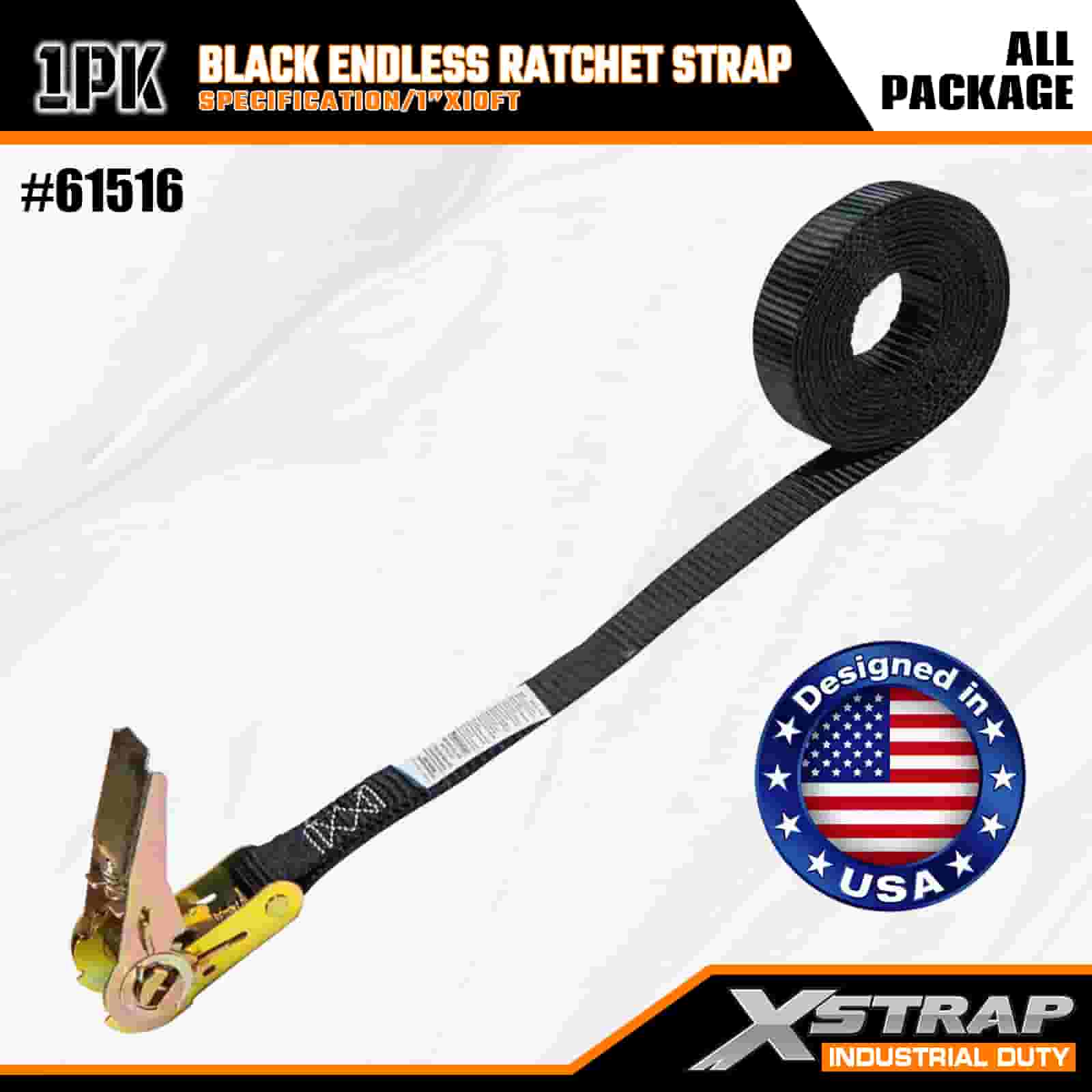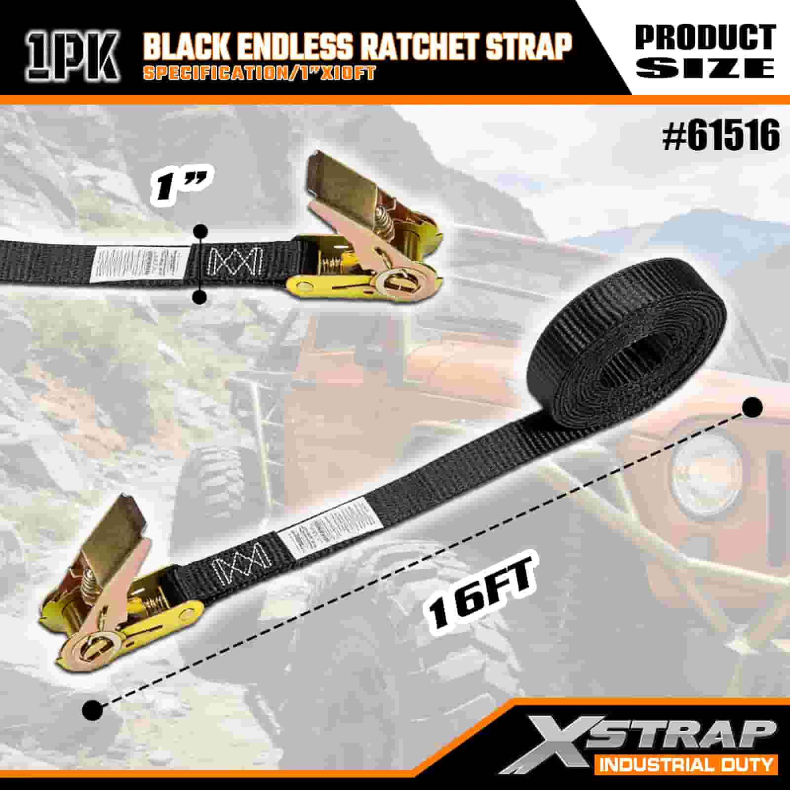 Xstrap Svart Ändlös spärrrem, 1" x 10" Polyester Tie Down Strap Drag Ratchet Strap, 500lbs Kapacitet Cargo Surrning Säkringsremmar för den seriösa proffsen för att säkra lastsläp, platt släp, skidbåt, liten bil.