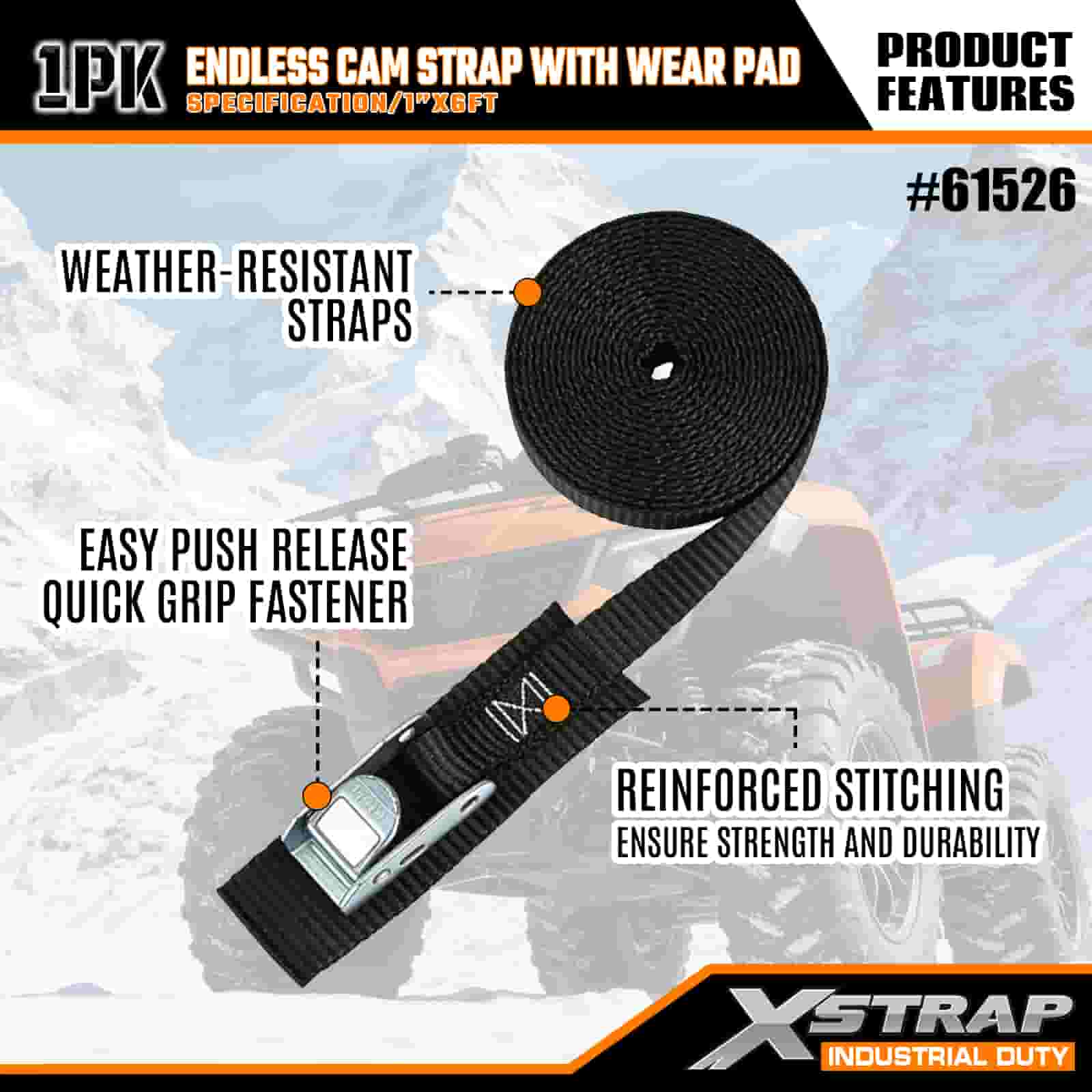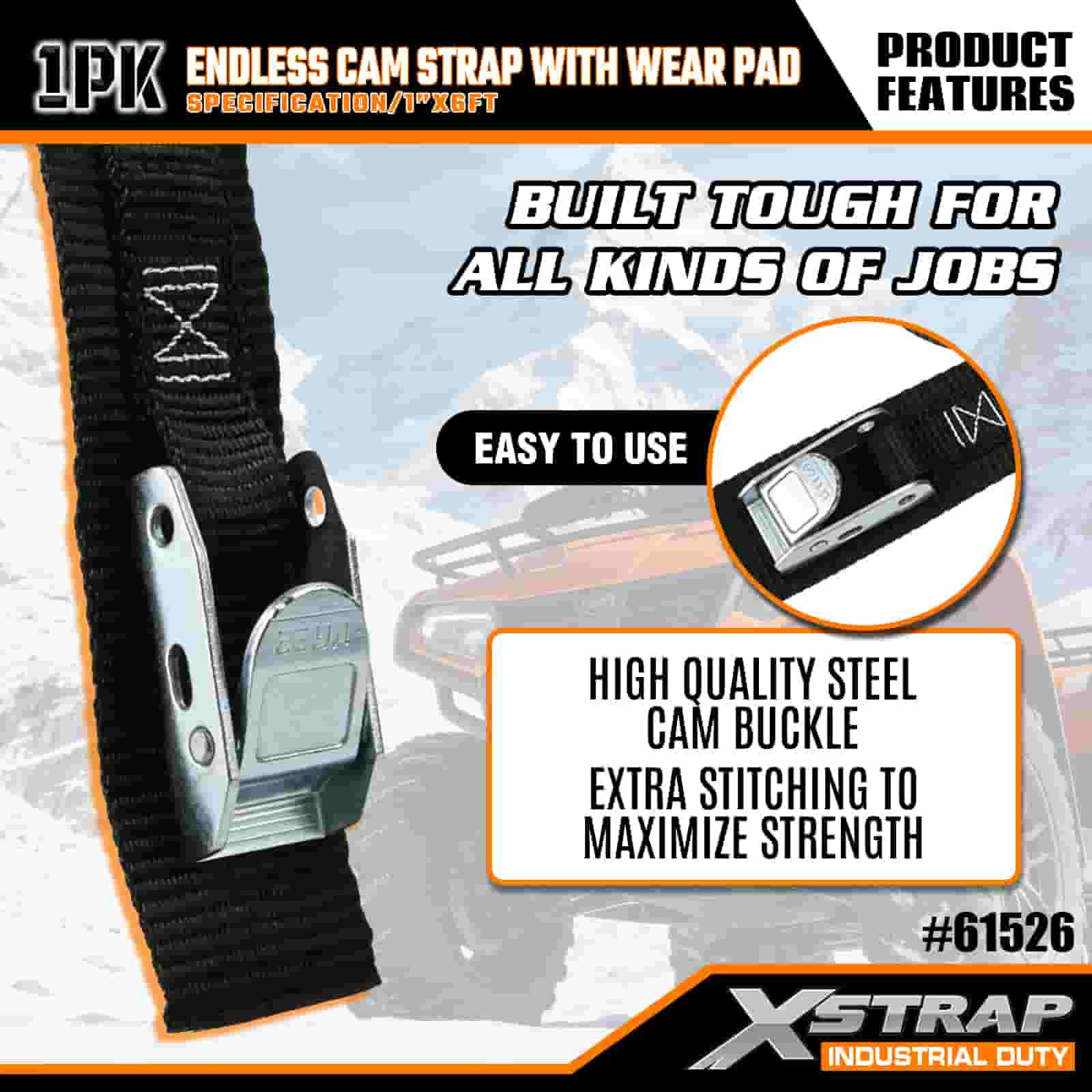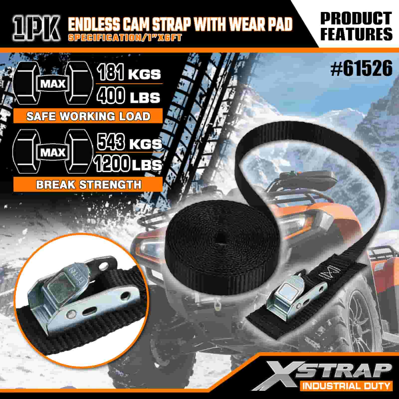 Xstrap Endless Cam Strap med Wear Pad, 1" x 6" Polyester Tie Down Strap Drag Cam Spänne Strap, 400lbs Kapacitet Cargo Surrning Säkringsremmar för den seriösa proffsen att säkra lastsläp, platt släp, skidbåt, liten bil.