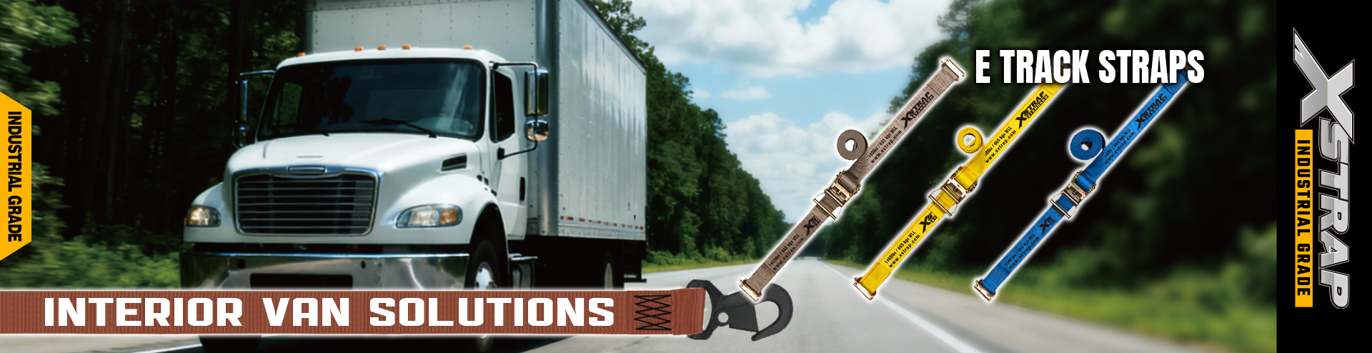 E Track Straps fungerar tillsammans med E-Track Rail System installerat inuti lastbilen eller trailern.