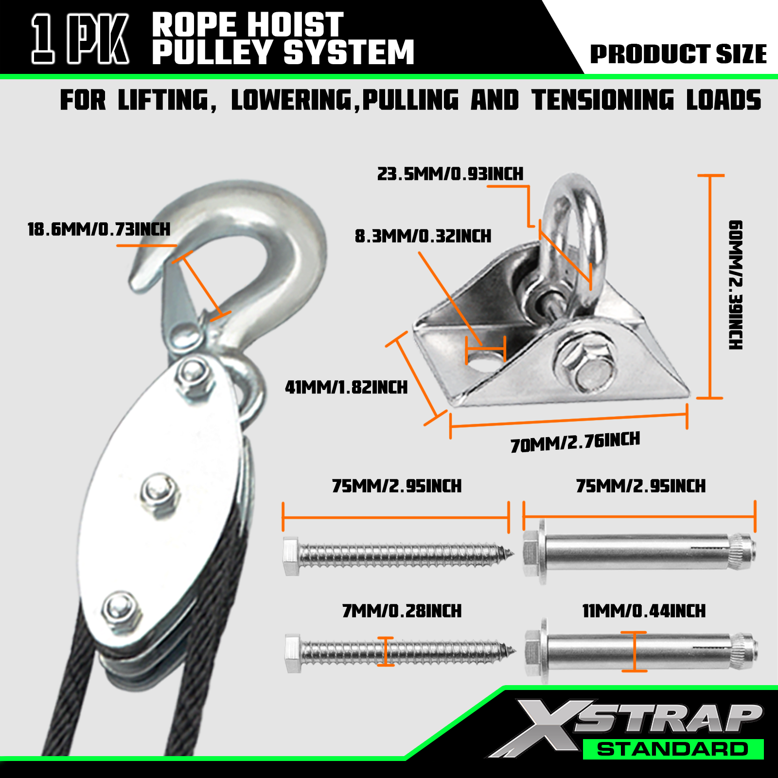 - Kraftig block- och tacklingsmekanism gör nästan allt arbete, perfekt för idrottare: jakt, båtliv, lyft, garage, rådjur, trädkapning, gör-det-själv-vind och många fler användningsområden