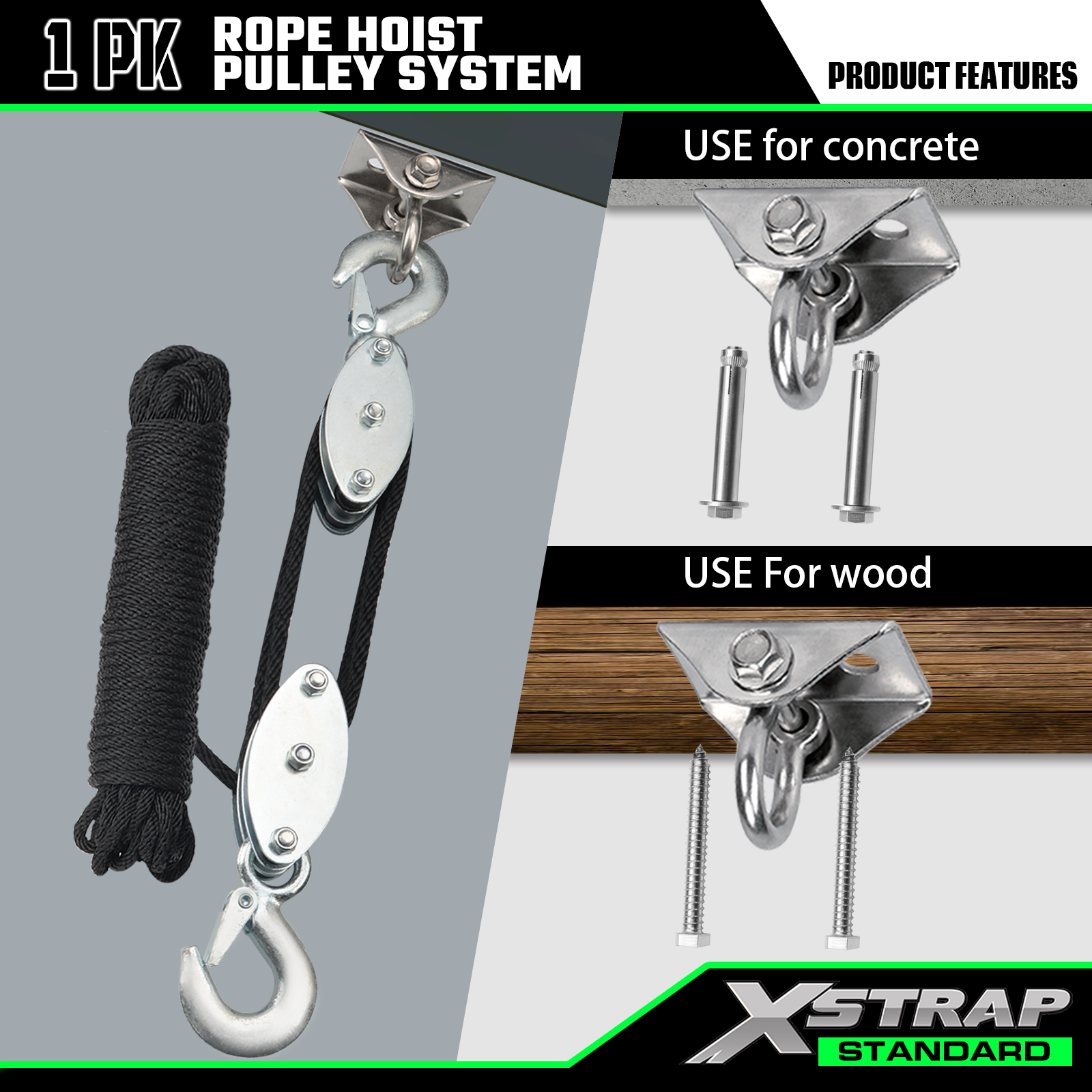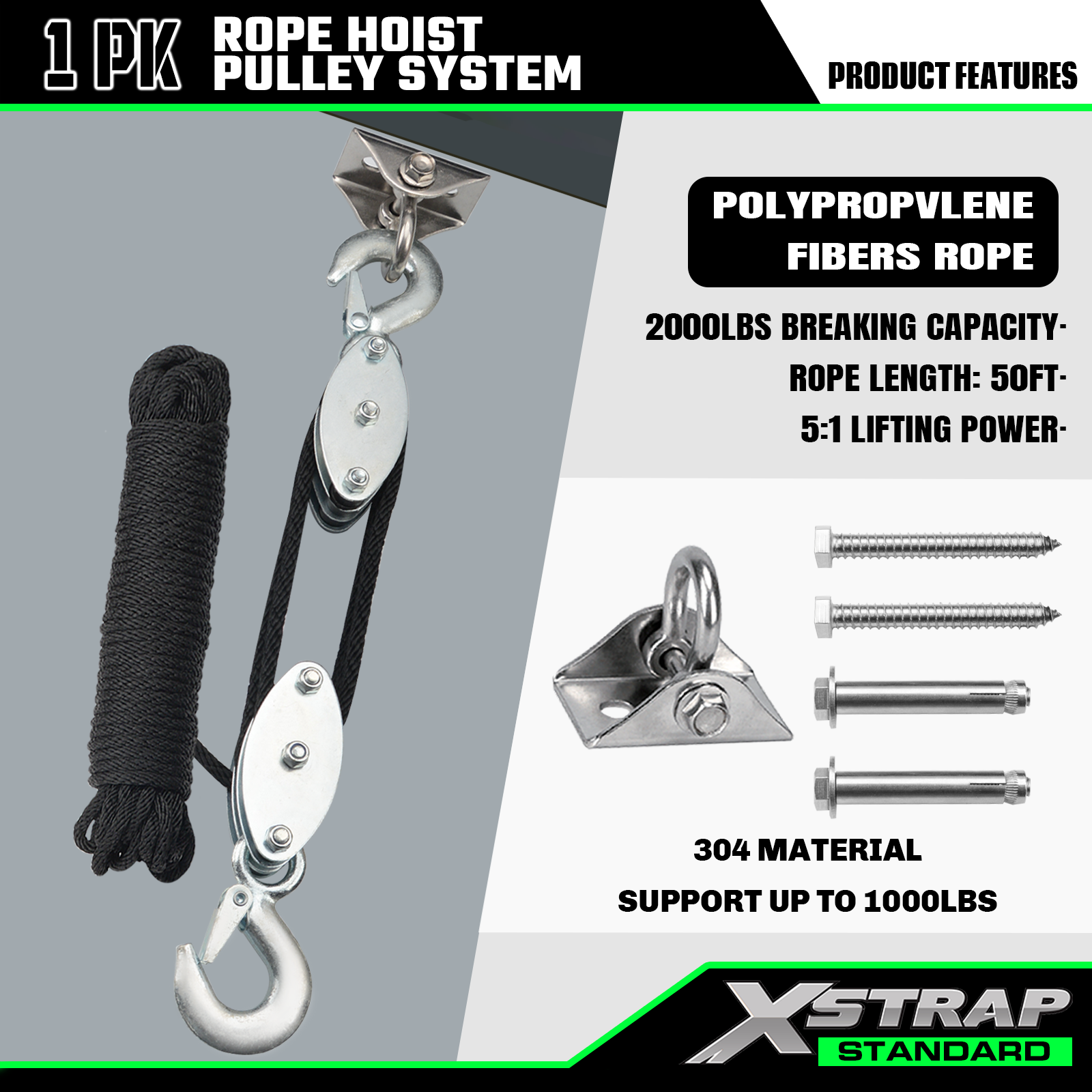 Xstrap AHLT0004 50 Ft Rope Hoist Pulley System 1000LB