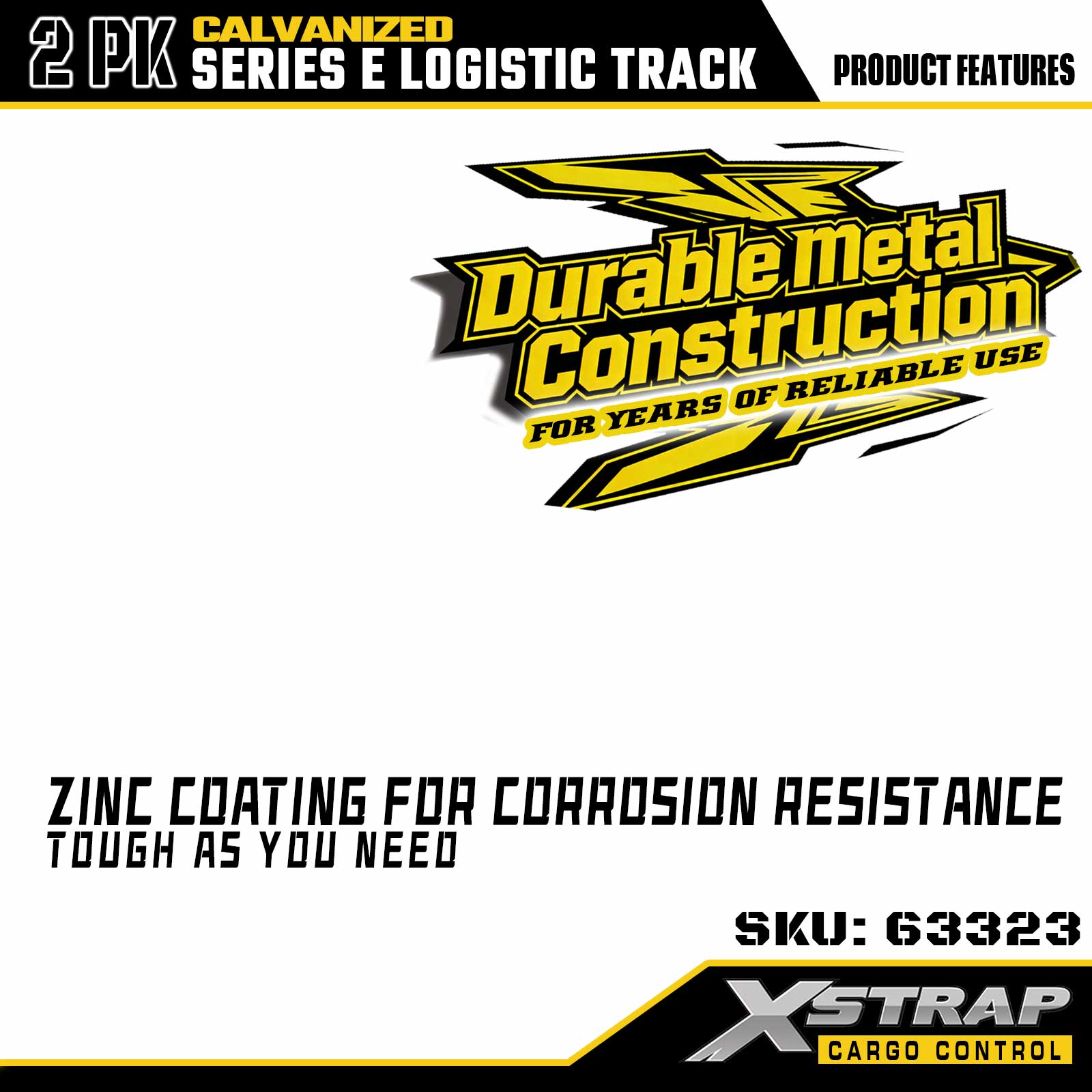 Xstrap 63322 4 fot elektropläterad silver E-Track Tie-Down Rail - 12-Gauge stål med galvaniserad yta, 6000 LBS lastkapacitet, 2-pack för lastsäkring