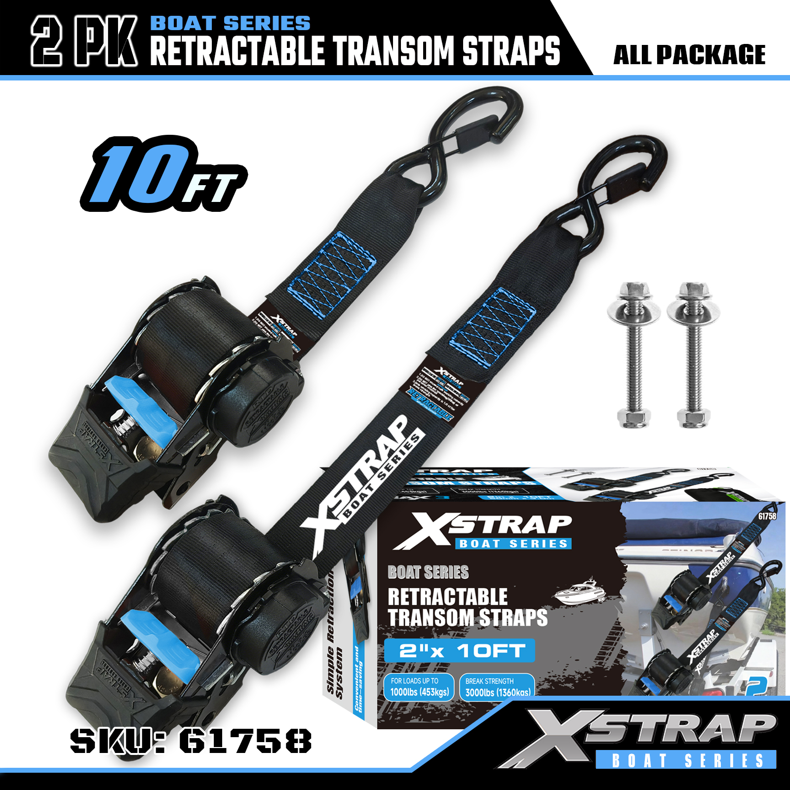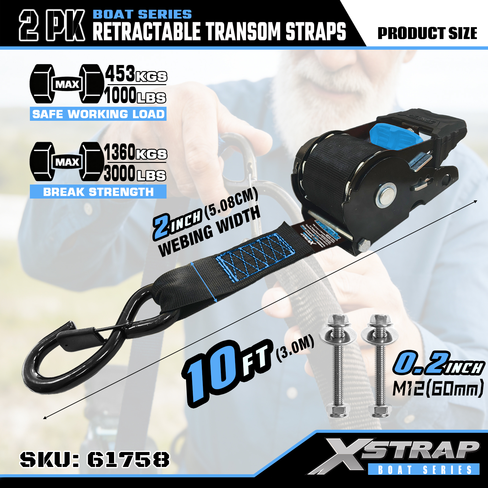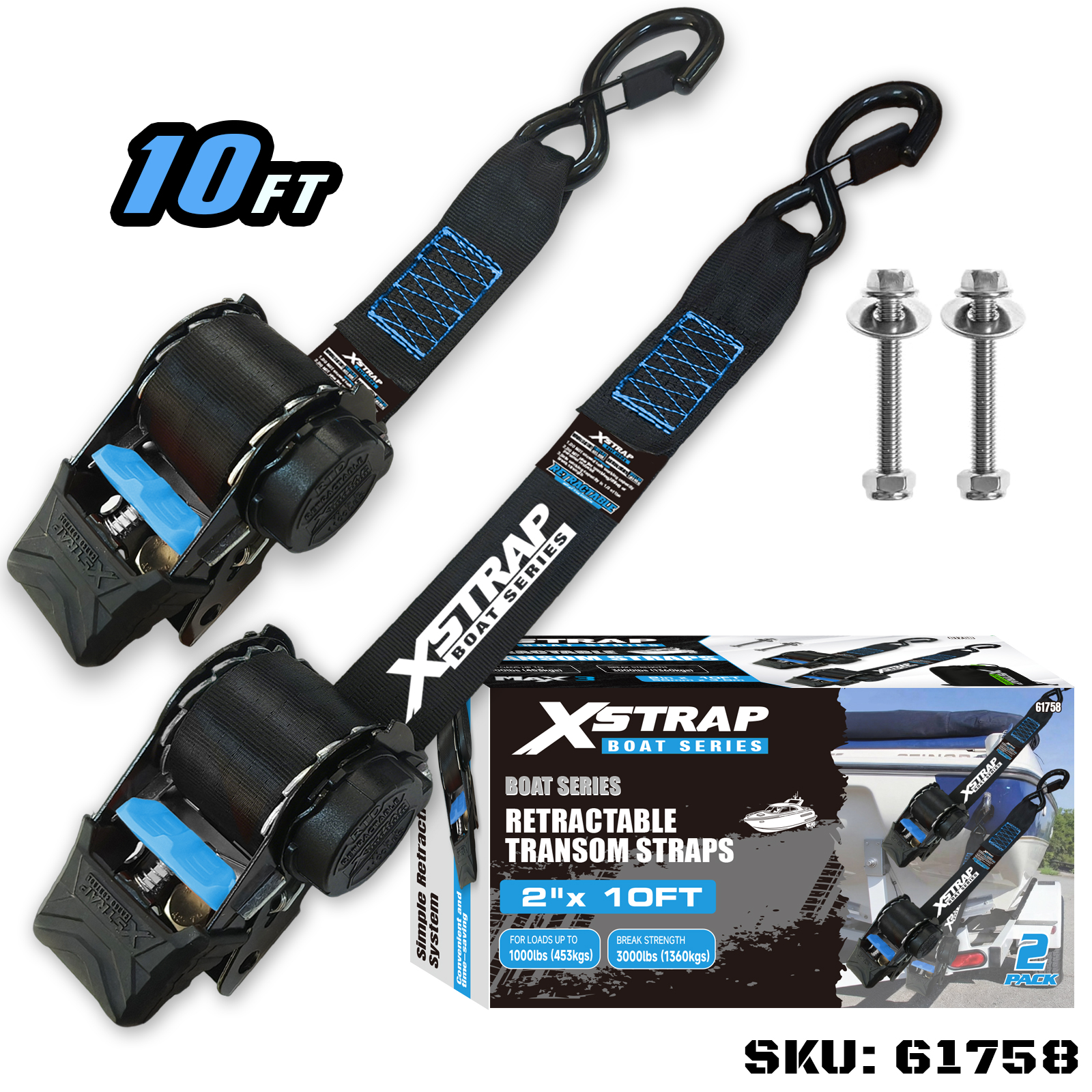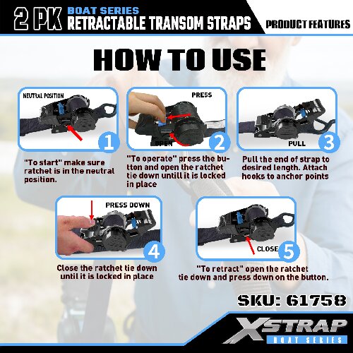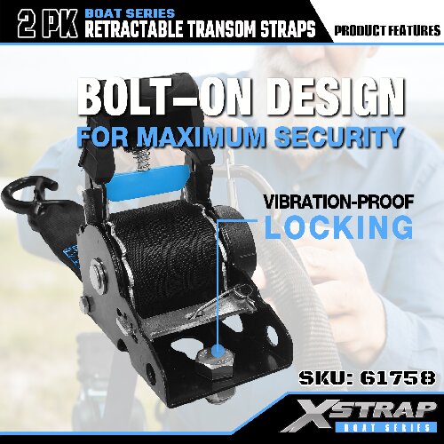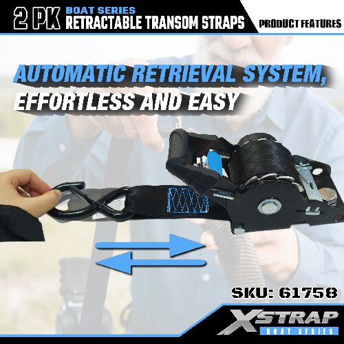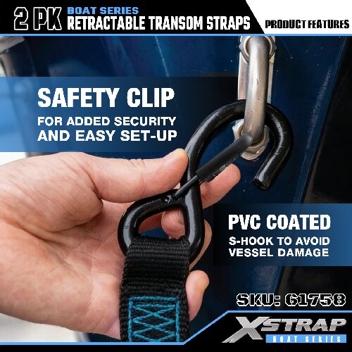 Xstrap 61758 Infällbara akterspegelsremmar med säkerhetskrokar 1 000 LB SWL