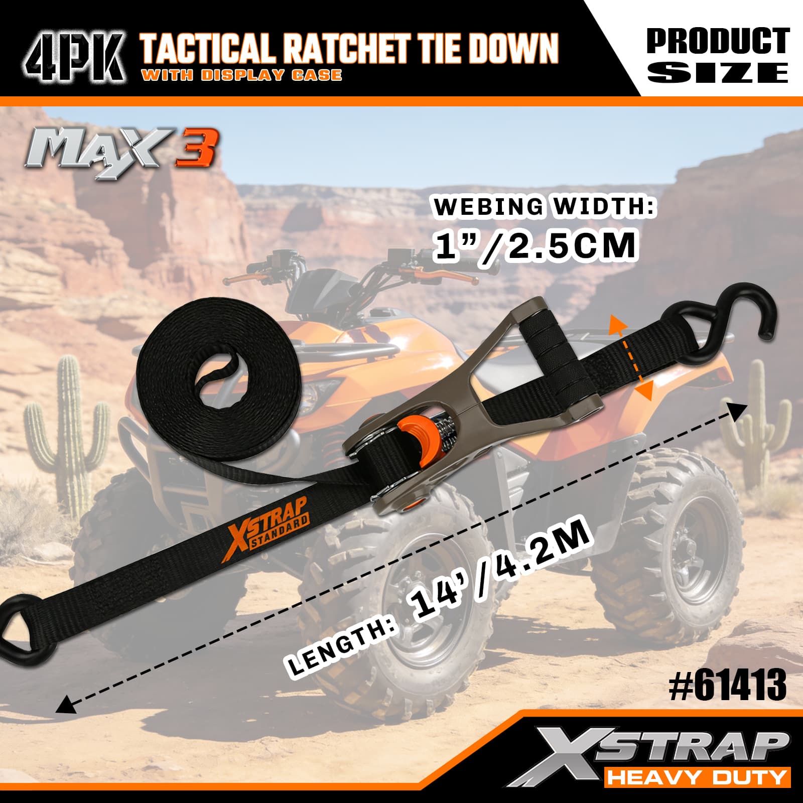 Xstrap 4 Pack Tactical Ratchet Tie Down med Soft Loop, 1” x 14″ Polyester Tie Down Strap Drag Ratchet Strap, 1000lbs Kapacitet Cargo Surrning Säkringsremmar med S-krokar för lastbil, SUV, Car Top Racks motorcykel.