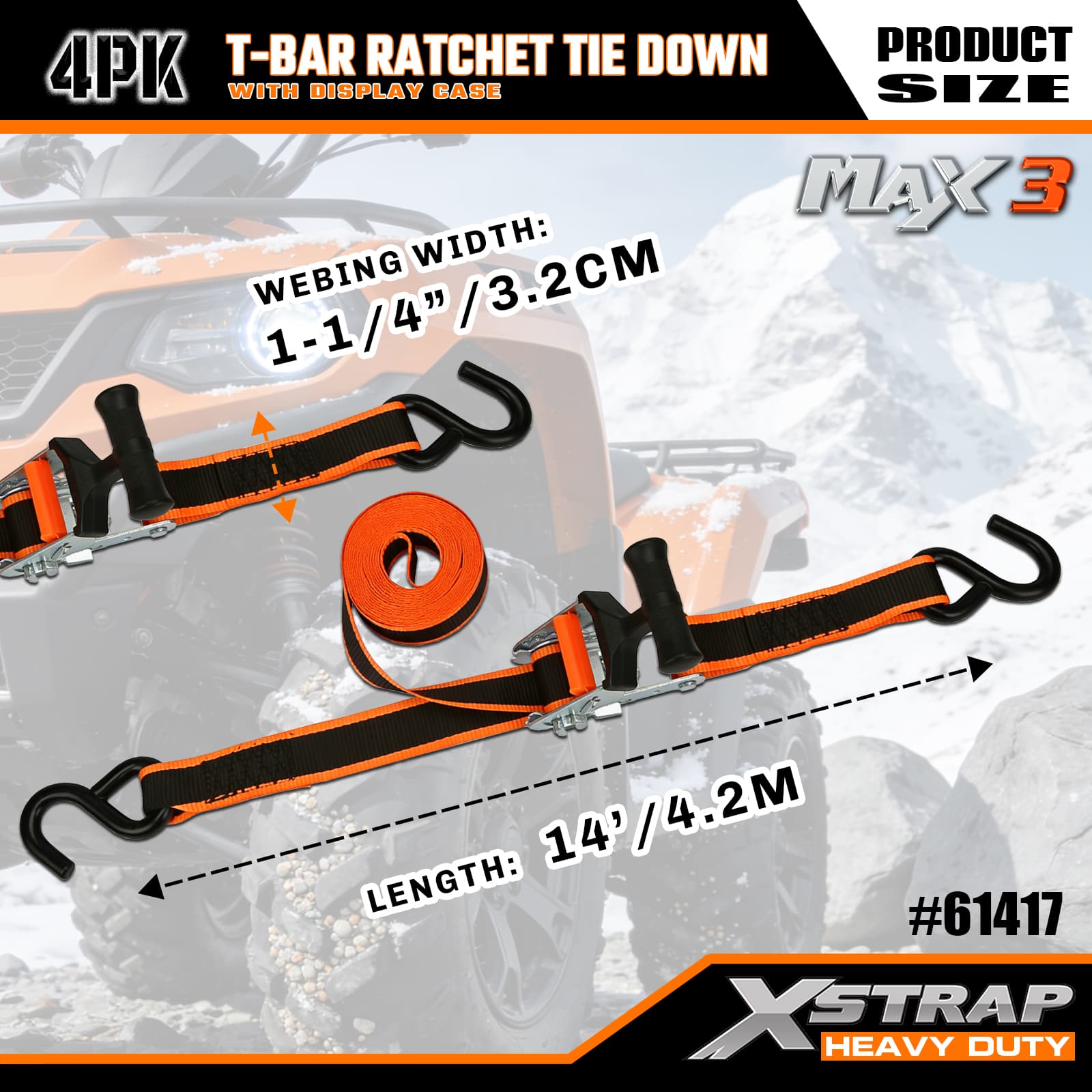 Xstrap 4-pack T-Max Grip Ratchet Tie Down, 1-1/4 ” x 14″ Polyester Tie Down Strap Drag Ratchet Strap, 1000lbs Kapacitet Lastsurrning Säkringsremmar med S-krokar för pickup, SUV, Car Top Racks Motorcykel, Je Light Fishing Lawn Tractor.