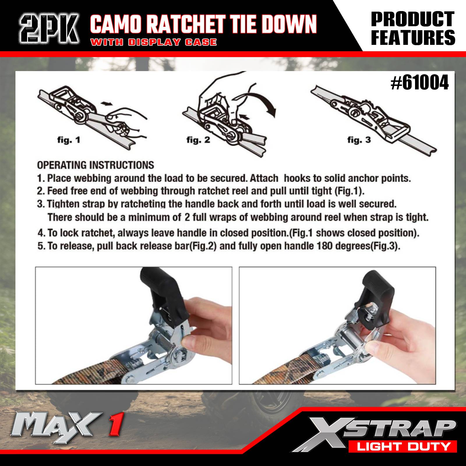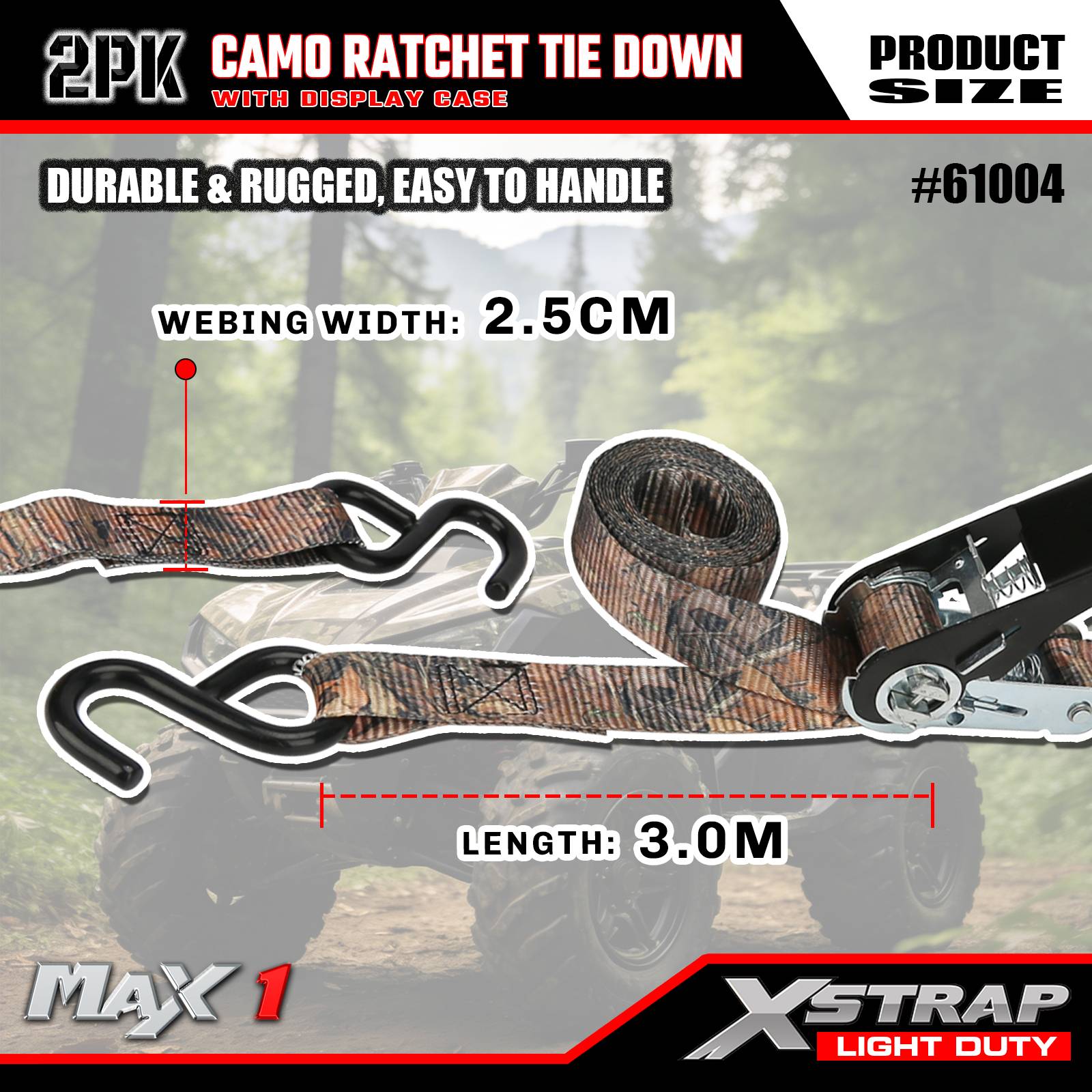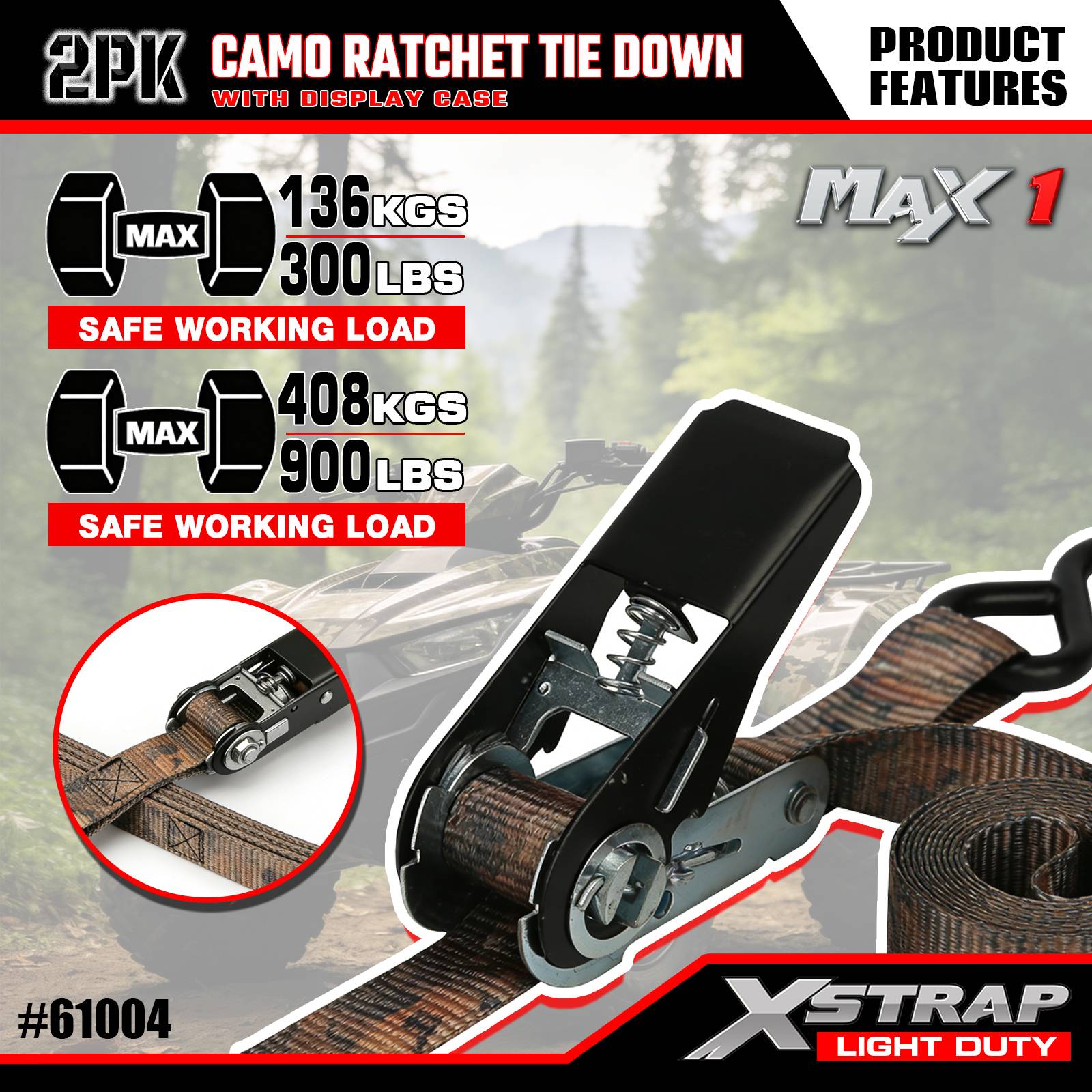 Xstrap 2-pack spärrremmar, 1"x10' - 300 pund lastskydd - 900 pund brytstyrka-lastremmar för flyttbara apparater, gräsmattor, motorcykel, kamouflage