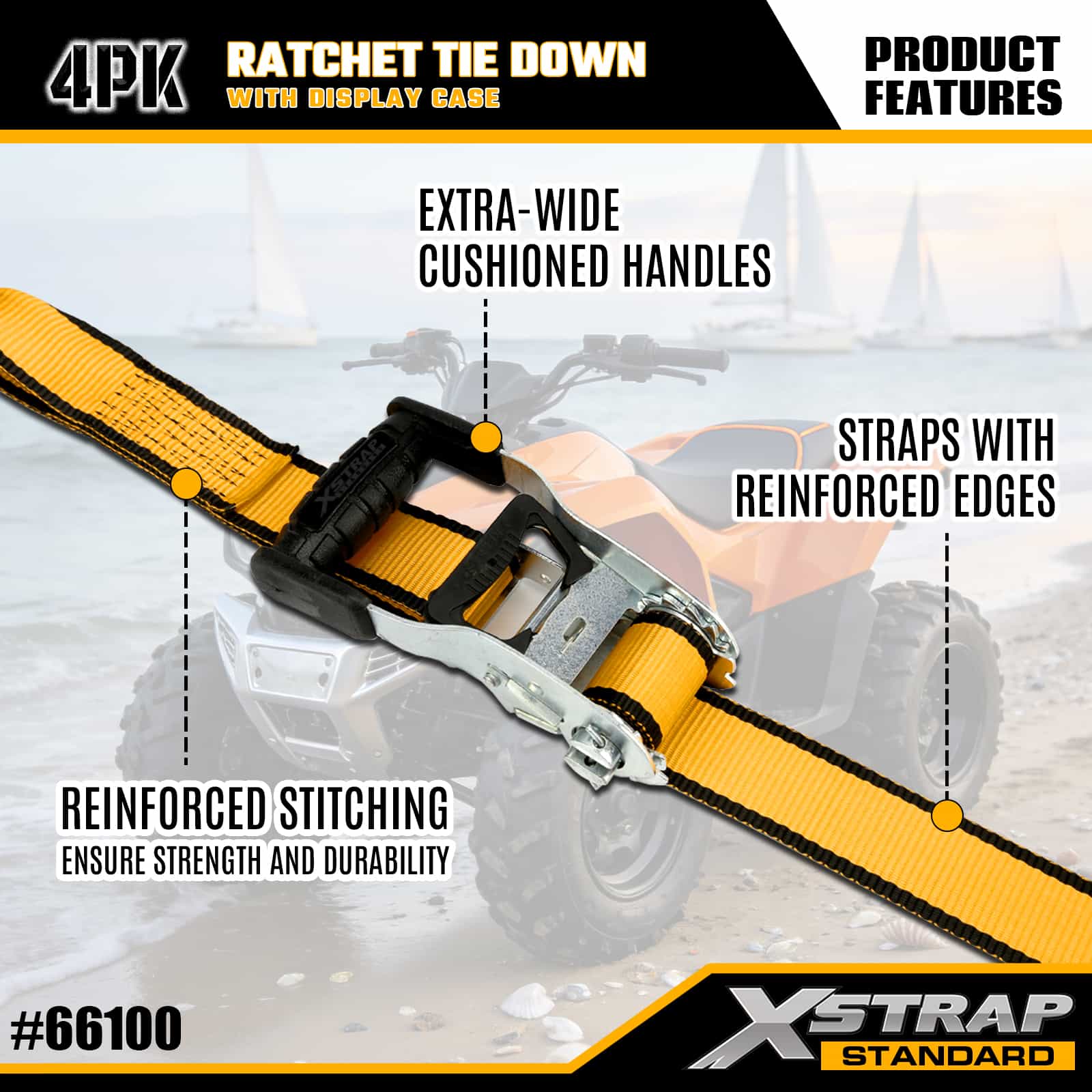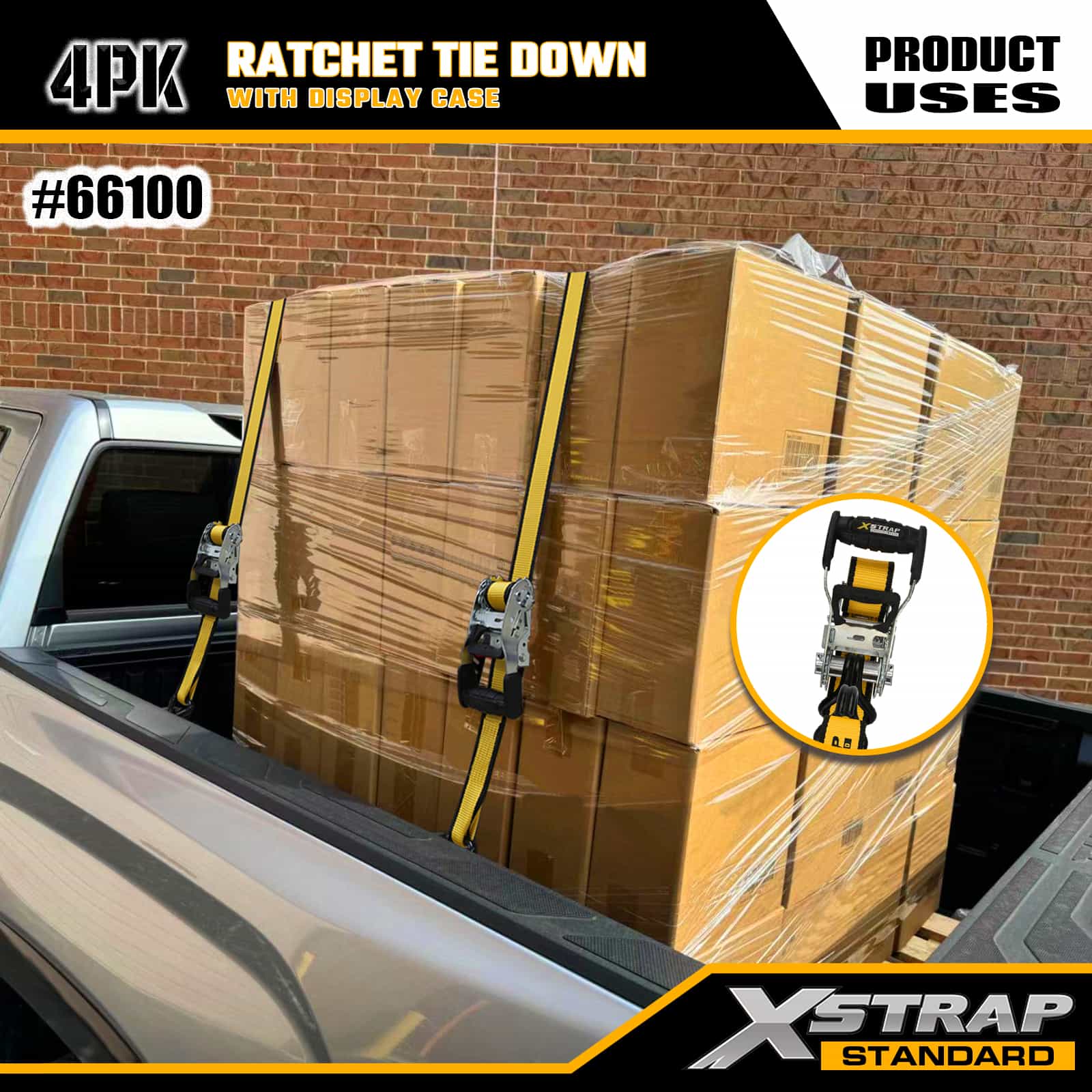 - Ergonomiskt, vadderat spärrhandtag: Levereras med ett extra brett, vadderat handtag som möjliggör bekväm, låg ansträngning att spänna - ingen belastning på händerna även när du fäster tunga laster, lämplig för frekvent eller långvarig användning.