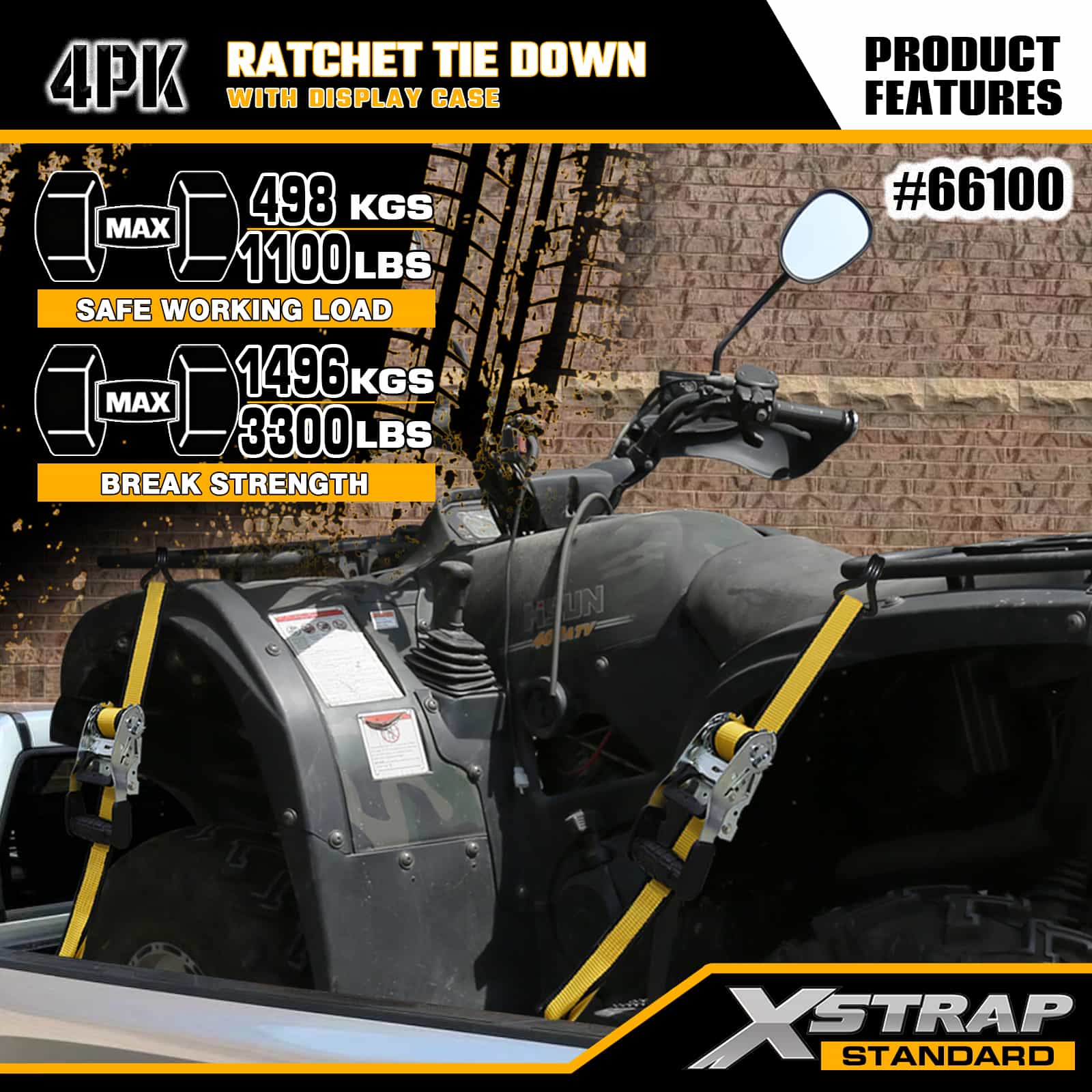 Xstrap 4-pack spärrband med dubbla J-krokar, 1-1/2" x 16" polyesterbindningsrem Dragspärrrem, 1100lbs Kapacitet Lastsurrningssäkringsremmar med dubbla J-krokar för pickup, SUV, bilställ, motorcykel, lätt fiskebåt, snöskoter, jet skidor.
