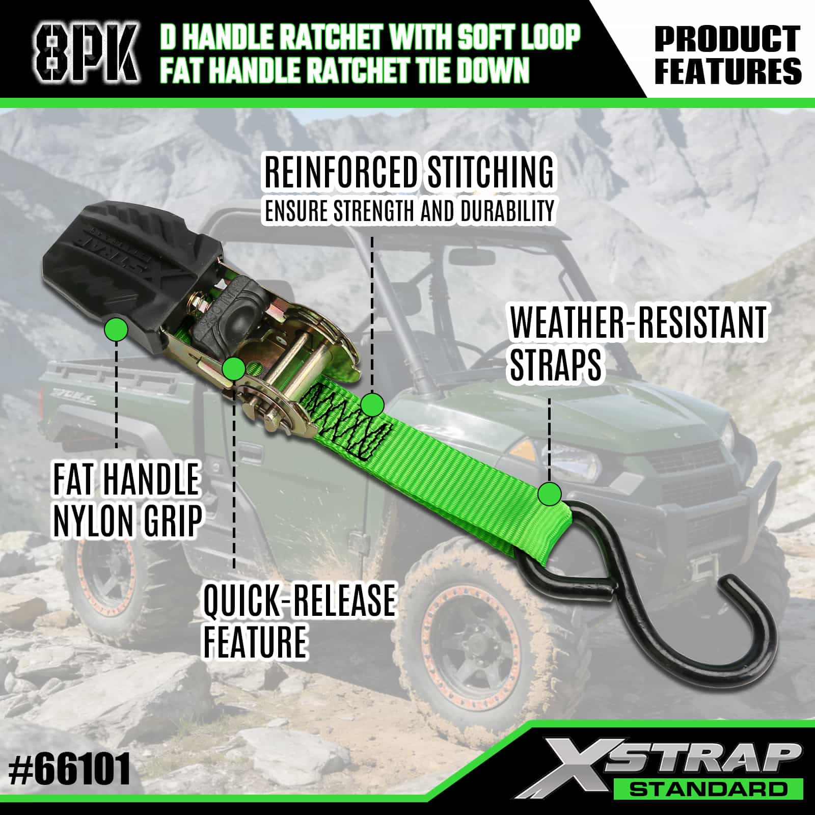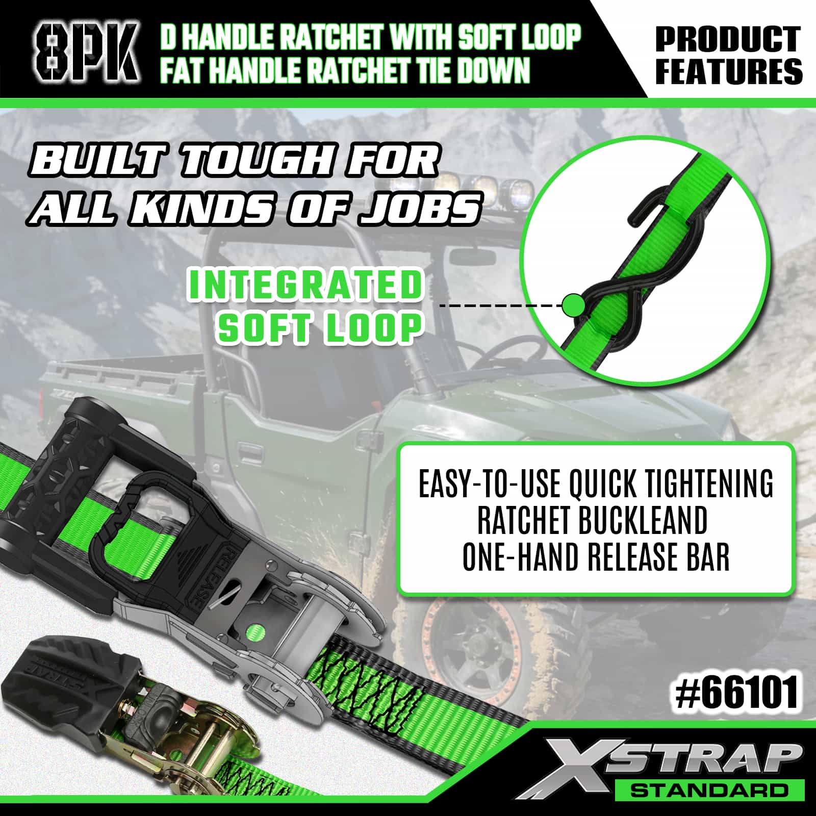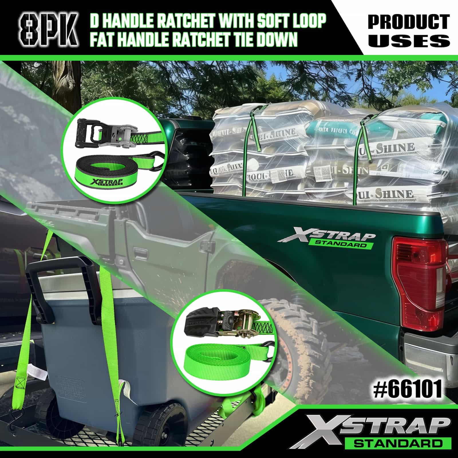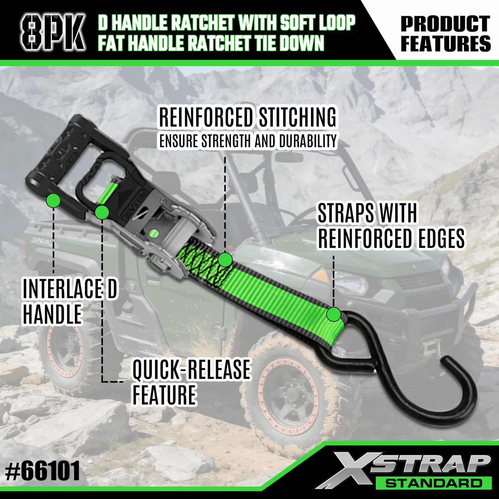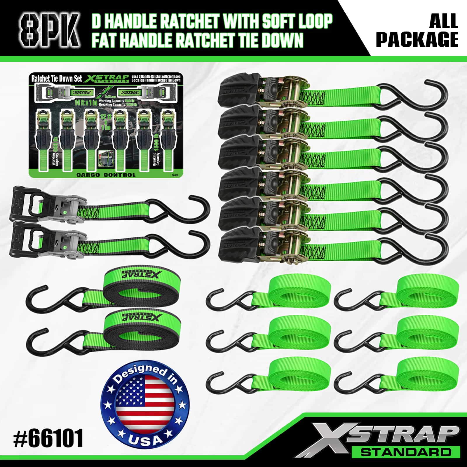 - Organiserad 8-pack displayförpackning: Kommer i en snygg, märkt displayförpackning som separerar 2 D-handtag och 6 fetthandtag som håller uppsättningen snygg för förvaring, transport och enkelt val av rätt rem för olika lastbehov.