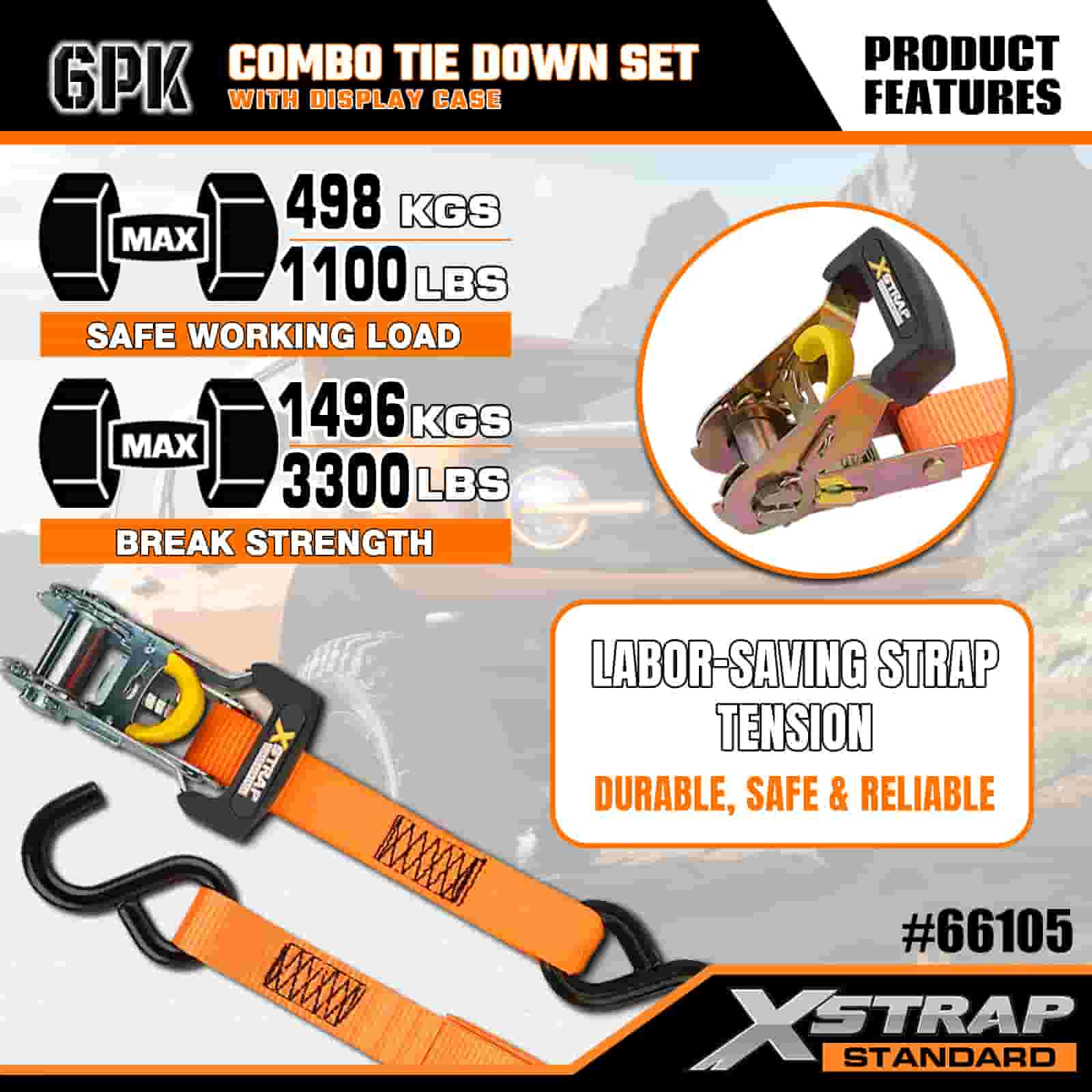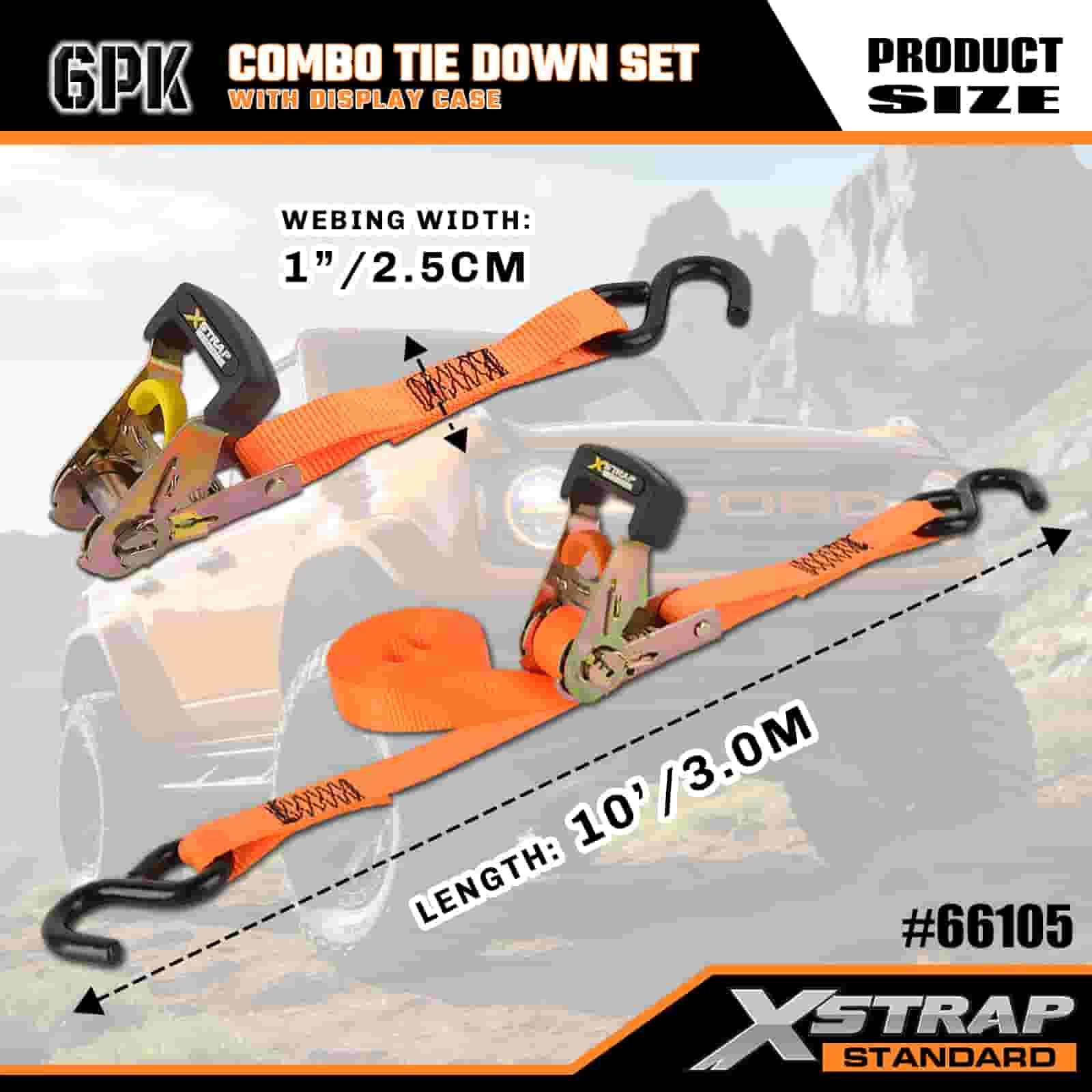4PK 1” x 14’ och 2PK 1” x 10’ Combo Tie Down set