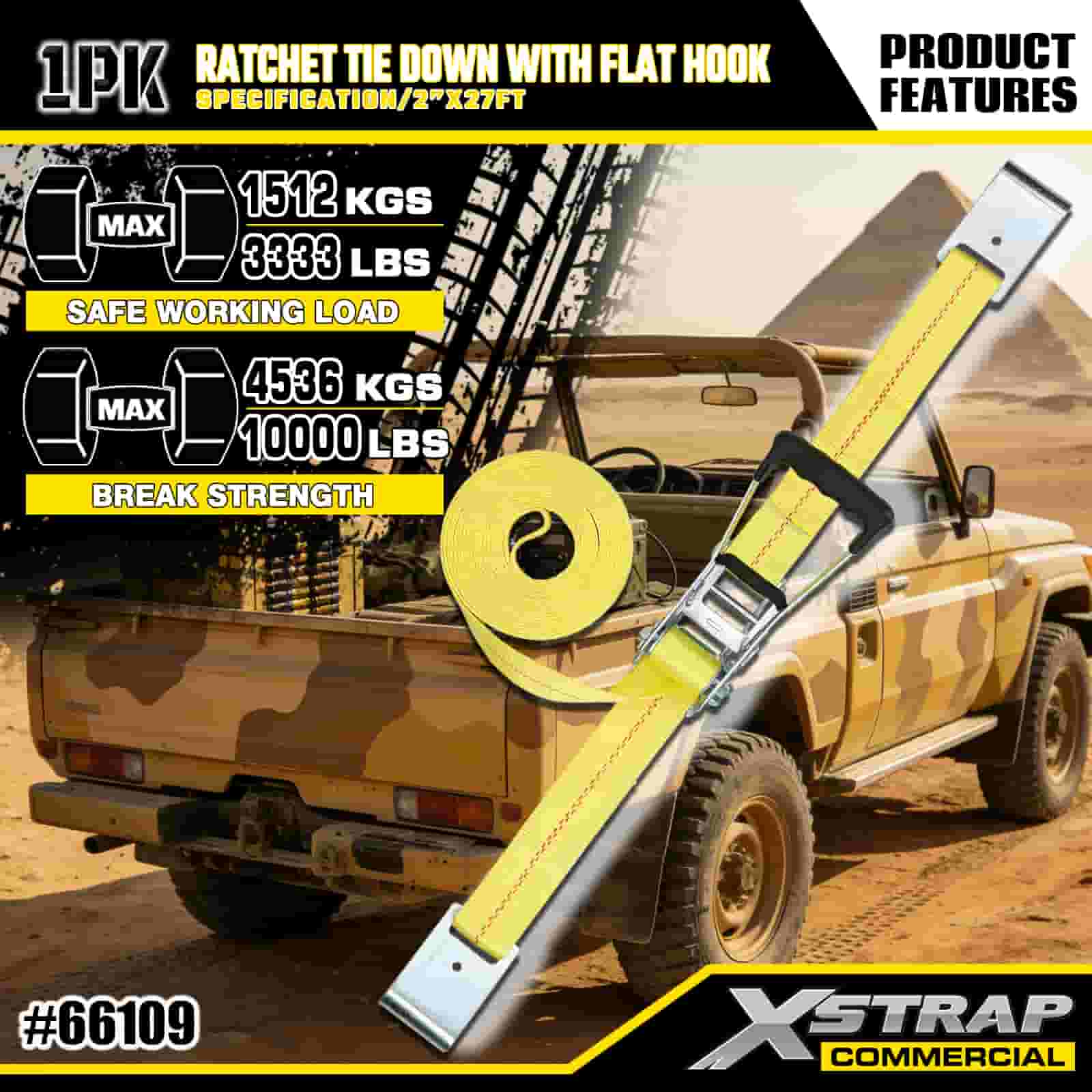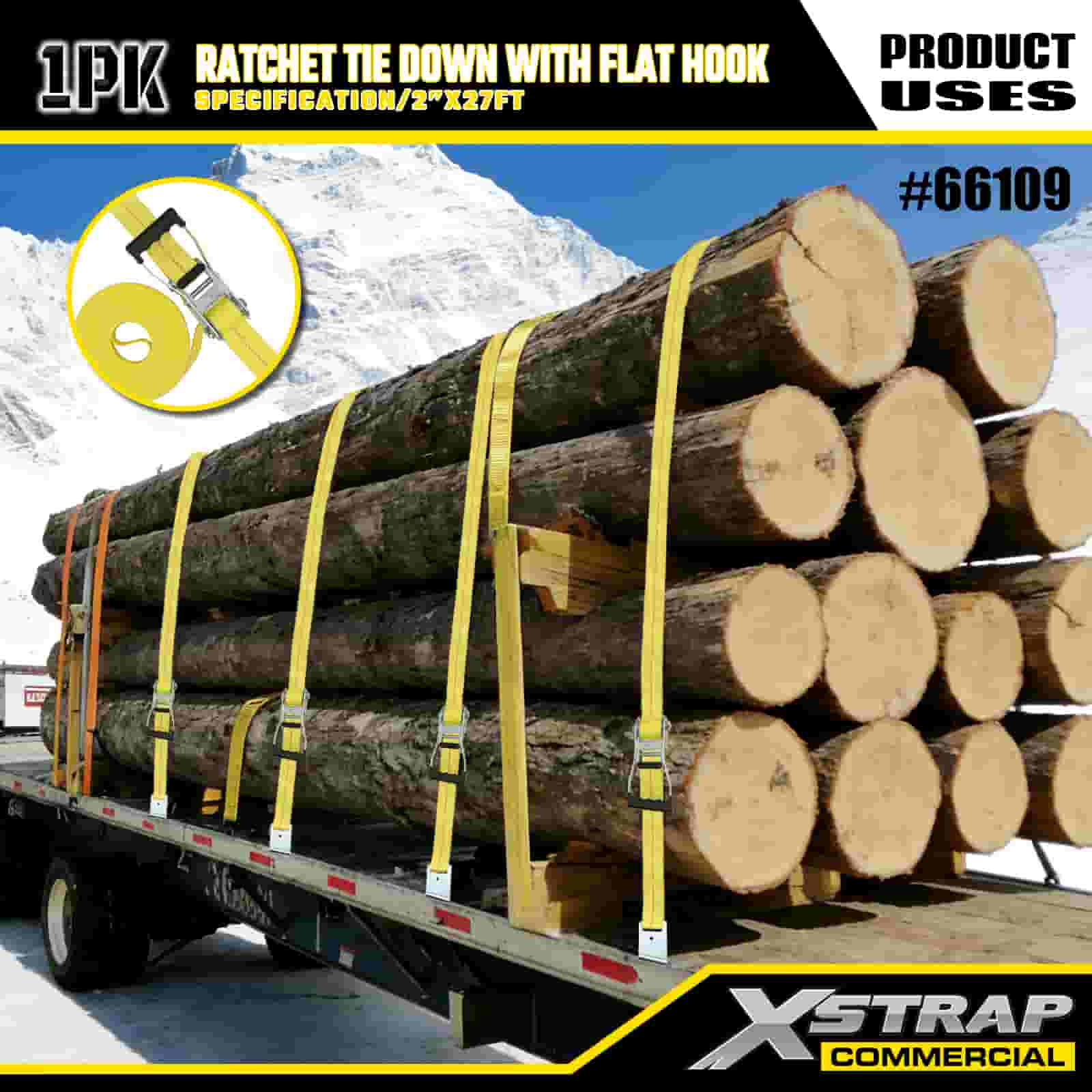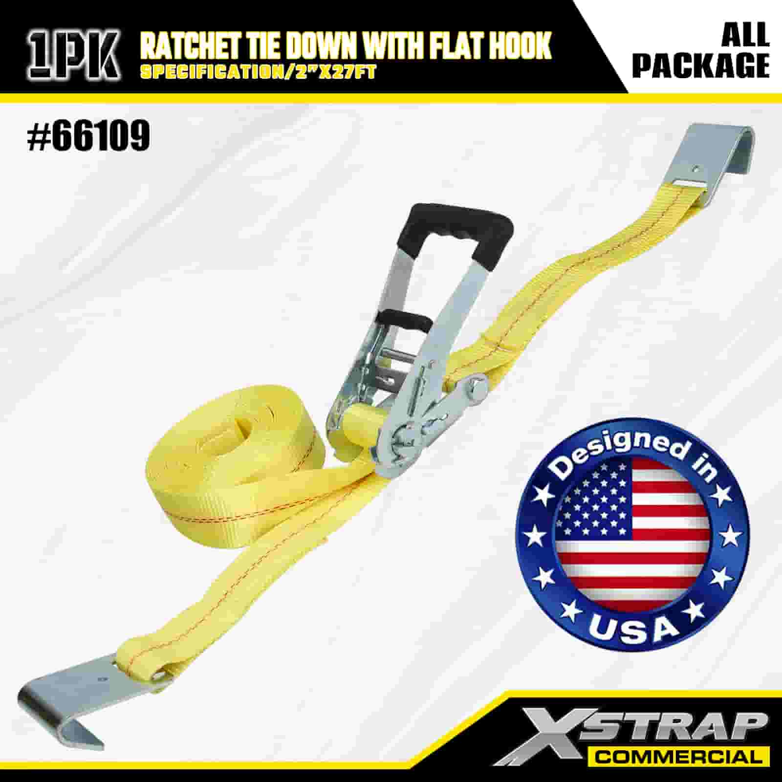 Xstrap Ratchet Tie Down med platta krokar, 2” x 27’ Polyester Tie Down Strap Drag Ratchet Strap, 3333lbs Kapacitet Cargo Surrning Säkringsremmar med platta krokar för lastkontroll Pickup, SUV, Car Top Racks Motorcykel,.