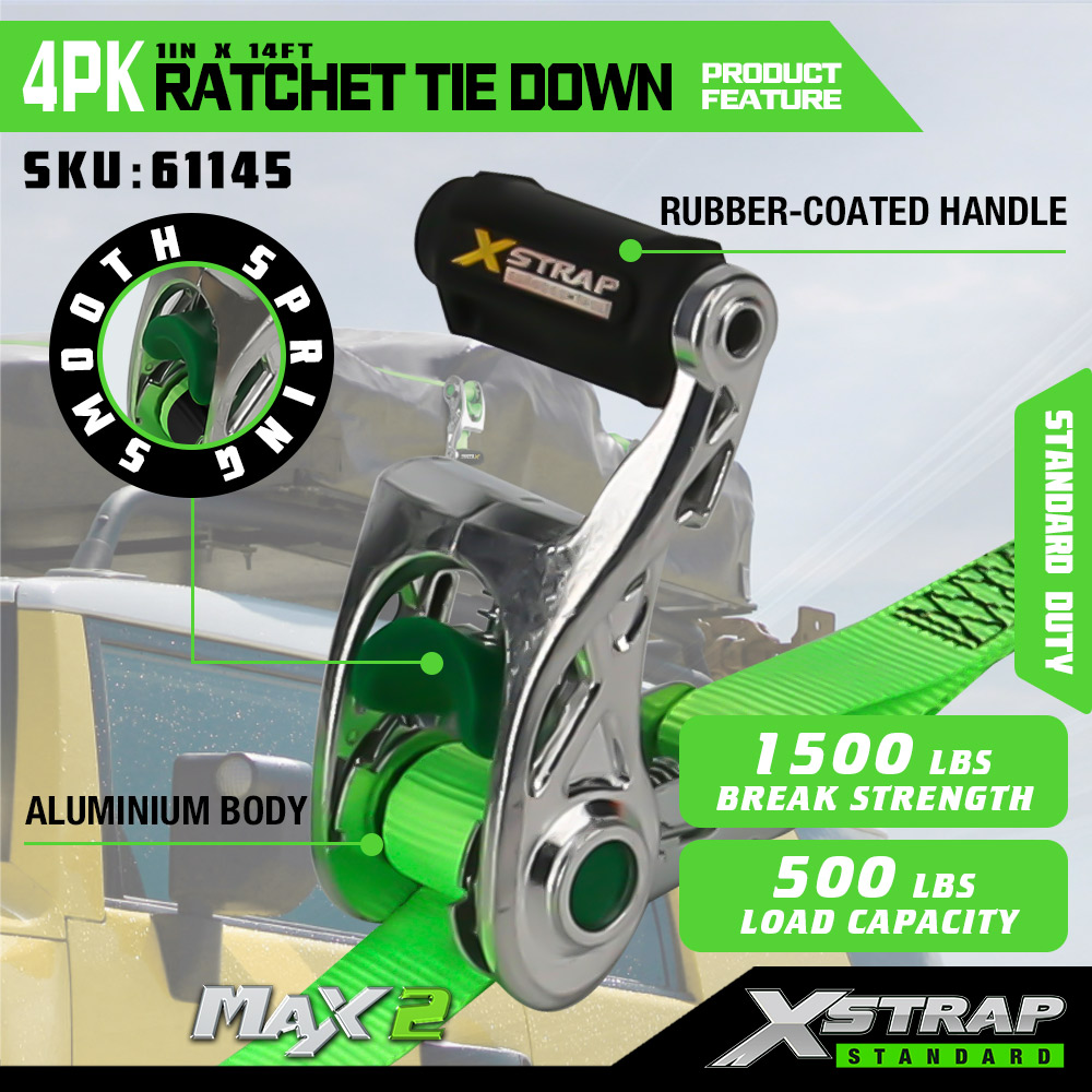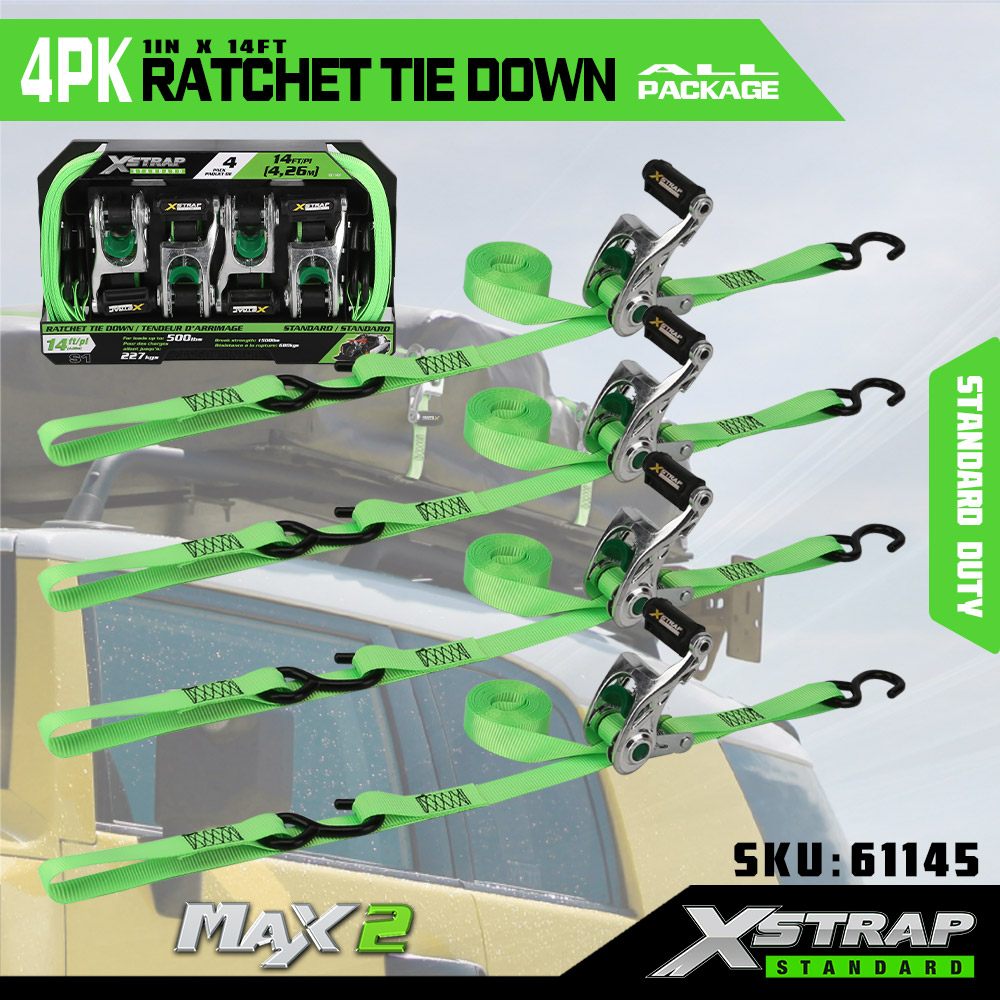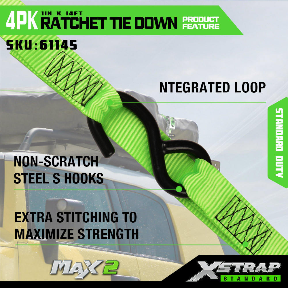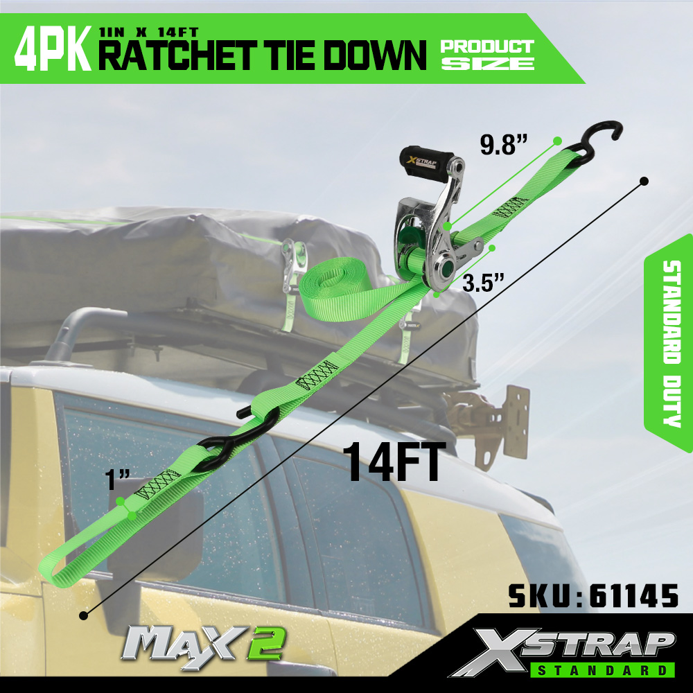 Xstrap 4-pack spärrband med mjuk ögla, 1" x 14" polyesterbindningsrem Dragspärrrem, 1000 lbs Kapacitet Lastsurrning Säkringsremmar med S-krokar för lastbil, SUV, bil Top Rack Motorcykel.