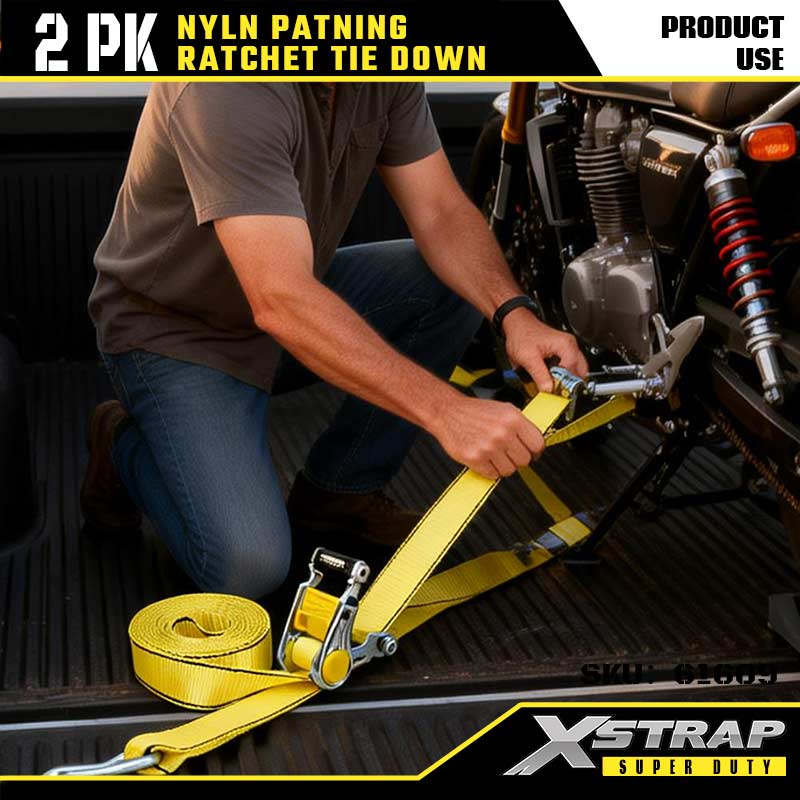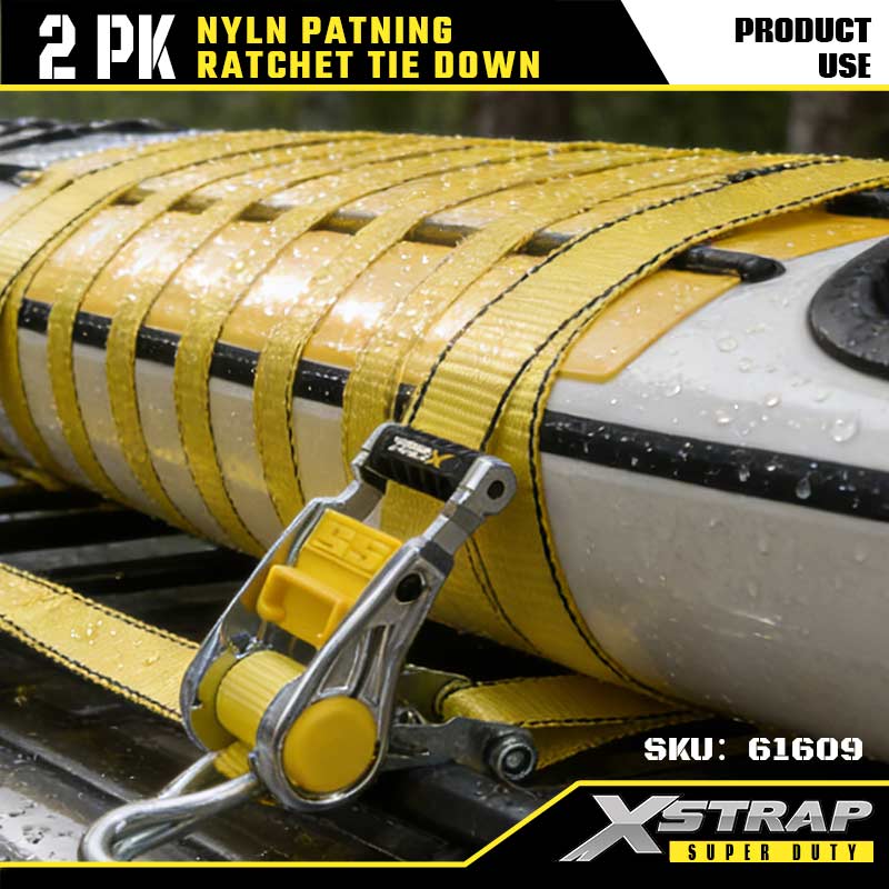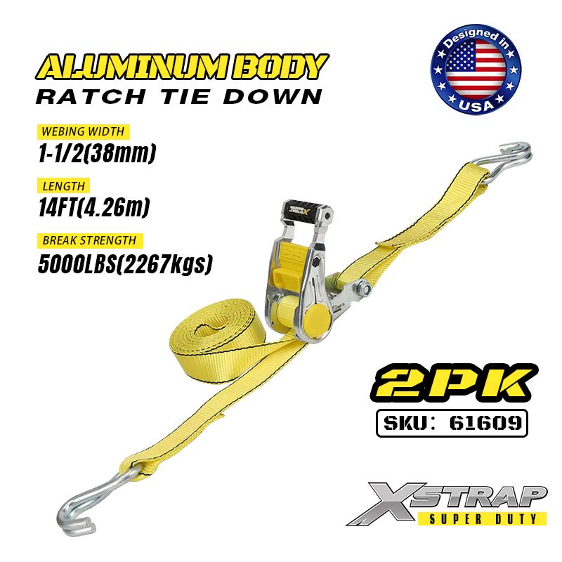- 2-pack 14FT Storlek:1,5 tums bredd sprider spänningen jämnt för att undvika skador. 14 fots längd passar lastbilsflakvagnar eller takräcken. 2 pack ger dig tillräckligt med remmar för att fästa stora eller oregelbundna redskap.