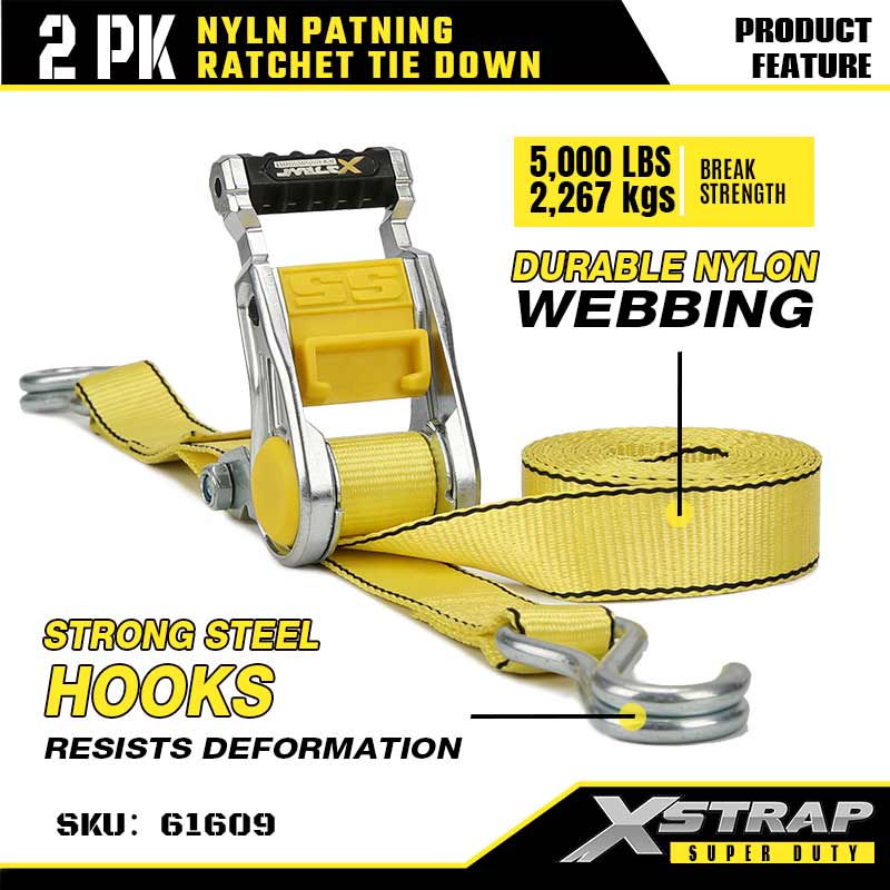 Xstrap 2PK Ratcet Tie Down med dubbla J-krokar, 2” x 3,6’ Polyester Tie Down Strap Spärrrem, 1667lbs Kapacitet Cargo Surring Säkringsremmar med dubbla J-krokar för Heavy Duty Trailer, Flat Bed Trailer Ski Boat, Small Car, Heavy utrustning.