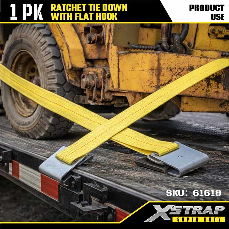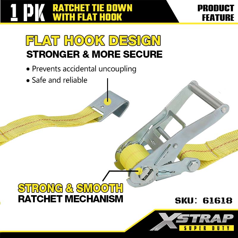 Xstrap Ratcet Tie Down med platta krokar, 2” x 27’ Polyester Tie Down Strap Ratchet Strap, 3333lbs Kapacitet Cargo Surrning Säkringsremmar med platta krokar för tunga släpvagnar, plattbäddssläp, skidbåt, liten bil, tung utrustning.